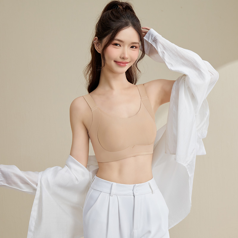 This Bra features a rabbit-ear cup that not only prevents nipple show-through but also instantly reduces the bust size by two cups. Combined with 3D three-dimensional shock-absorbing cups, this Bra scientifically distributes breast pressure. Even in sports scenarios like running, it can keep the breasts stable and reduce jolting. It incorporates a tech-driven lifting strap, enabling anti-gravity lifting to easily address breast sagging.