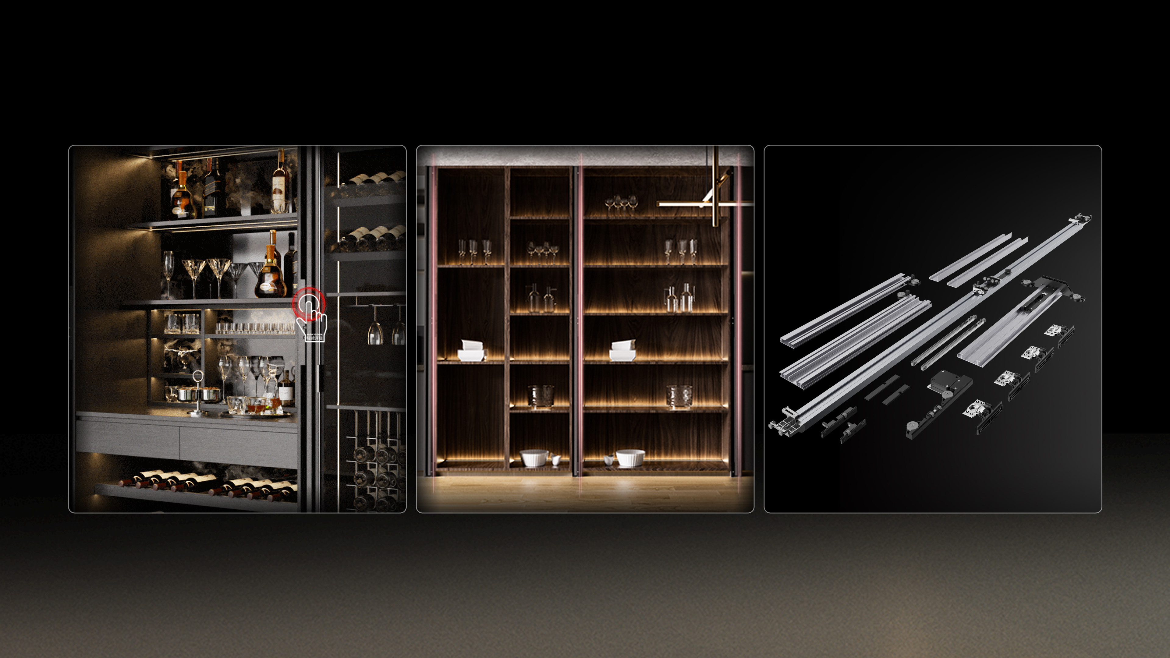 The "Push to Open Slide-in Door System" is based on the core concept of "flexible concealment, like a shadow," stemming from insights into urban living space pain points and the pursuit of minimalist aesthetics. With the door panel completely hidden within the cabinet, it frees up more space in limited living areas; the innovative push-to-open rebound structure allows for smooth opening and closing with a light touch, eliminating tedious operations; the handle-less minimalist appearance harmonizes with diverse home styles, while exquisite craftsmanship and carefully selected materials ensure long-lasting stability. Running noise is controlled below 30dB(A), creating a sense of tranquility and freedom in the bustling city, allowing function and aesthetics to intertwine naturally in life.