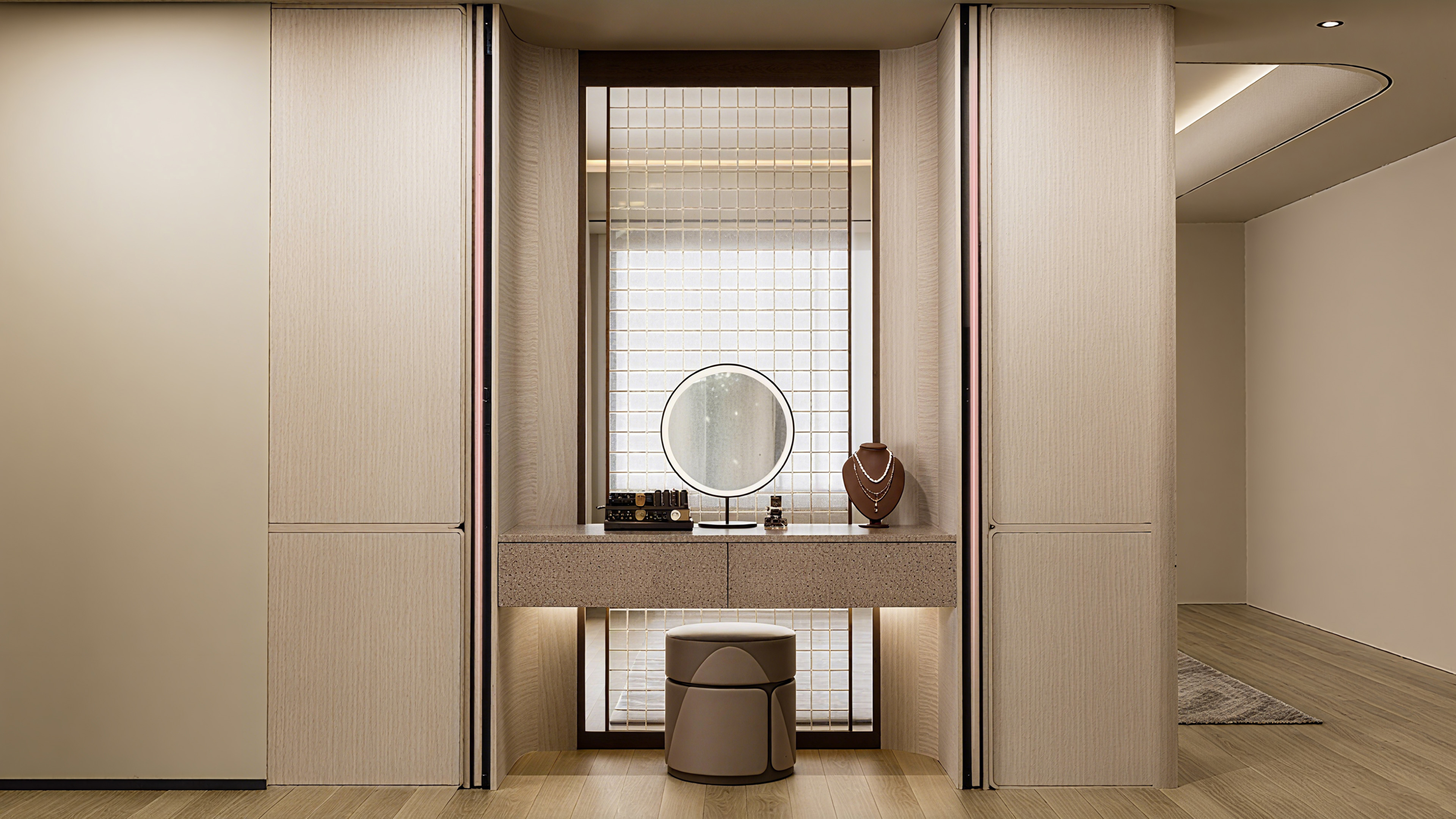 The "Push to Open Slide-in Door System" adheres to the ultimate principles of "invisible aesthetics" and "minimalism" in its appearance.