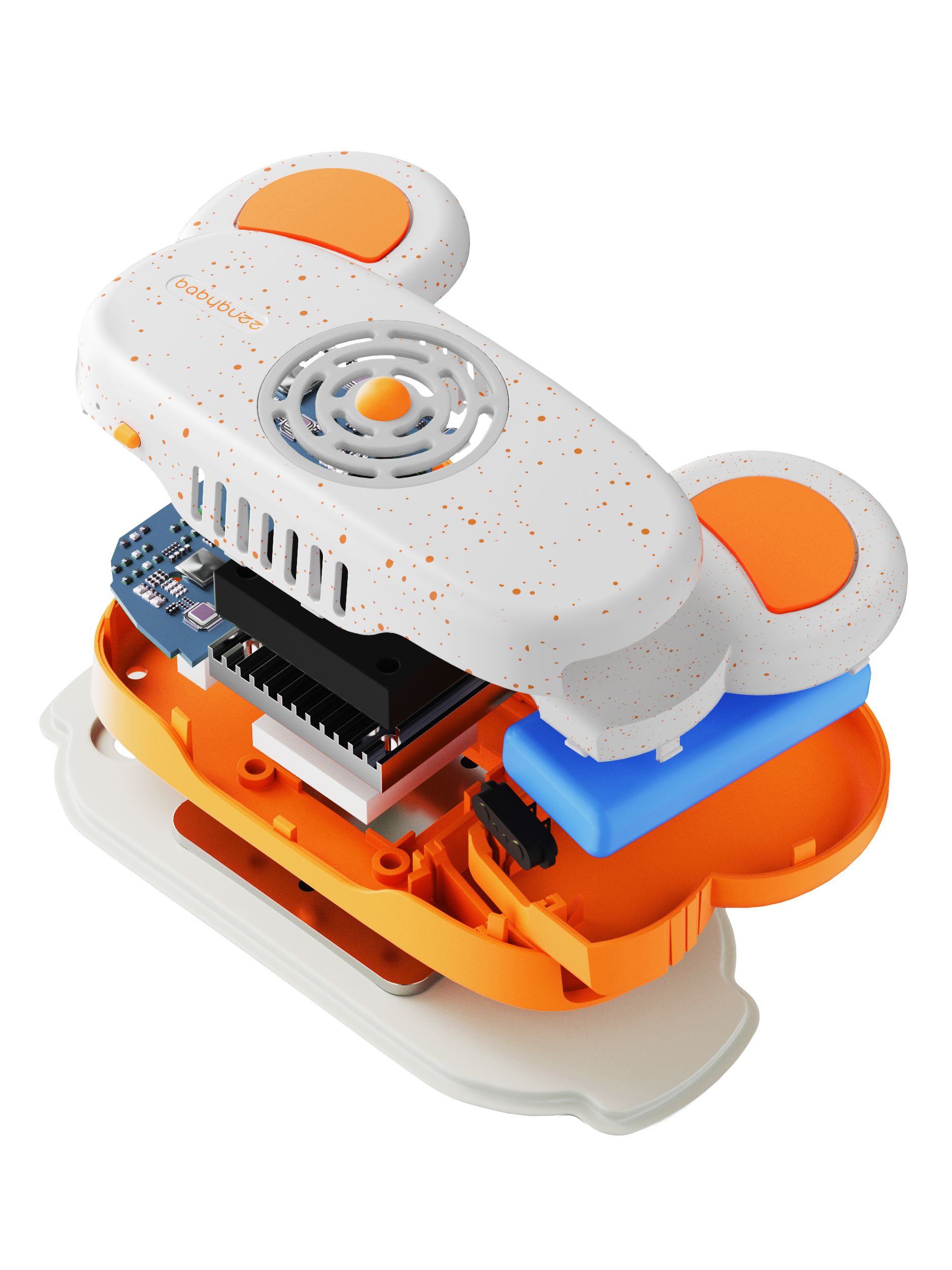 The device utilizes a semiconductor chip for efficient cooling, complemented by a silent fan to dissipate heat, ensuring an efficient and quiet cooling process. The glycerin cooling pad, combined with a medical-grade gel patch, ensures gentle contact with the infant's skin, delivering a comfortable cooling experience. A thermocouple monitors the cold-end temperature of the semiconductor in real time, while an infrared sensor tracks the skin's surface temperature, providing critical data for precise cooling. Meanwhile, an audible buzzer and status indicator can promptly alert users to the device’s operational state. The mobile mini-program also allows for real-time temperature monitoring and recording, making it convenient for parents to stay informed about their infant’s health status at any time. This data can also be shared with family members, offering peace of mind to caregivers both at home and away. Additionally, the product includes a replaceable backup battery and a rechargeable storage case, significantly enhancing both convenience and battery life for extended use.