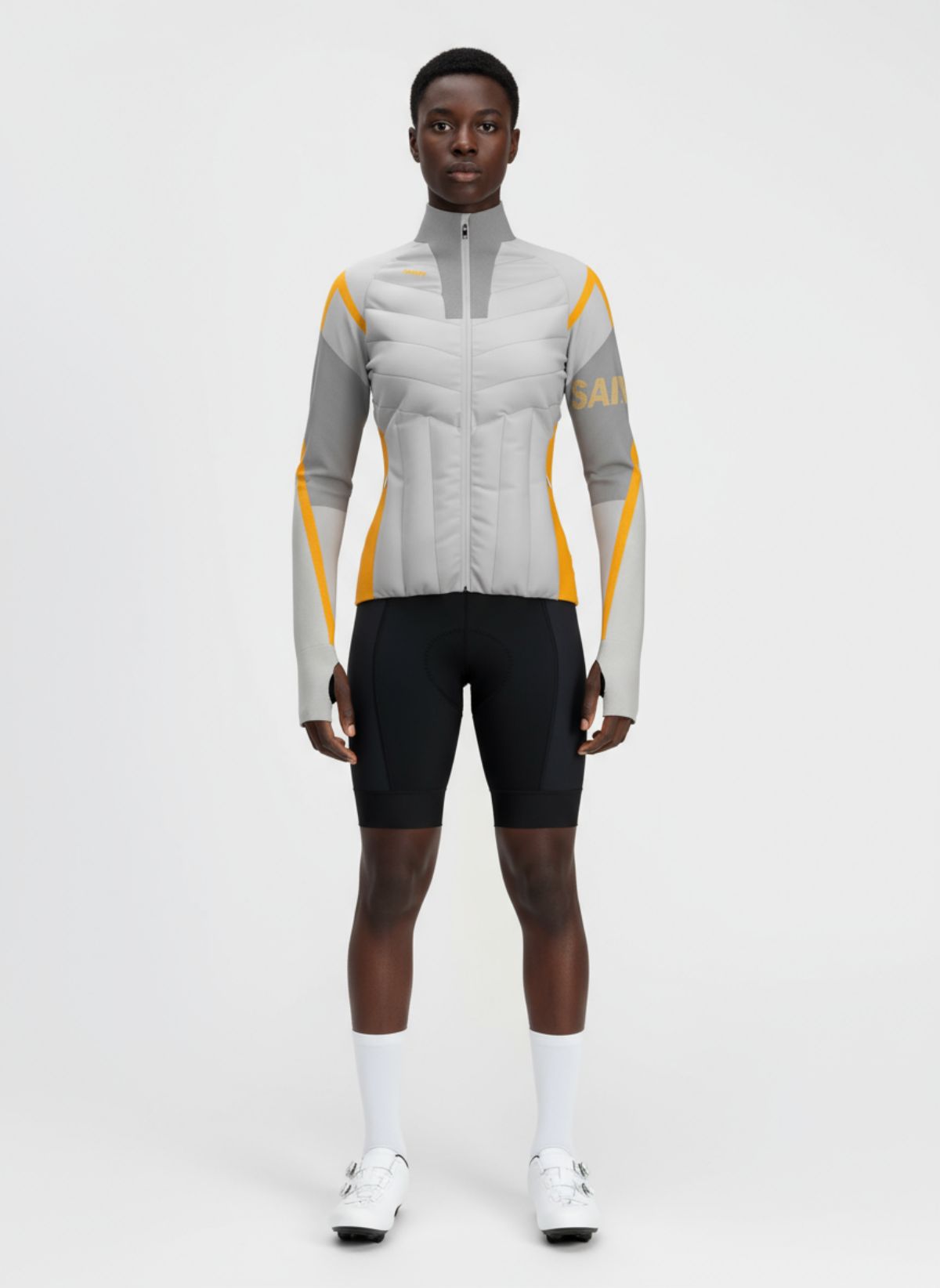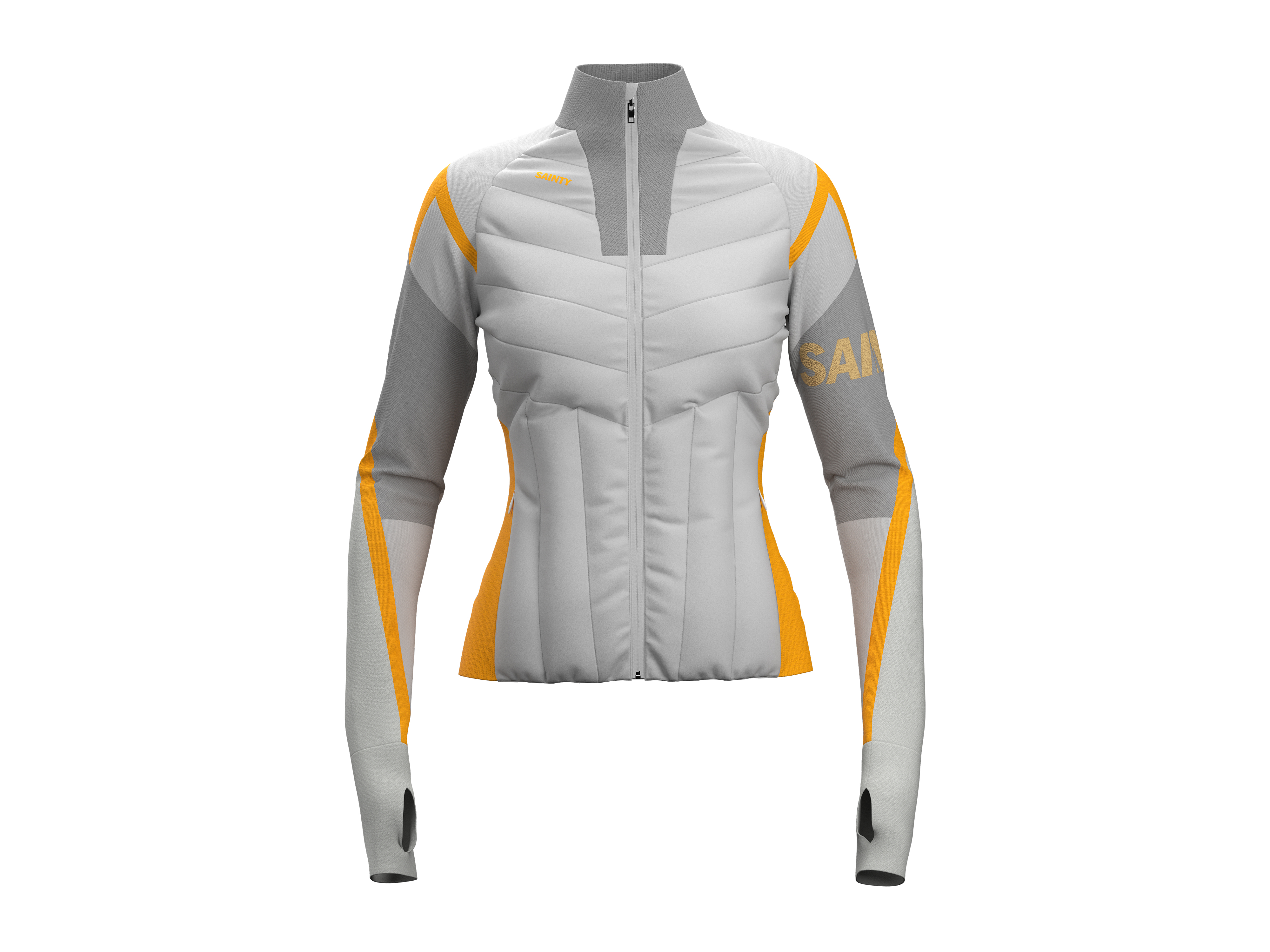 This product achieves dual innovation in function and aesthetics. It adopts a knitted woven spliced dual-material structure. The knitted part uses the fluorine-free waterproof seamless one-piece woven fabric maintaining high breathability. Australian Merino wool fabric with its natural scale structure forms an air insulation layer, improving moisture absorption and quick-drying performance by 30% to ensure a dry and warm skin-friendly feel. It embeds 3M Thinsulate™ high-efficiency thermal cotton in woven core thermal area, which forms a three-dimensional heat-locking structure with 0.2mm ultra-fine fibers. It provides 15% higher thermal performance than traditional down at the same thickness while reducing weight by 20%, balancing lightweight and strong warmth retention. Its function design is driven by scenarios. Dynamic breathable management system achieves air convection solving the winter cycling problem of "overheating when layered, cold when underdressed ". The close-fitting three-dimensional tailoring integrates 3D ergonomics, with reinforced fabric on the shoulders and elbows to absorb impact force. The cuff thumb loops and hem non-slip drawstrings form a "dynamic fixation system". The high-brightness orange splicing design enhances nighttime visibility. Pragmatic designs such as the knitted back pocket, extended hem and dual collar protection reflect deep understanding of cycling scenarios in every detail. The orange-gray color scheme combines visual impact with safety features.