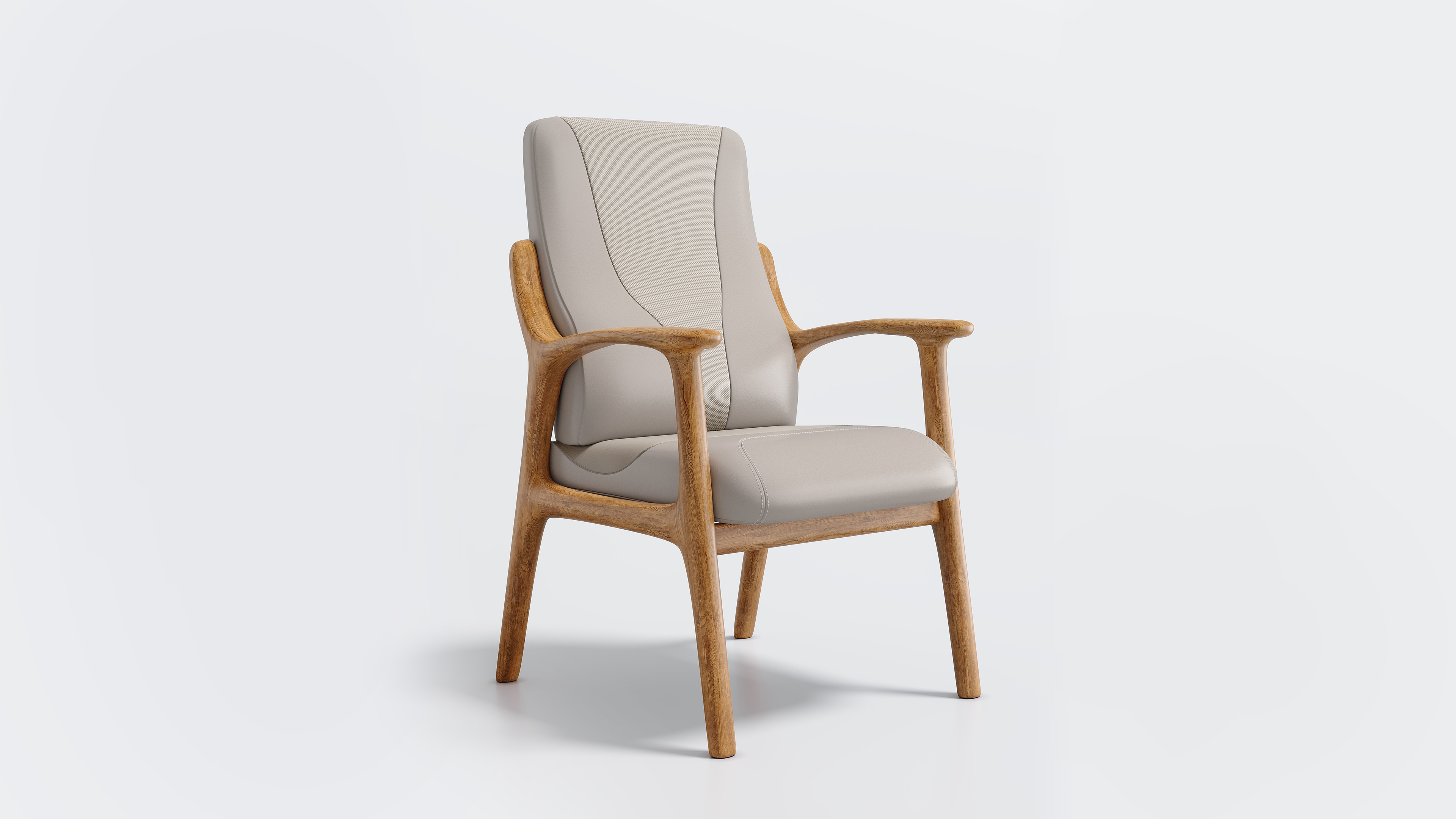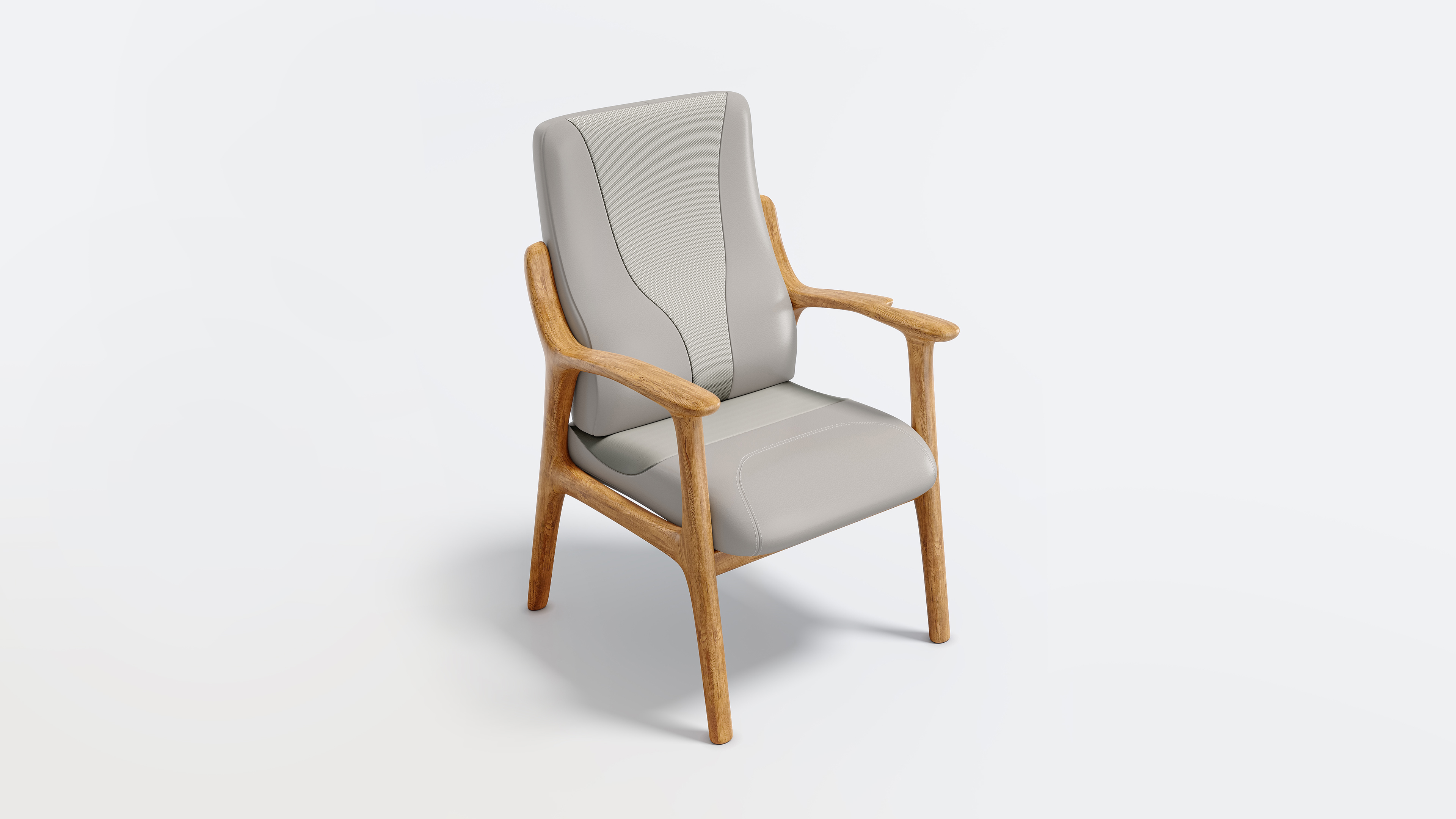 In its design, we embrace a bold, cross-disciplinary fusion. The exterior replicates the S-shaped ergonomic curve and three-section visual partitioning of automotive seats, intuitively conveying a sense of "precision lumbar support." We have selected automotive-grade, skin-friendly leather—prized for its durability and ease of maintenance—and paired it with a streamlined frame crafted from high-hardness oak. This achieves a harmonious synthesis of technological texture and natural warmth, culminating in a truly distinctive visual aesthetic.