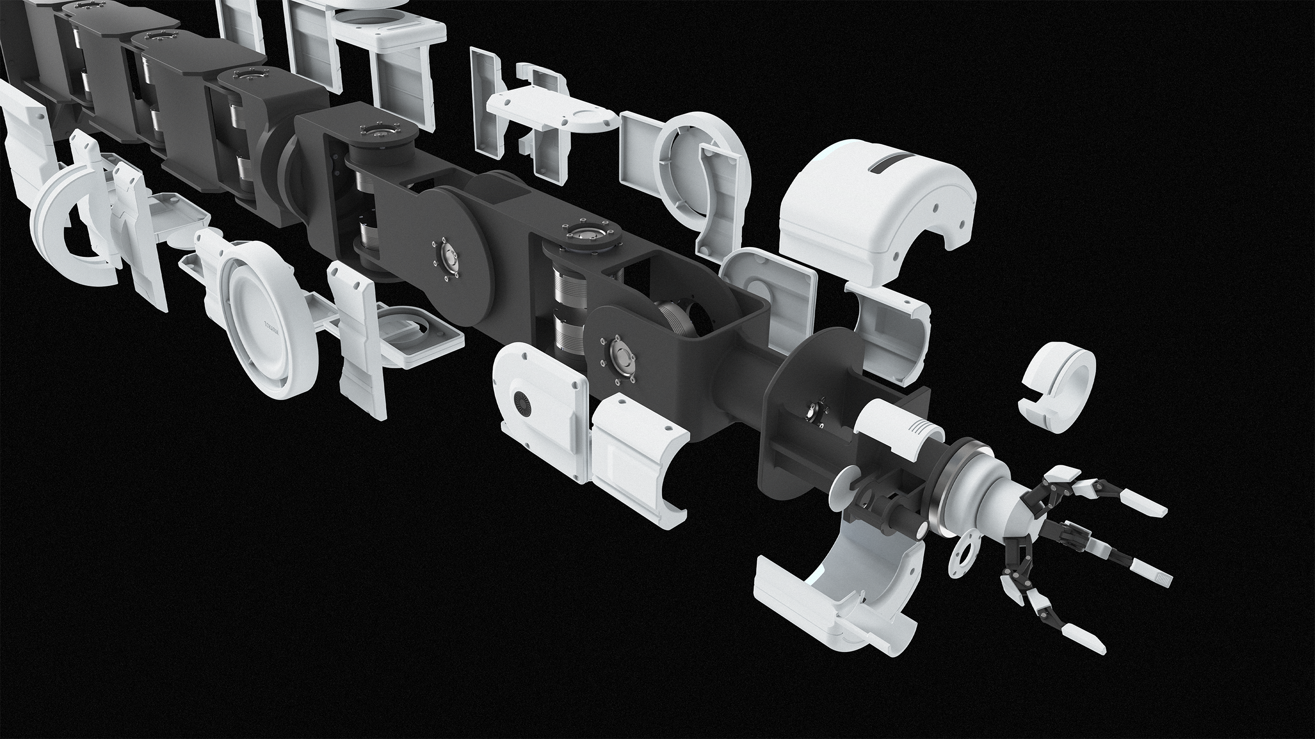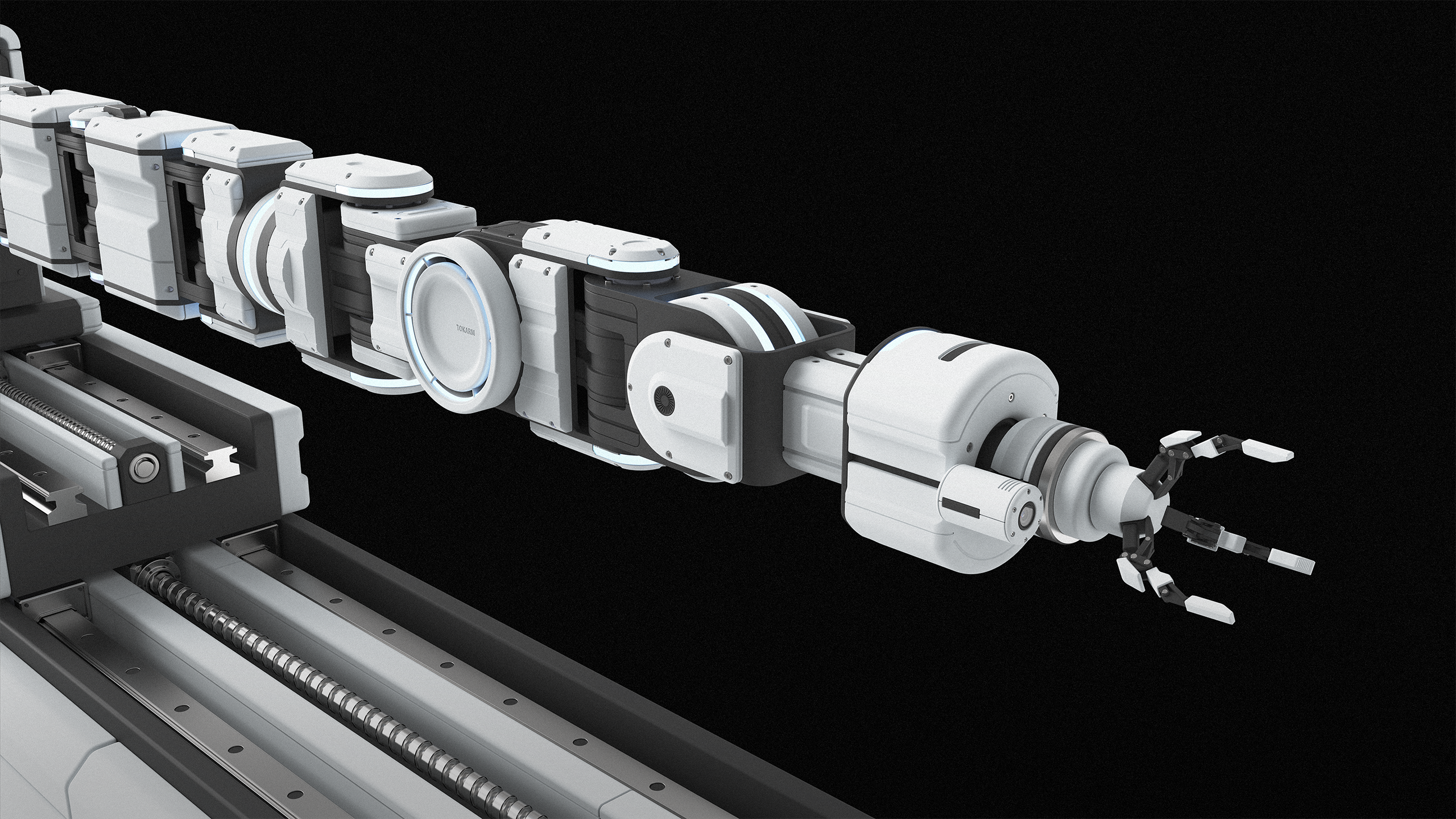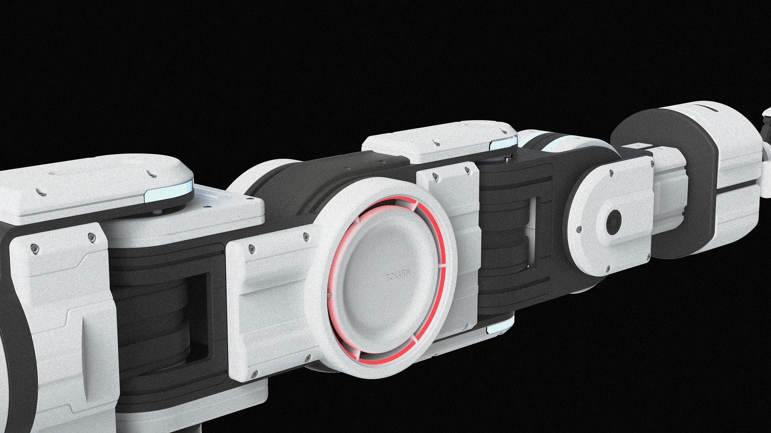 The operating environment of the tokamak nuclear fusion device is extreme, with high temperature and strong radiation inside the chamber. The first wall material of the device is prone to damage during the nuclear reaction process. In response to the difficulty of manual operation and maintenance, we have designed a remote operation and maintenance robot, which consists of a set of remote operation robotic arm and its carrying system. The robotic arm body is composed of ten degrees of freedom joints, which have high flexibility and can reach various parts inside the chamber for operation. The end is a multi-purpose interface that can carry different equipment, such as drill bits, welding tools, multifunctional fixtures, etc., to meet different operational requirements. In terms of structure, it adopts the form of structural steel skeleton and engineering plastic shell. Each joint can be easily disassembled and repaired independently, while giving it a clean and tough appearance, A dual planetary reduction integrated servo motor is used between the joints to ensure structural strength and end stability. At the same time, a digital twin platform is developed to provide real-time control interface, allowing staff to carry out remote and refined maintenance work. The virtual real linkage ensures the smooth operation of the tokamak device
