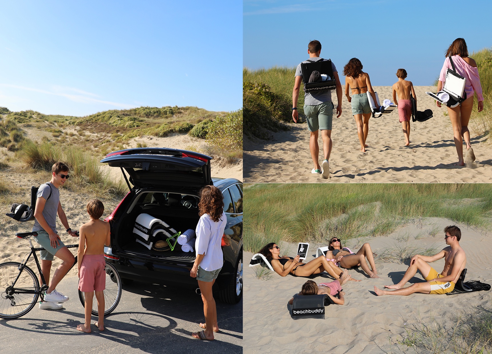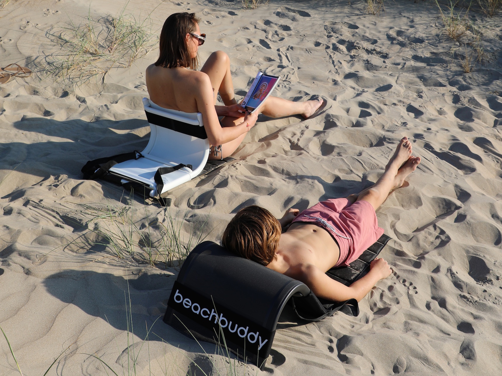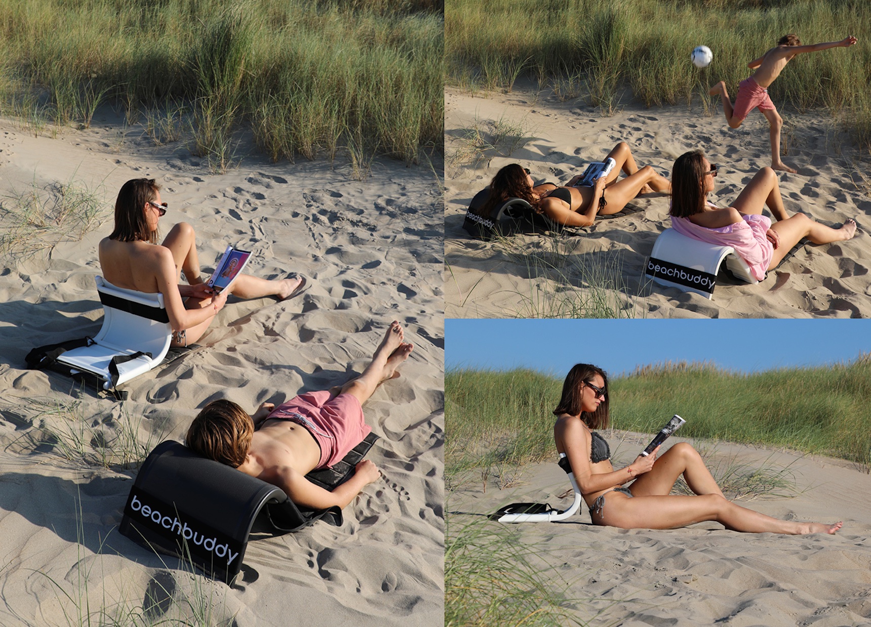Whether you want to lay back and relax in the sun or sit up straight and read a book, the Beachbuddy is easily transformed simply by flipping over the frame. From a comfortable relax seat in less then no time to a sun bed. It’s also very easy to carry due to its low weight and extra back straps. Suntan lotion, sunglasses, magazines or any other accessory can safely be stored in a customized bag. A handy elastic strap allows you to easily carry a towel or football.