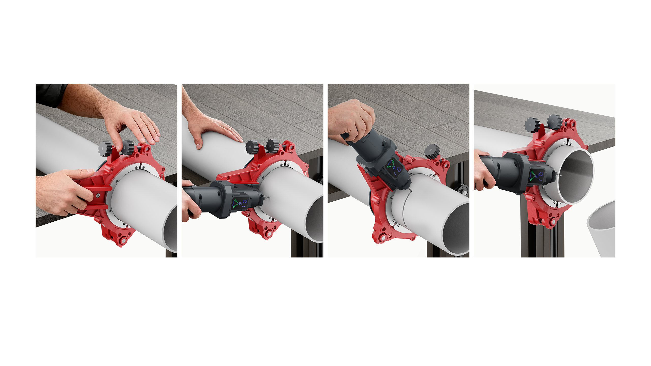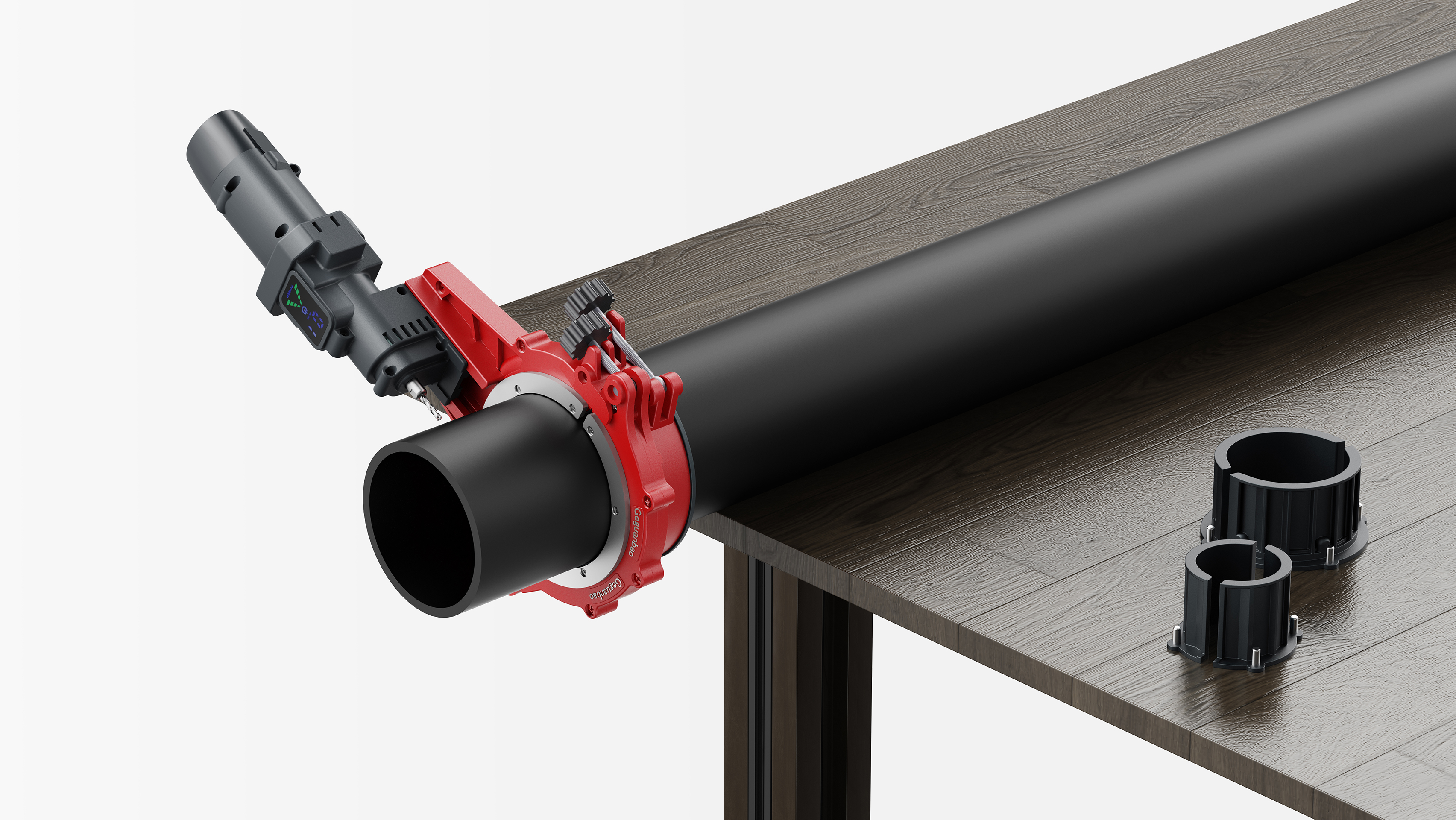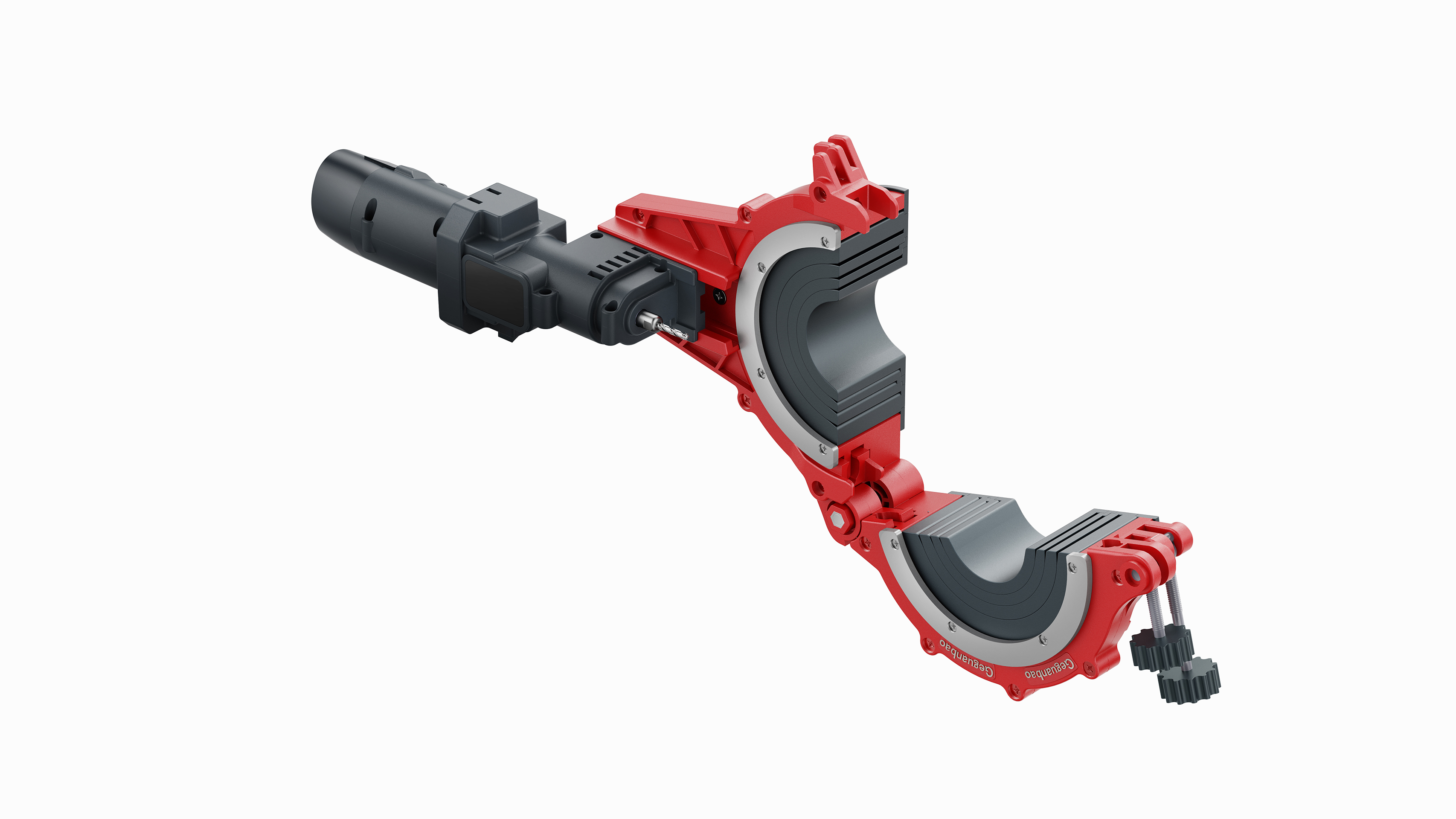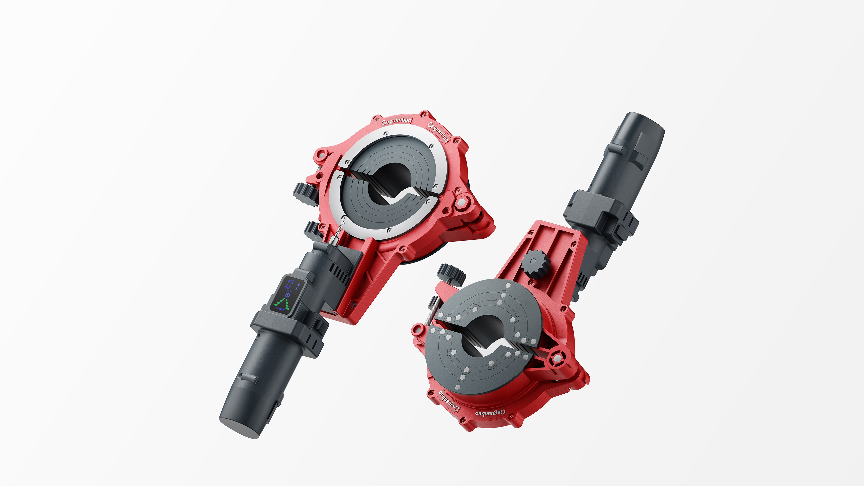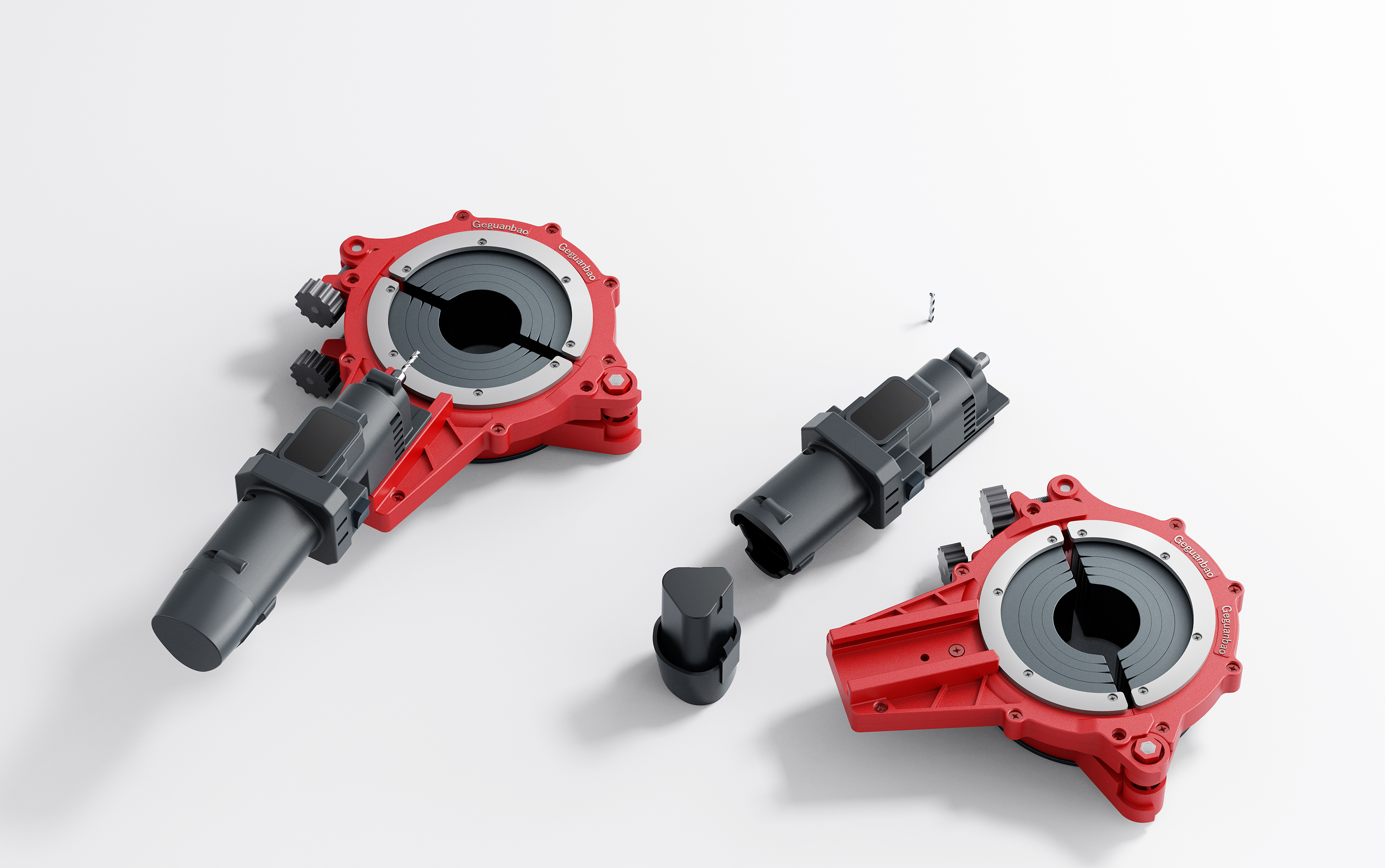 Geguanbao features an industrial design that balances functionality and practicality, with its red die-cast aluminum clamping structure and gray motor creating a clear visual distinction. It also has a dual-screw quick-release structure for easier clamping, compatible with popular pipe sizes ranging from 1.5" to 4". It enables users to freely disassemble and assemble pipe clamping components, the motor, dedicated blades, and the battery through its modular design. It also incorporates precision-cast aluminum components and an ergonomic gripāensuring the tool's durability in terms of material while delivering a stable and labor-saving operating experience for users during every circumferential cutting.