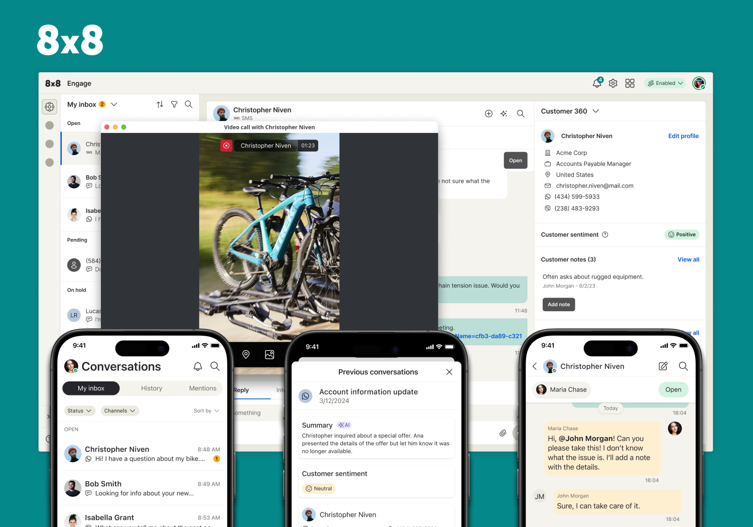 With faster resolution, reduced customer effort, and better cross-team visibility, 8x8 Engage helps organizations deliver more consistent, connected, and human customer experiences.