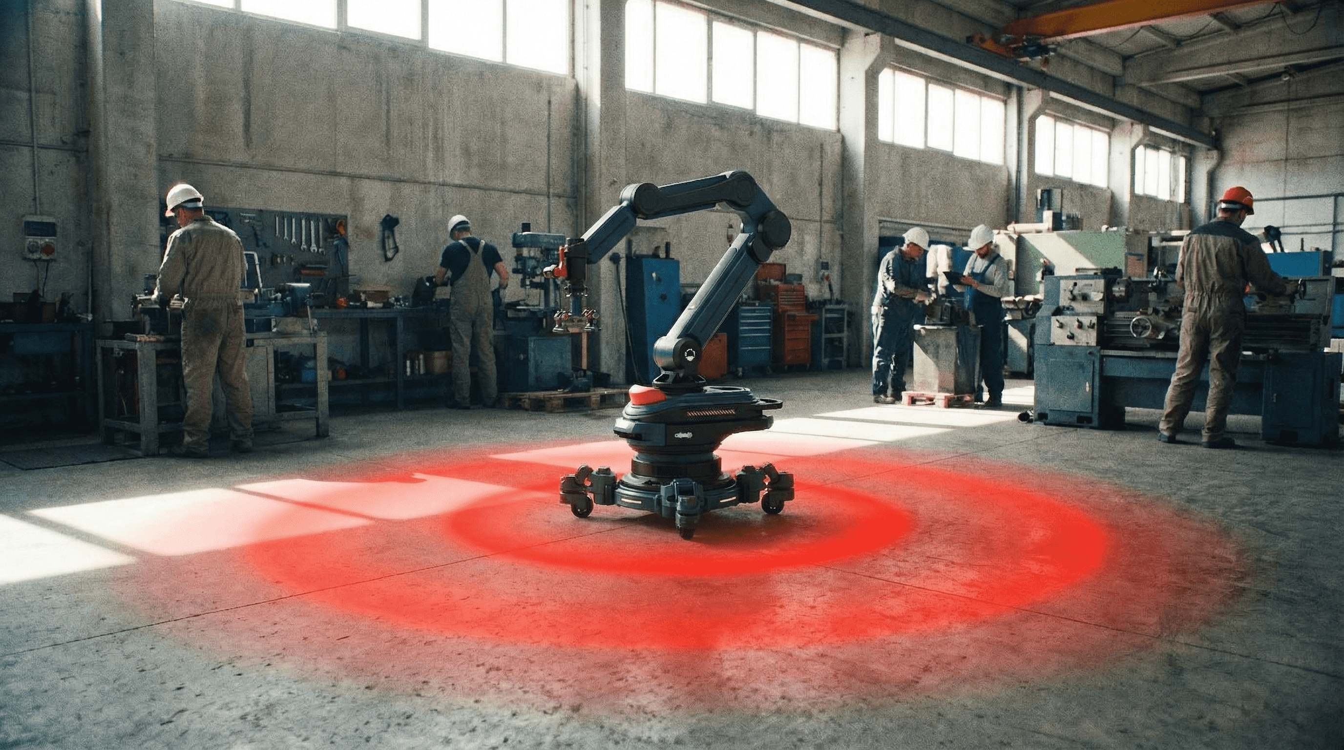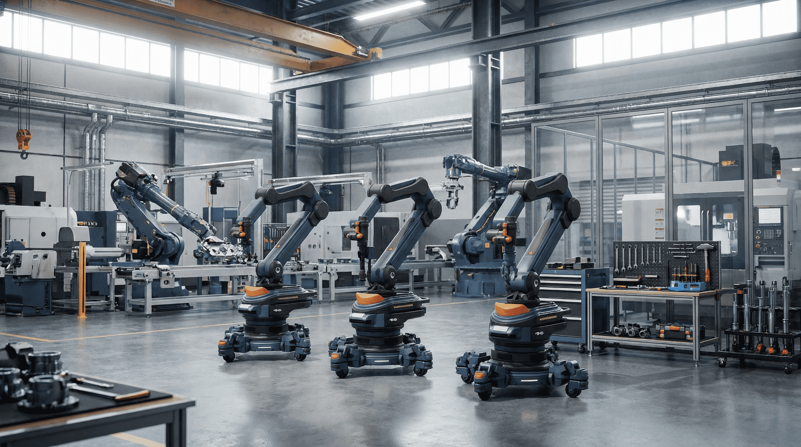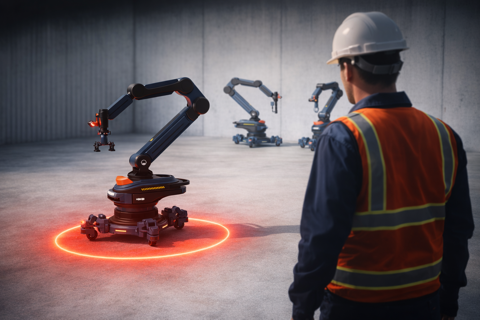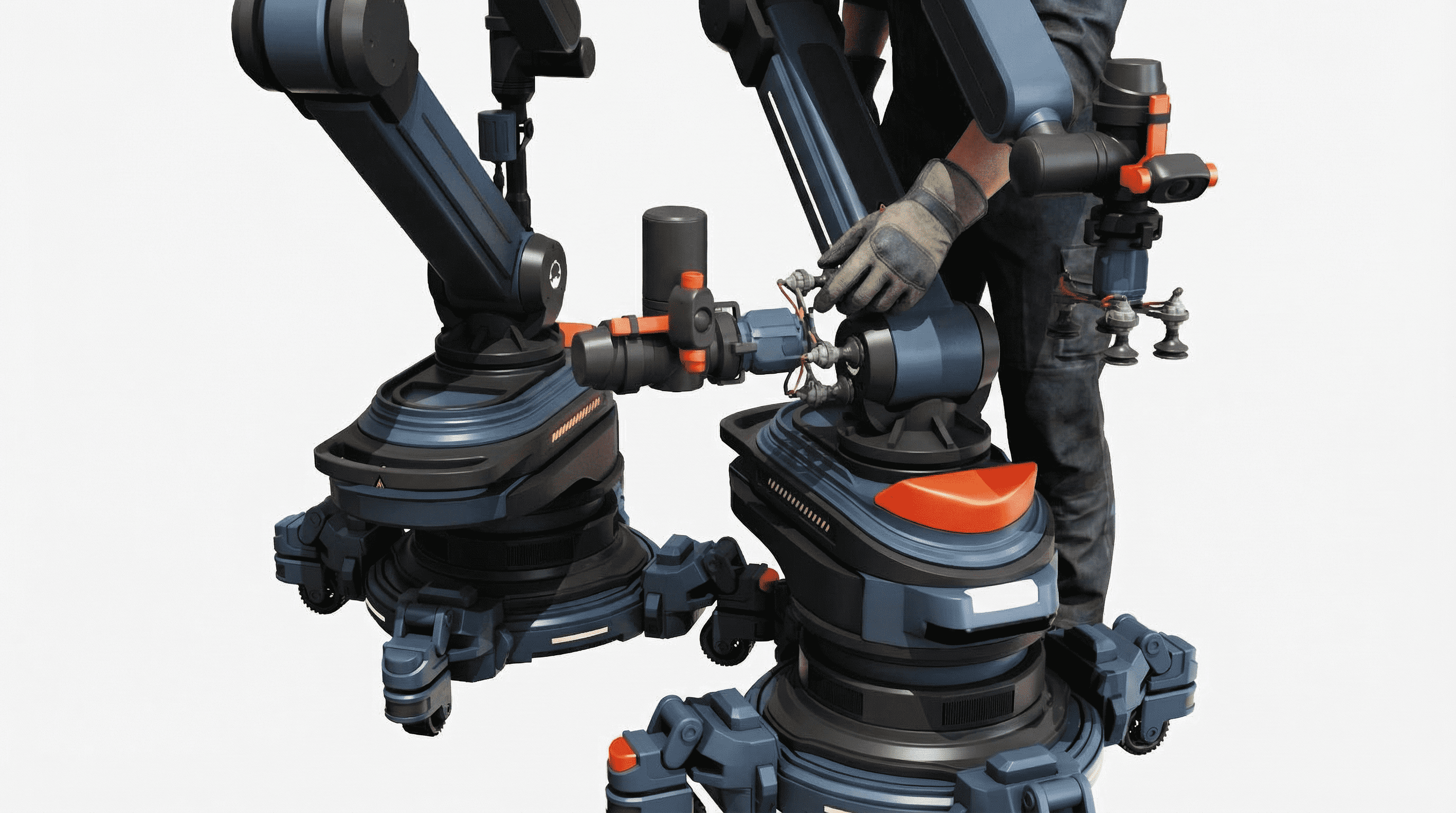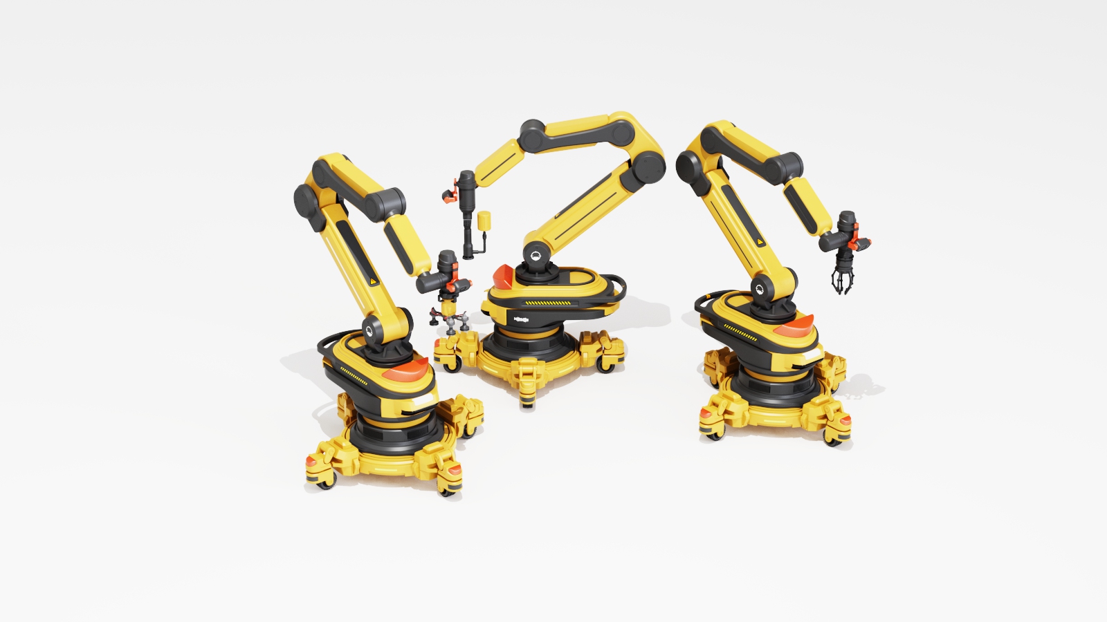 This robotic arm consists of a base and an articulated arm with a compact design for versatile operations. The base features 360° laser sensors to monitor the work area and provide timely warnings for safety. LED indicators display operating status, faults, and maintenance information. The end effector integrates a camera and voice module for visual recognition and voice control, with a modular design for quick functional swaps. Retractable wheels enable easy mobility while ensuring stability during operation. The design prioritizes safety, intelligence, and multifunctionality, delivering an efficient and reliable solution for modern work environments.