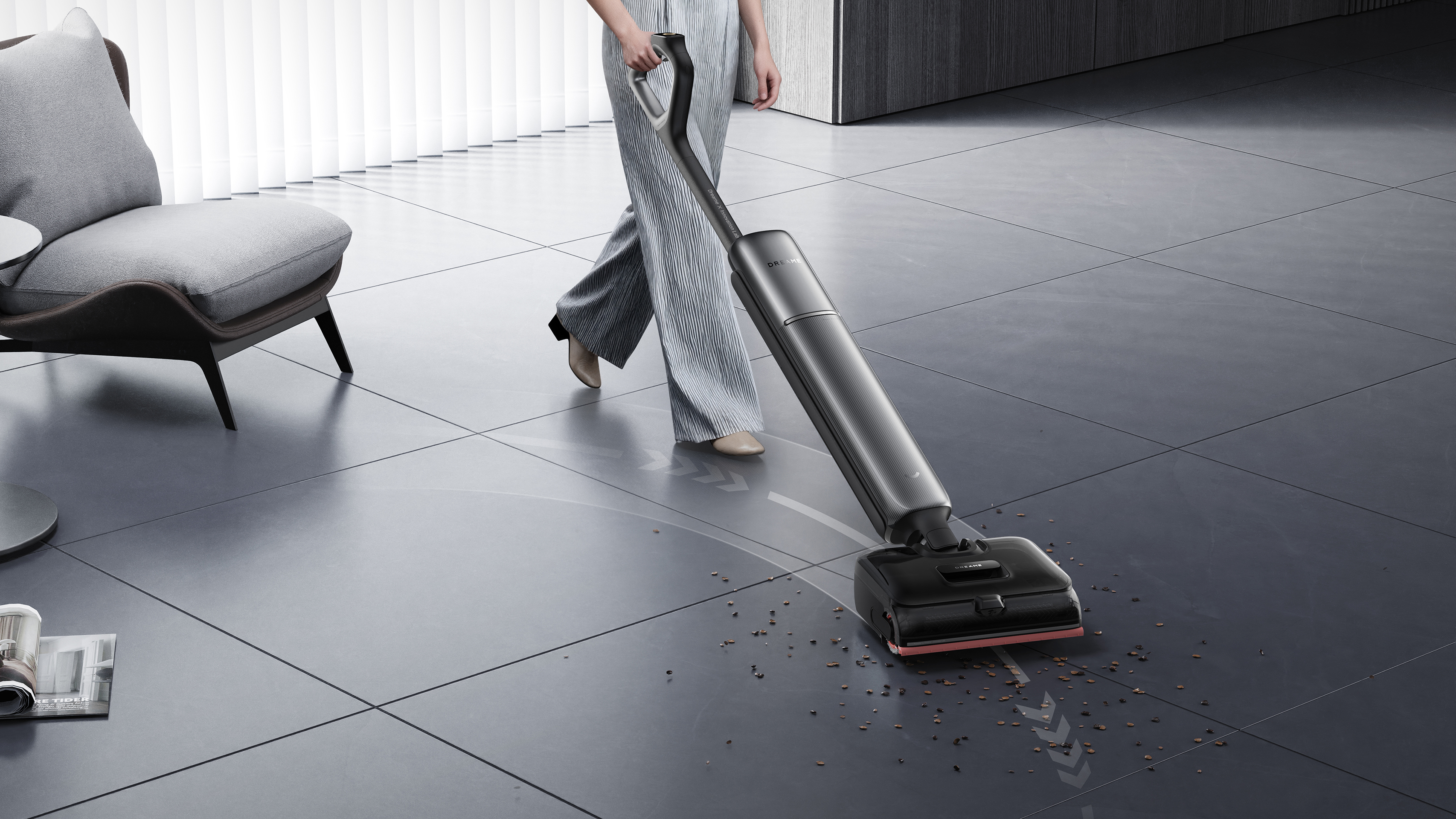 The design team focuses on user experience and conducts in-depth optimization for the cleaner in terms of ergonomics and materials. The cleaner features aerospace-grade torsion spring balancing technology combined with a universal rotating shaft, cutting the force required to operate the handle to only 5N and enabling truly lightweight one-handed 360° flexible steering. It also boasts an ultra-slim 9.85cm body that lies completely flat, reaching deep under furniture.