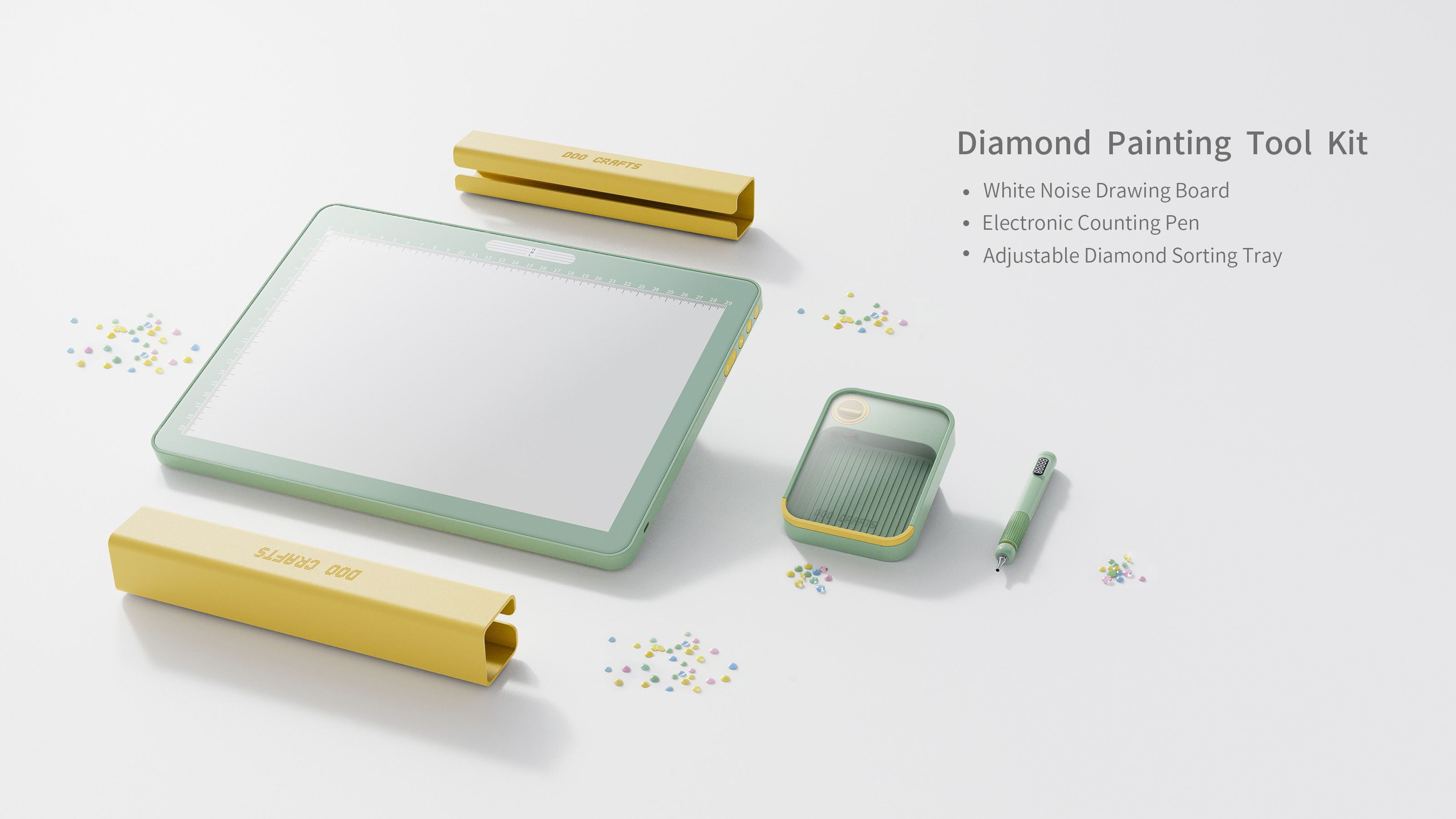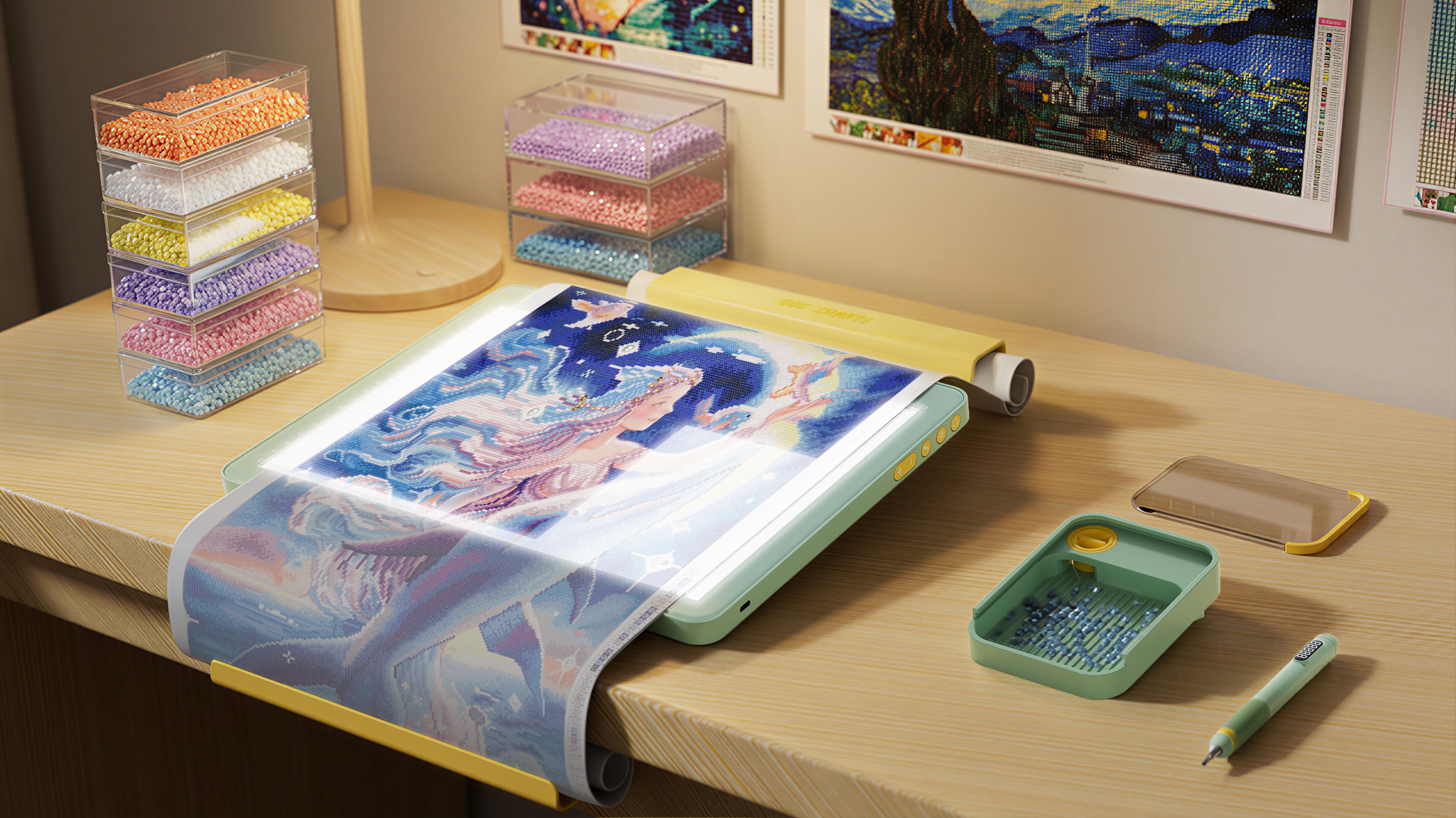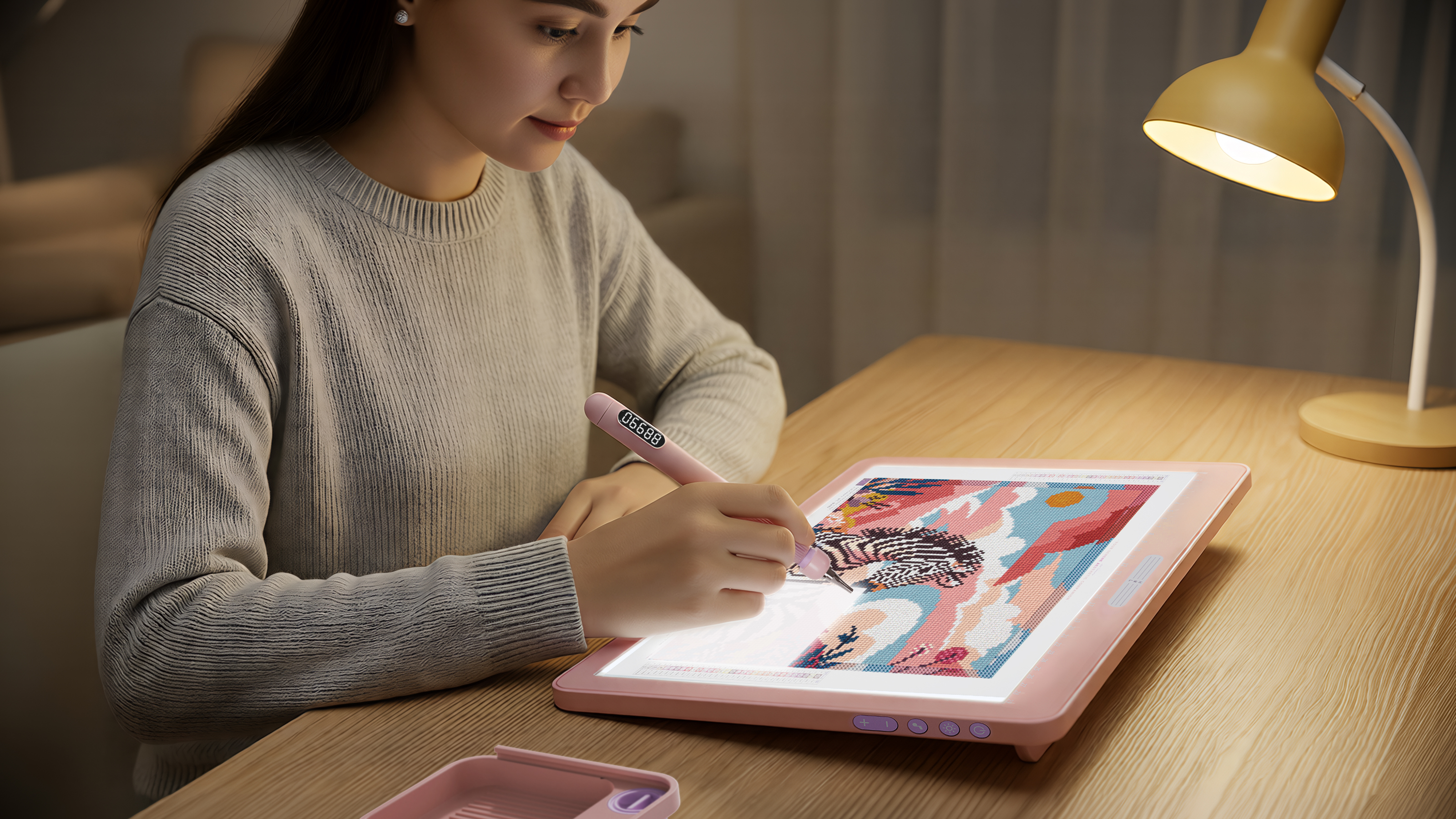 In the fast-paced rhythm of modern life, women often find themselves consumed by work and household responsibilities, yearning for a tranquil sanctuary to retreat, heal, and reconnect with themselves. Diamond painting, with its accessible process and high sense of accomplishment, has become a popular medium for stress relief and self-expression. However, the experience is frequently undermined by long-standing drawbacks of traditional tools: prolonged hunching over to pick up diamonds leads to neck and hand strain; repetitive actions lack feedback, making the process monotonous; inadequate lighting and external distractions further disrupt focus and peace of mind.