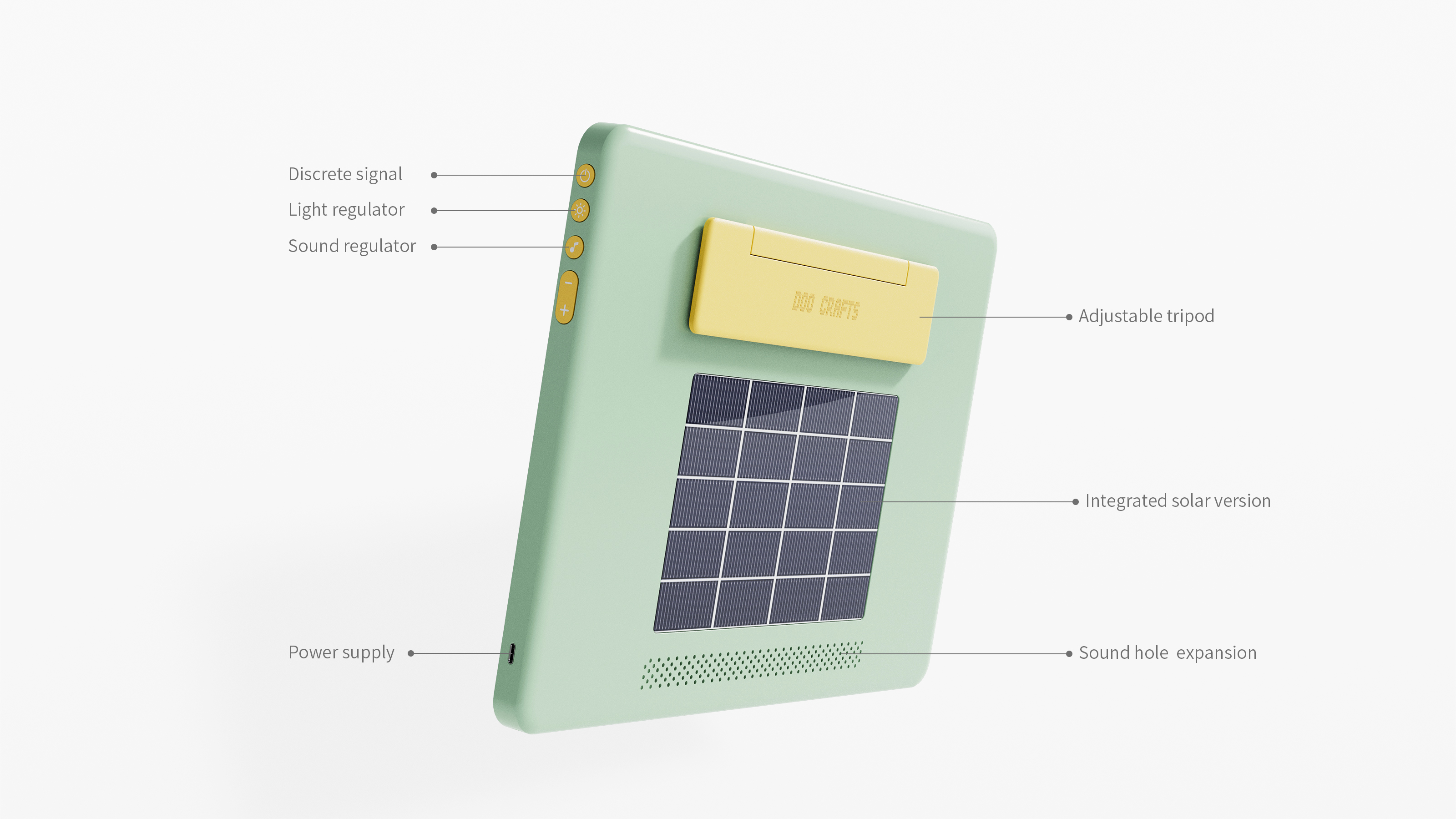 The applicator board combines a backlit lightbox with posture guidance. Its soft, adjustable lighting adapts to various environments, while three calibrated lines on the surface utilize a moiré effect to prompt correct sitting posture. Paired with an adjustable stand, users can customize the height to maintain a natural viewing angle. The board also emits white noise to block out distractions, fostering deep concentration. A built-in solar panel on the back ensures continuous use outdoors or during power outages.