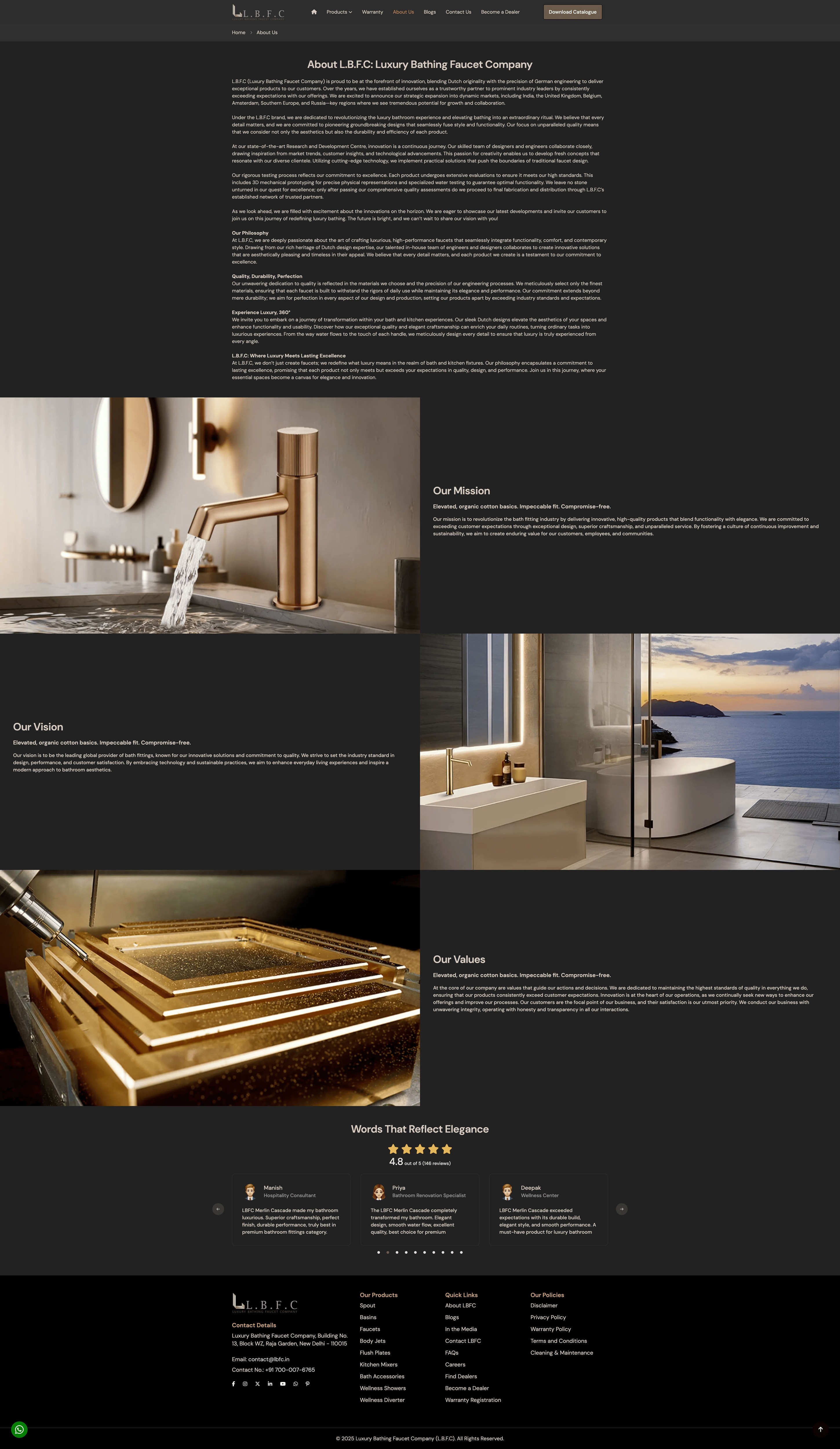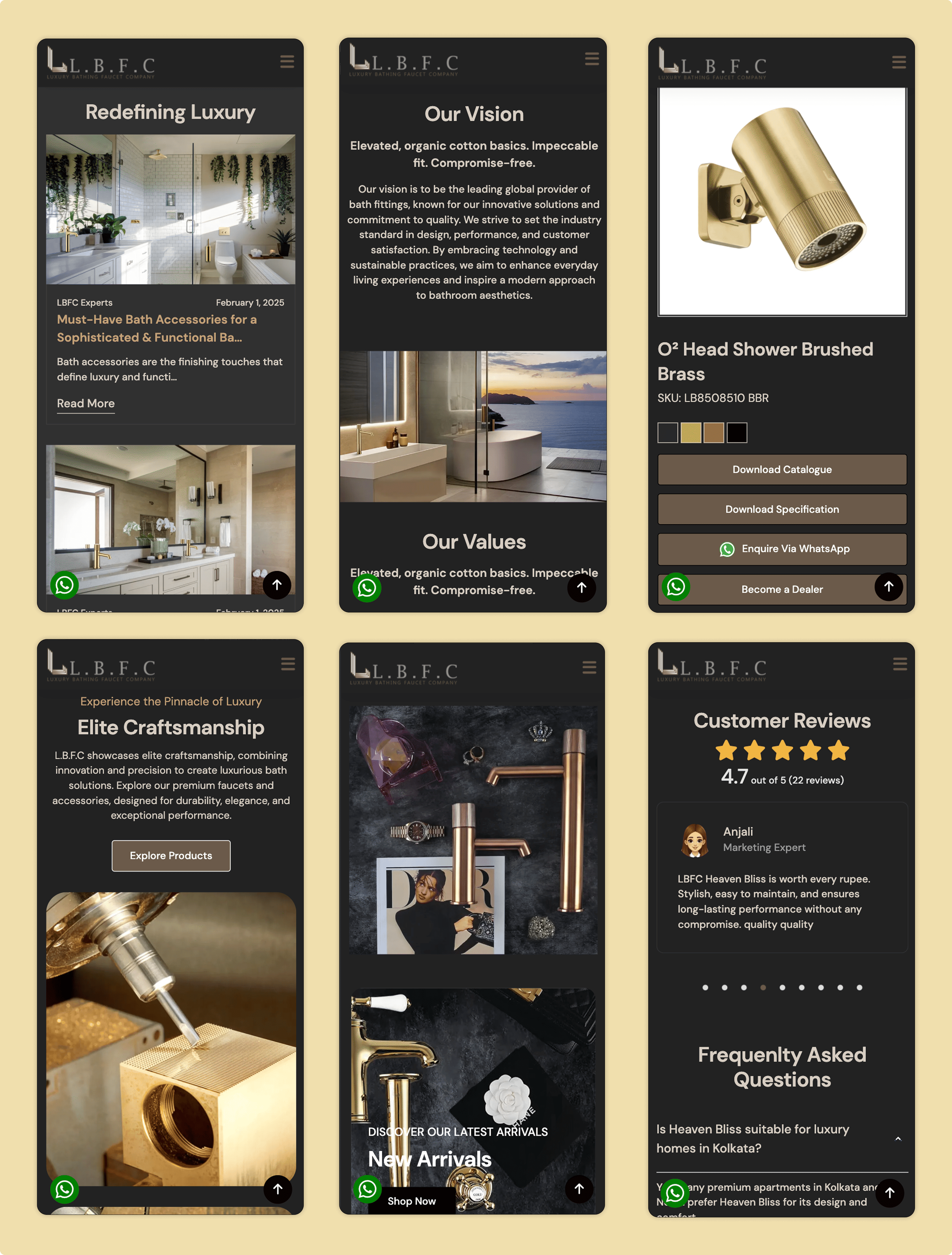 The L.B.F.C. website is a digital statement that transforms the browsing of home fixtures into an experience of luxury and design aspiration. Engineered as a high-fidelity extension of the brand’s physical architectural hardware, the platform reflects a unique heritage of Dutch originality and German engineering. The primary challenge was to create an online interface that mirrors the precision, elegance, and tactile quality of L.B.F.C.'s premium faucets, wellness showers, and architectural hardware, translating the weighted luxury of physical systems into a high-performance digital environment.