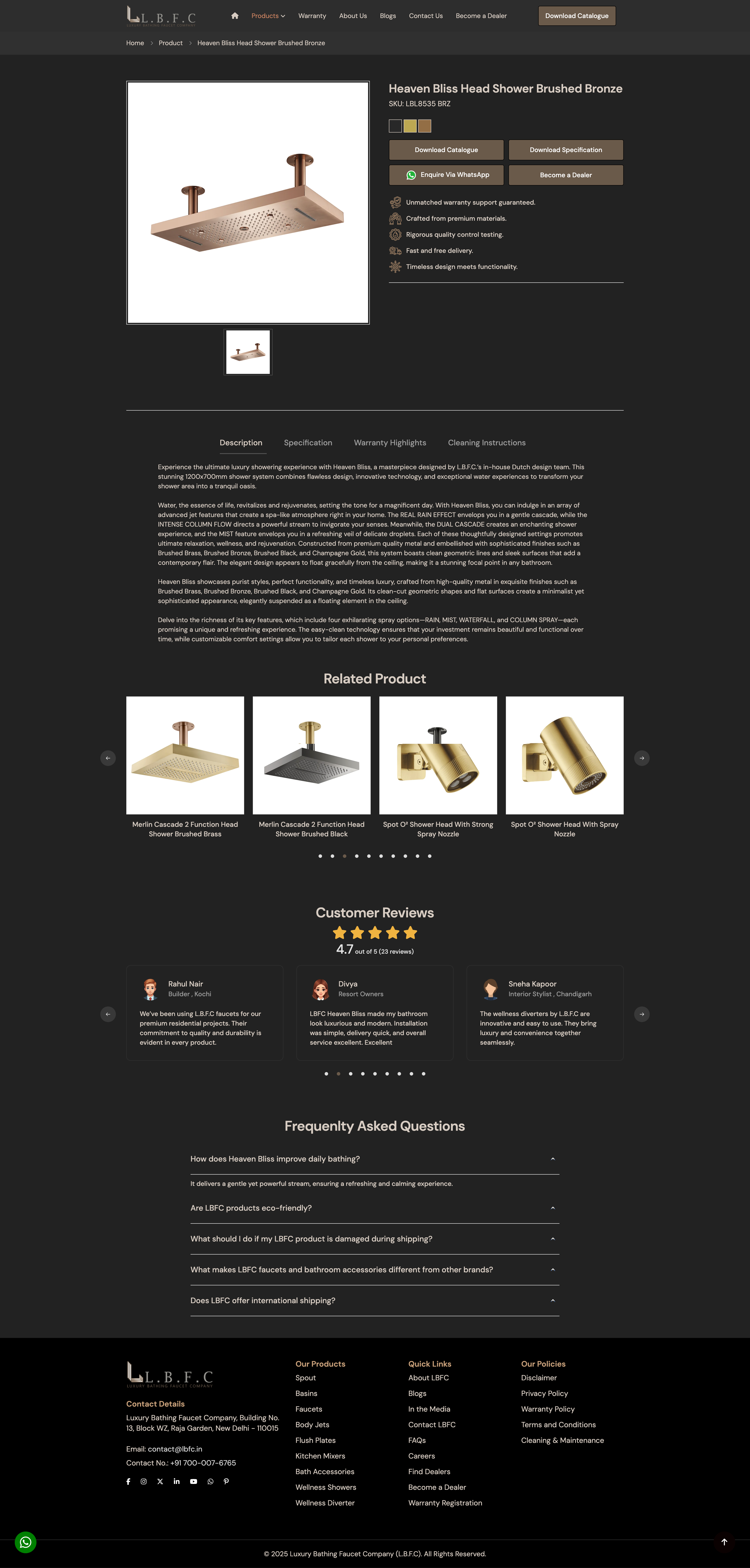 The platform elevates L.B.F.C. from a vendor to a design partner. By translating a global promise of excellence into a beautiful online portal, the system creates immediate trust with homeowners and industry leaders worldwide. The final result is a seamless transition from digital specification to physical installation, providing an inspired, luxury-rooted solution for the modern architectural landscape.