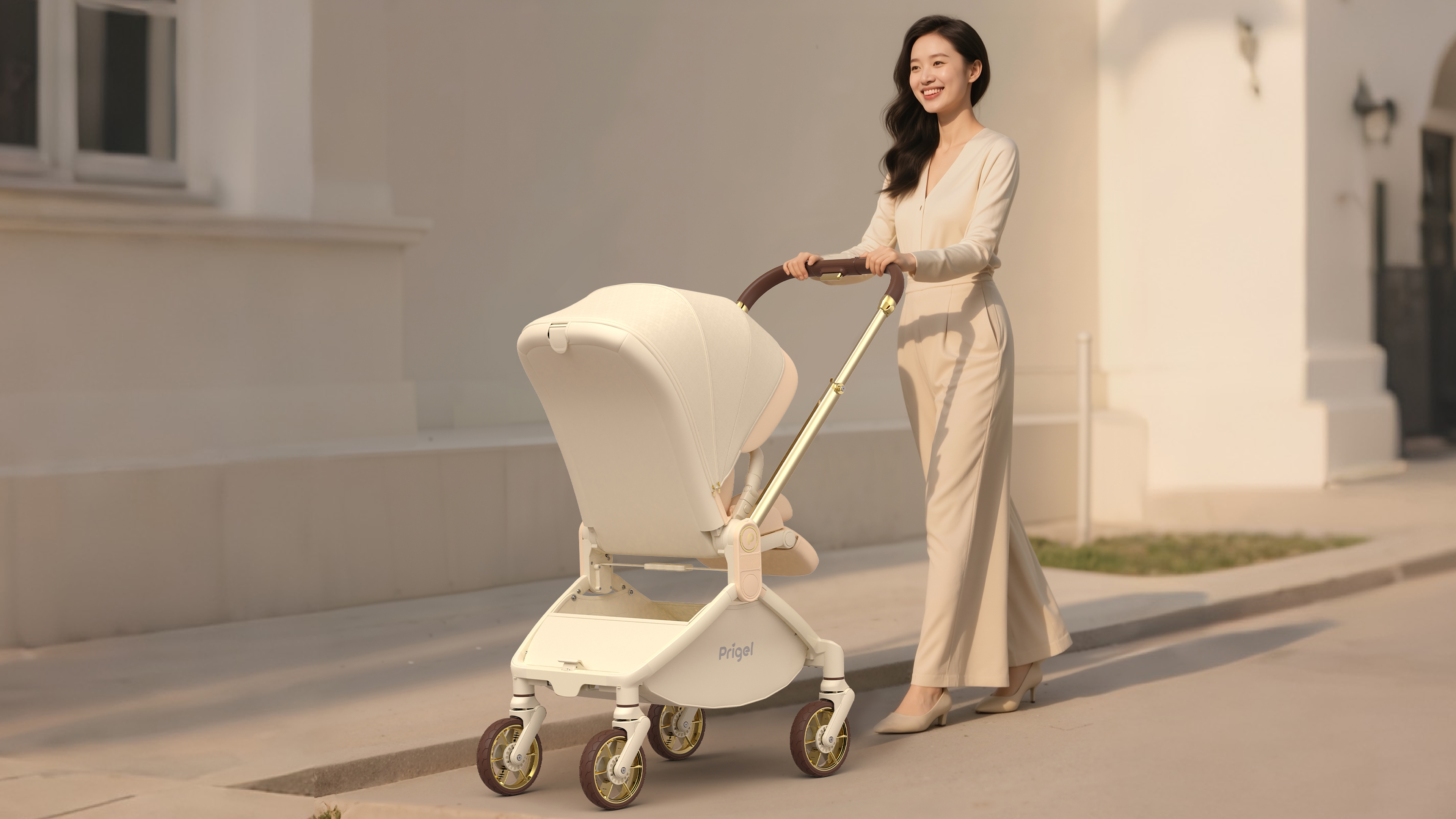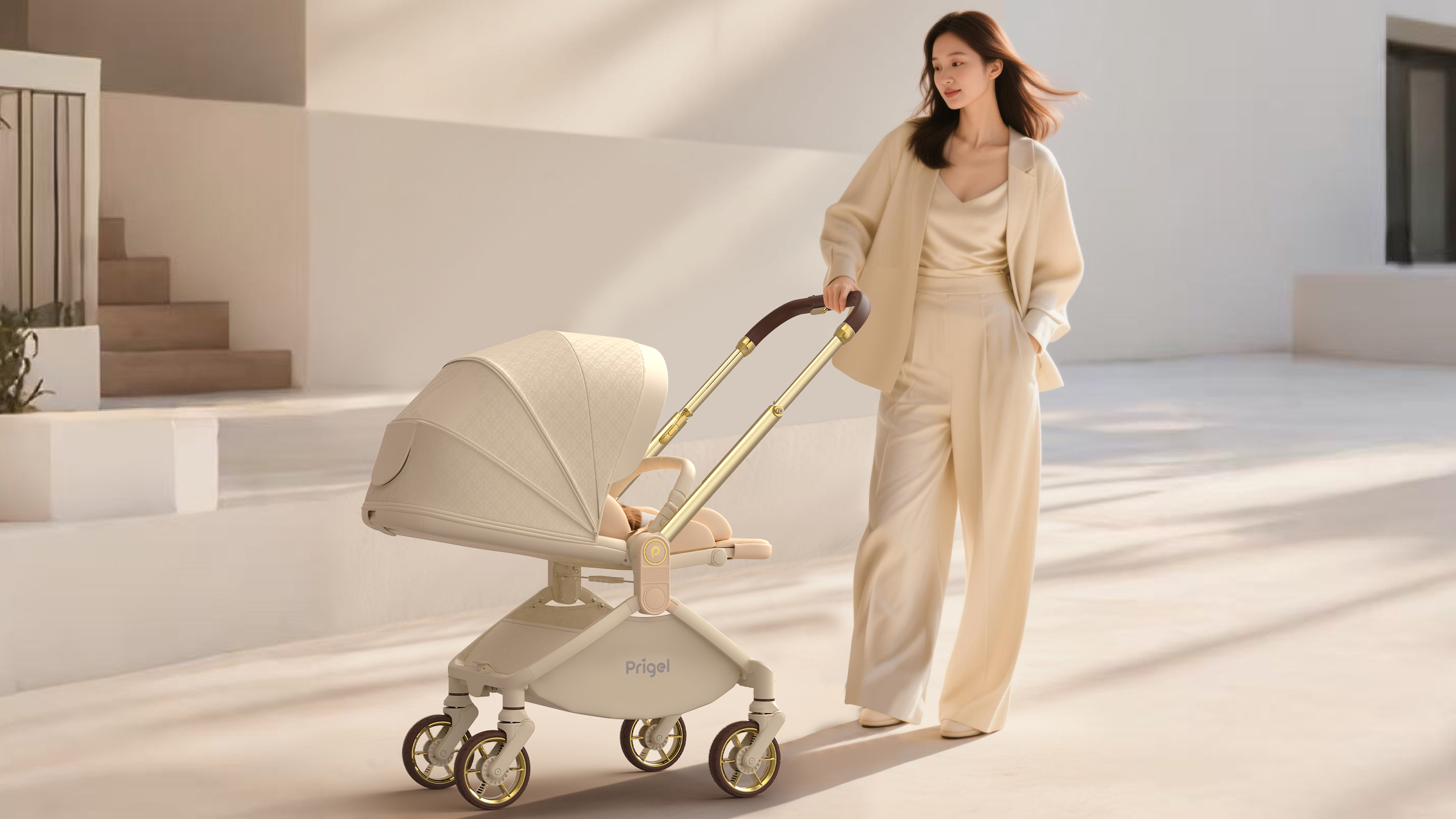 The Baby Stroller allows the viewing position to be adjusted with a simple push of the handlebar, without removing the seat unit, making operation quick and intuitive. The elevated 58 cm viewing height provides a broader field of view and a more comfortable ride. The four-wheel independent suspension system helps absorb shocks from uneven surfaces for smoother movement. With a one-hand folding design, it can be folded in a single motion, making storage and transport easier.