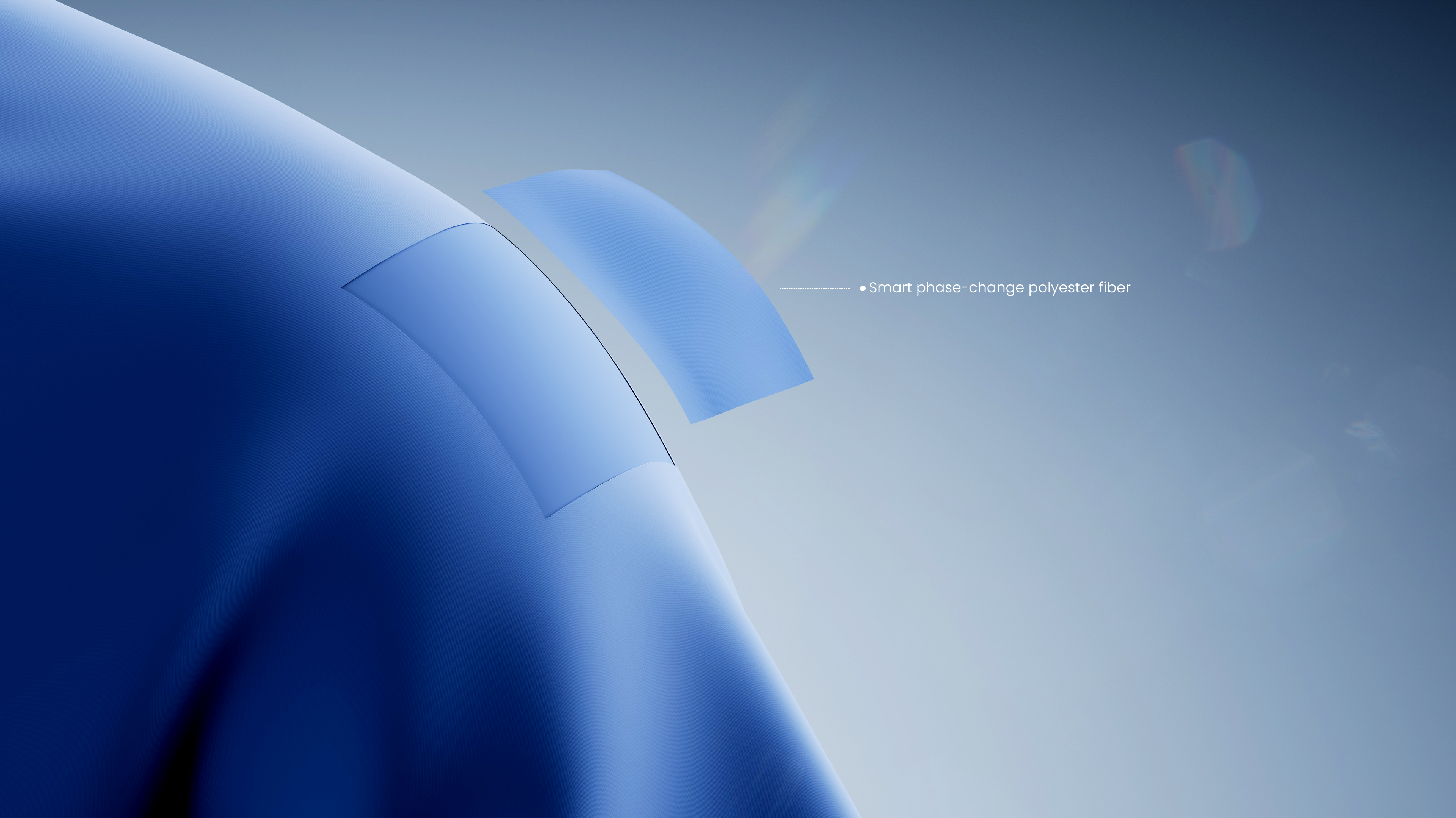 In the current market for temperature-regulating fibers, technologies are predominantly applied to viscose and nylon materials. However, the polyester sector, known for having the largest production capacity and widest application, has long lacked efficient temperature control solutions. Through fundamental innovation in fiber technology, we have successfully developed a smart polyester fiber equipped with phase change temperature regulation. By utilizing Phase Change Materials to absorb or release heat during physical state transitions, this fabric bridges the technological gap in polyester. It introduces unprecedented temperature regulation capabilities while maintaining the superior physical properties inherent to polyester.