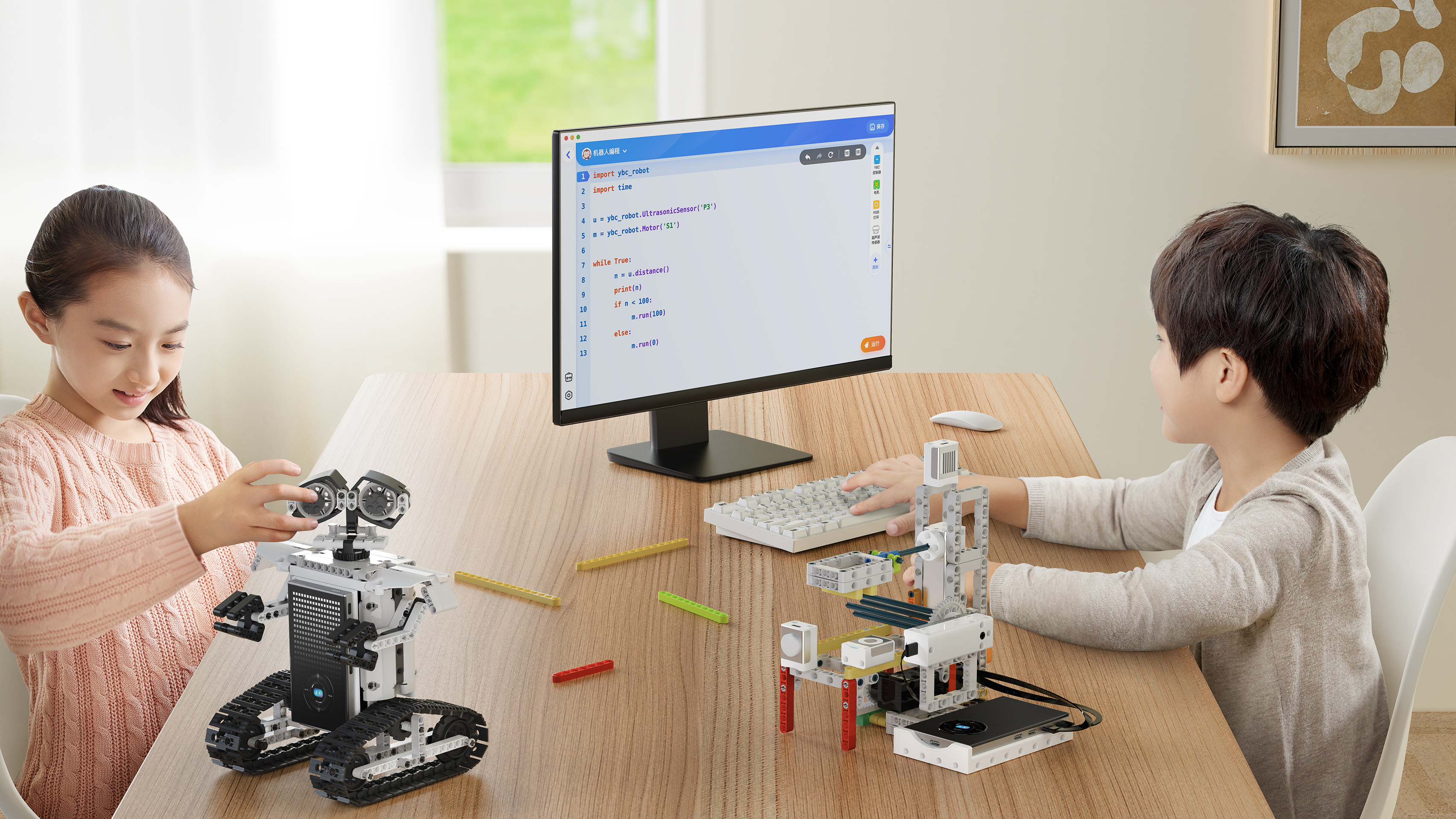 The main controller is equipped with a 242-pixel full-color programmable dot-matrix screen and a multi-touch circular screen. It supports 17 visual functions, including gesture recognition, color learning, and face detection, breaking the boundaries of traditional programming tools. Newly-added large-scale AI models provide children with a powerful knowledge base and intelligent voice dialogue capabilities, offering real-time Q&A support and making the learning process more interactive and engaging.