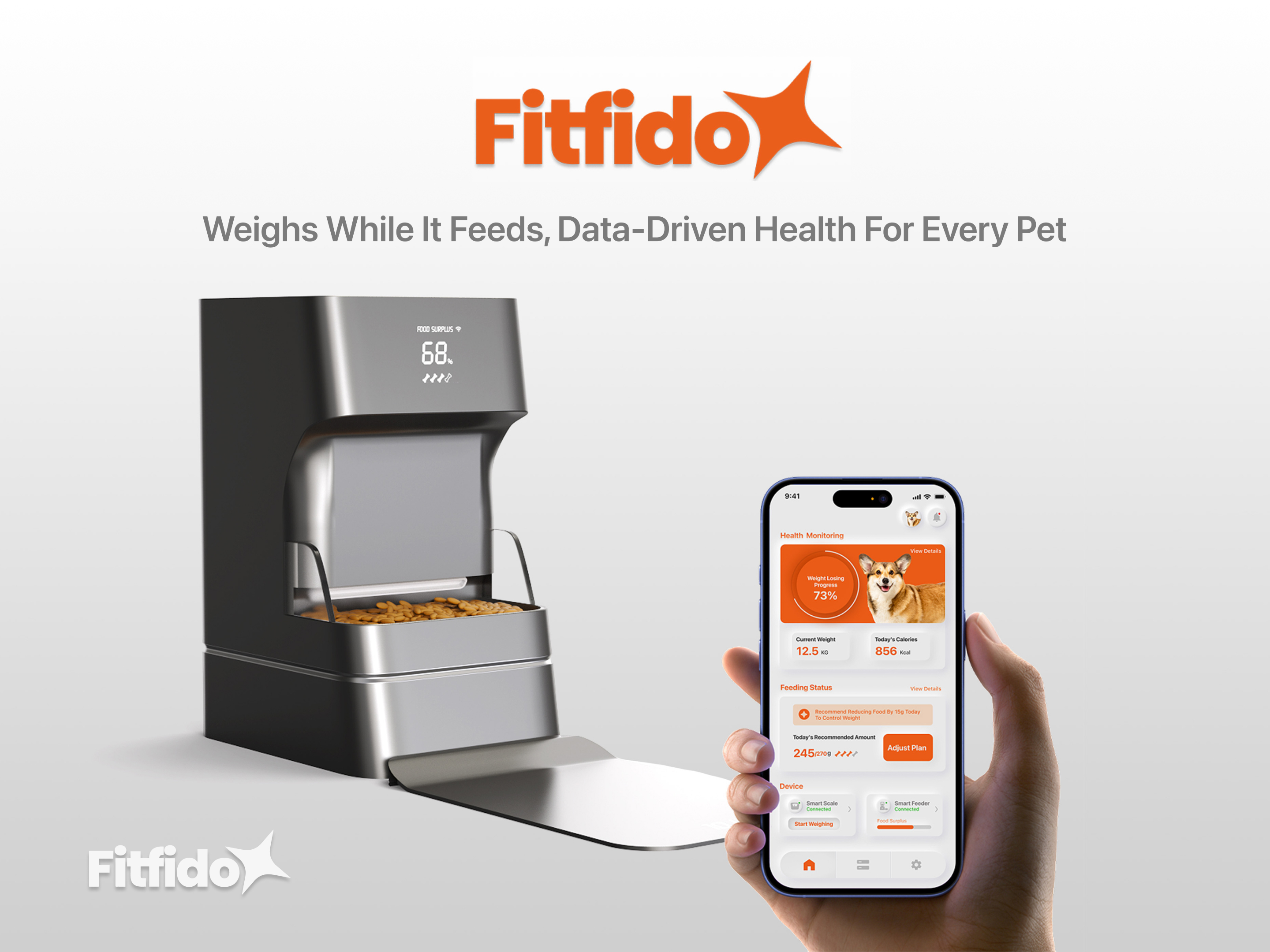 Keeping our pets at a healthy weight is one of the best ways to ensure a long, happy life—but it’s not always easy. FitFido simplifies pet wellness by syncing feeding and weighing into one seamless step. As your pet eats, FitFido captures their weight and automatically adjusts the next portion to meet their exact needs. No more guesswork, no more complicated charts. With FitFido, keeping your pet in peak condition is as natural and simple as mealtime itself.