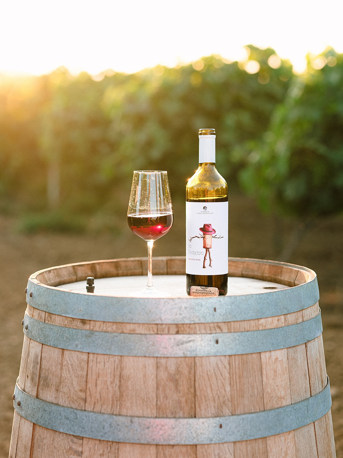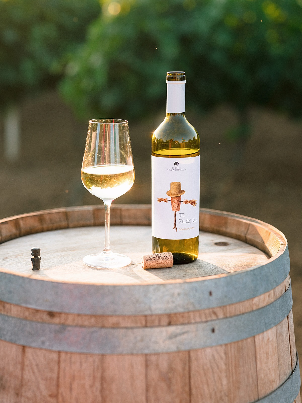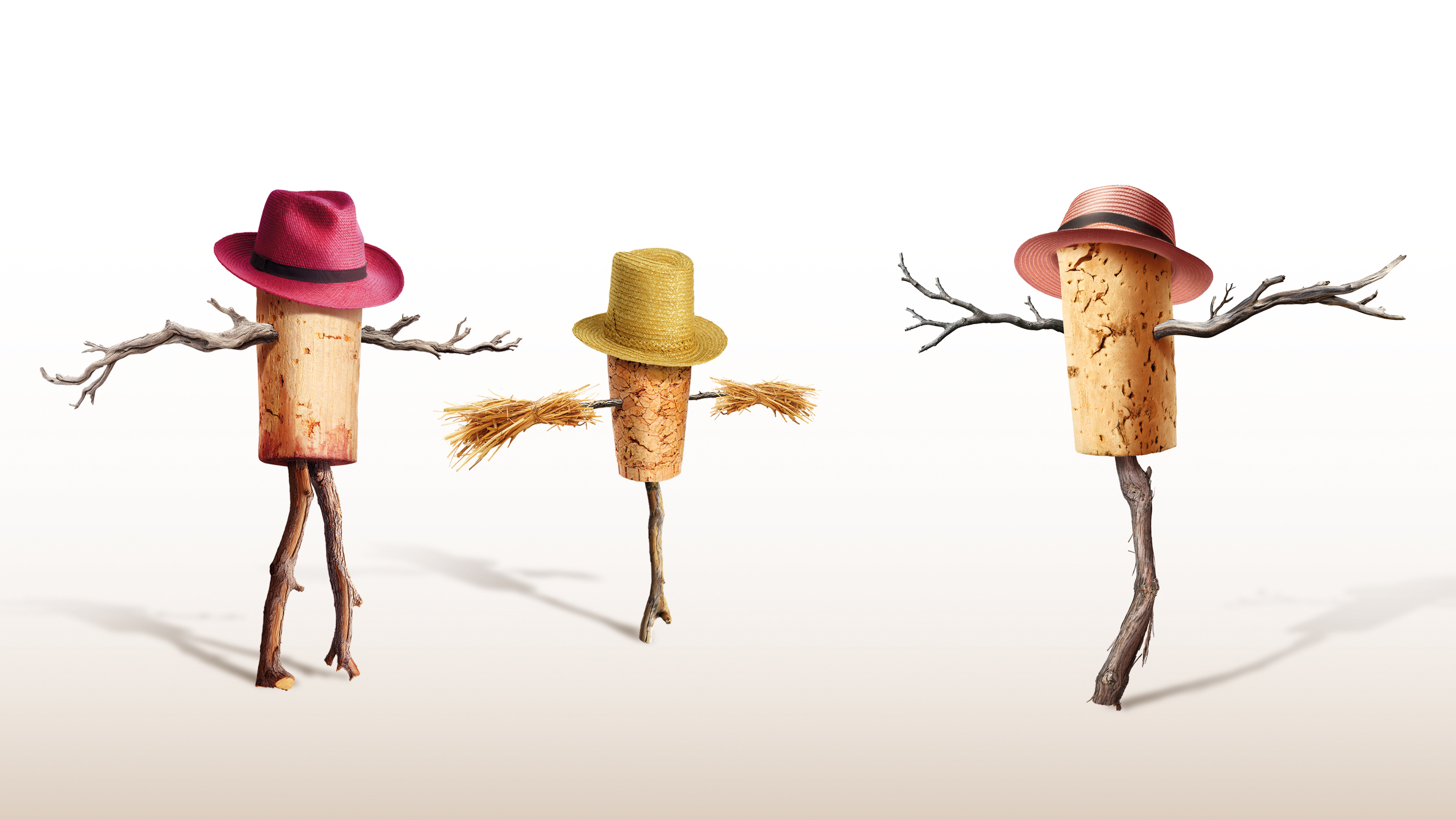 At the center of each label is an illustrated anthropomorphic cork figure, styled as a scarecrow and accessorized with a hat that changes color and tone to reflect the personality of each wine. The cork symbolizes tradition, craftsmanship, and authenticity, while the scarecrow evokes protection, nature, and the vineyard’s close relationship with the land. By combining these elements, the label bridges heritage with a modern, playful visual language.