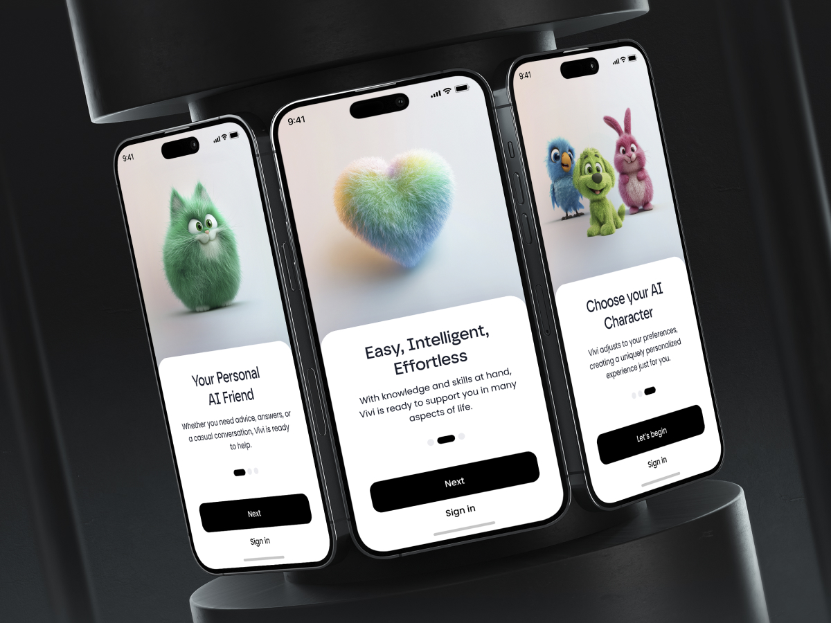 The core UX challenge was balancing simplicity (short attention spans, intuitive navigation) with trust and emotional engagement. Instead of a “generic assistant,” Vivi introduces customizable animal avatars (e.g., cat, rabbit, dog), letting each child choose a character that feels like “their” companion. This choice becomes the personalization anchor—building a sense of ownership, comfort, and continuity across sessions.