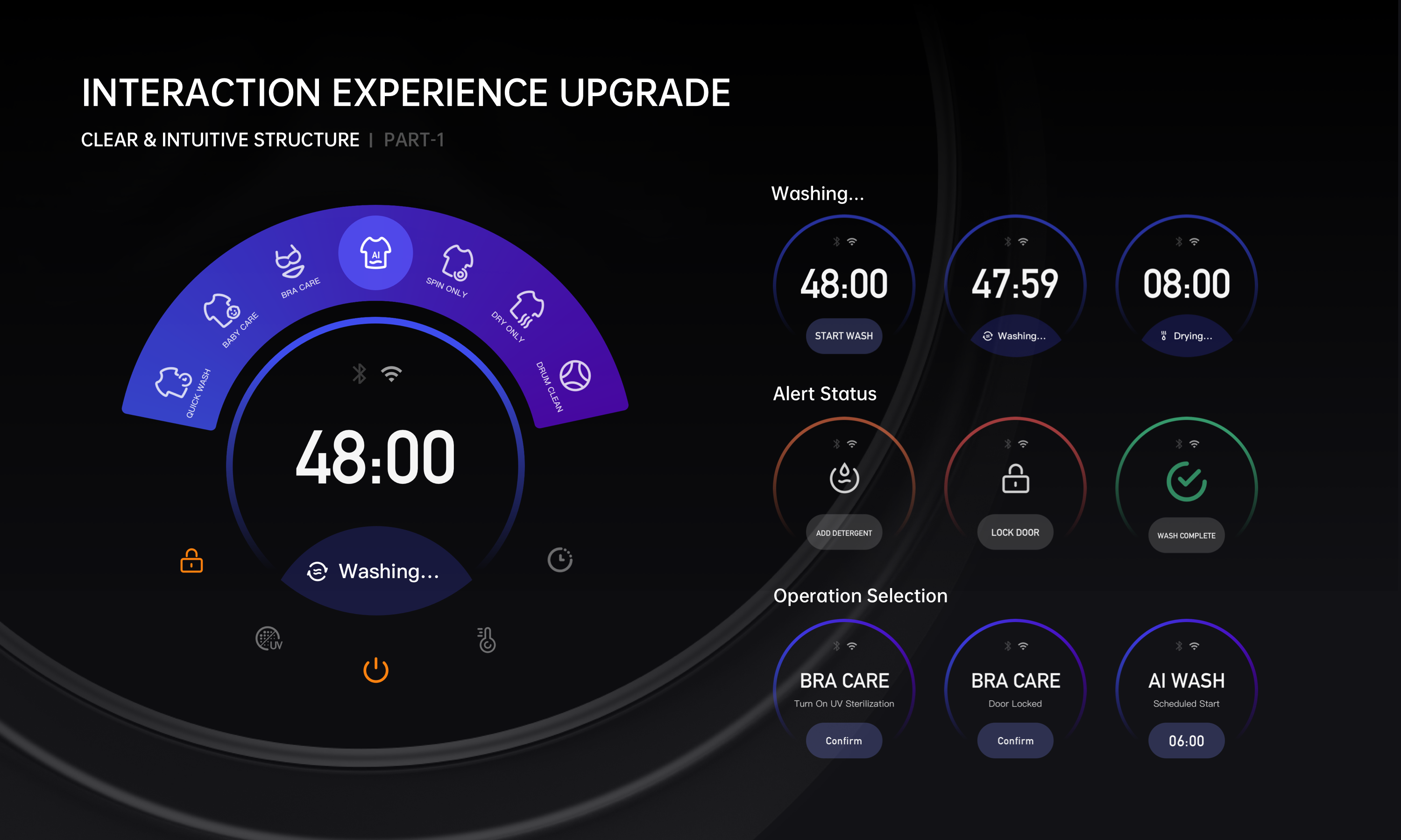 As living standards continue to rise, users’ expectations for laundry appliances are becoming increasingly diverse and personalized. However, many washing machines currently on the market still suffer from high learning costs, complex operations, unclear information hierarchy, and limited intelligence, resulting in a suboptimal user experience.