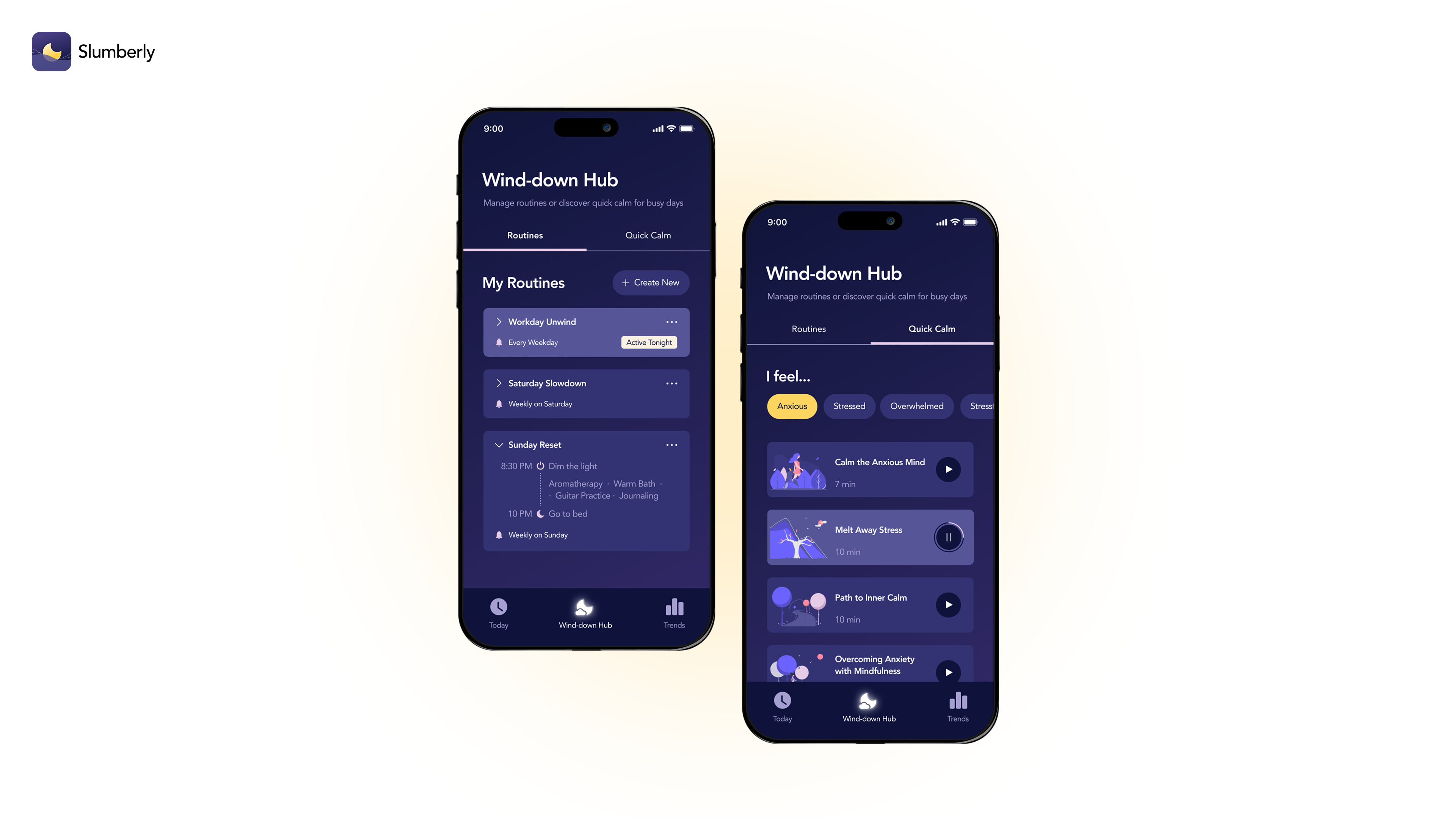 Slumberly is a mobile app that helps young adults with busy, screen-heavy lifestyles rediscover calm at the end of the day. Instead of focusing on sleep itself, it addresses what leads to a restful night: a healthy nighttime routine.