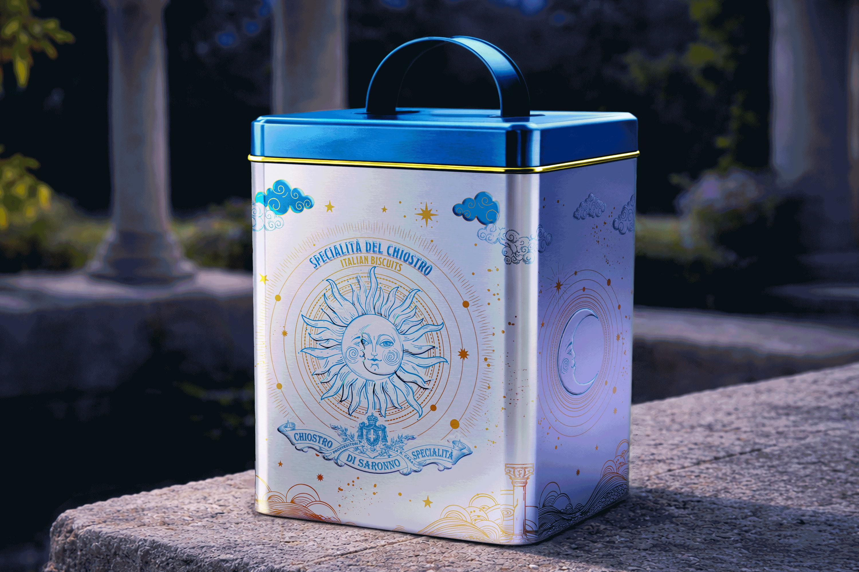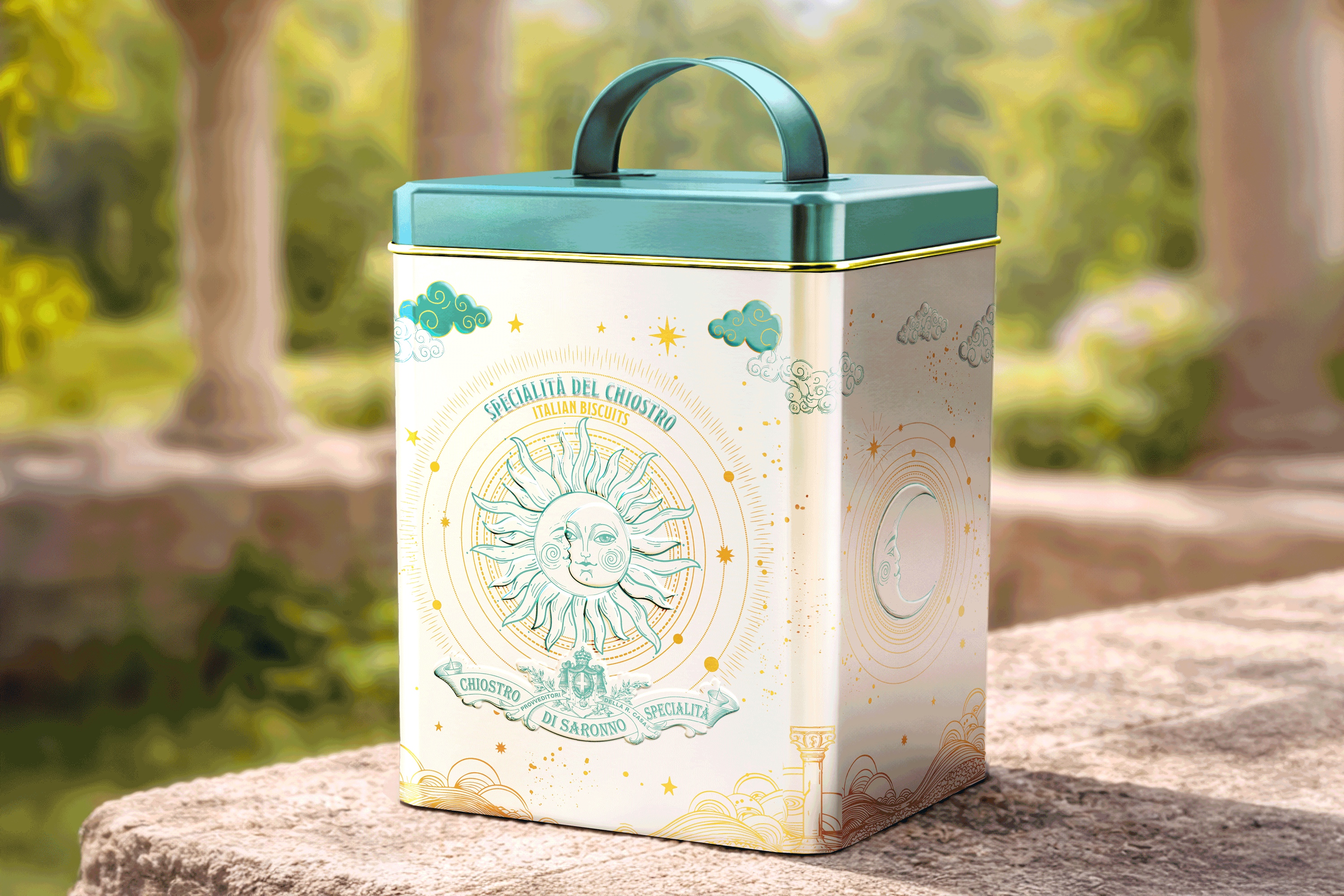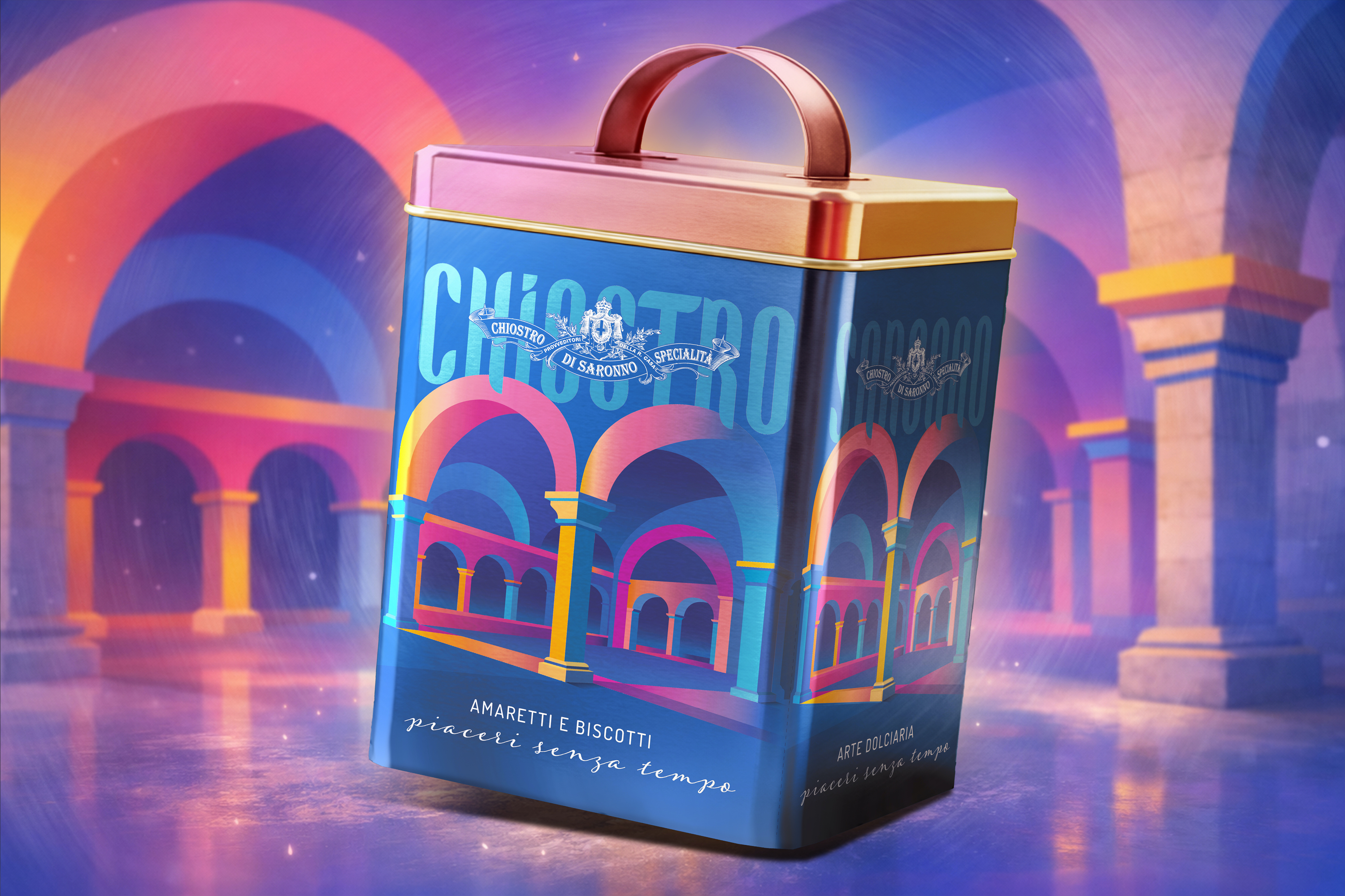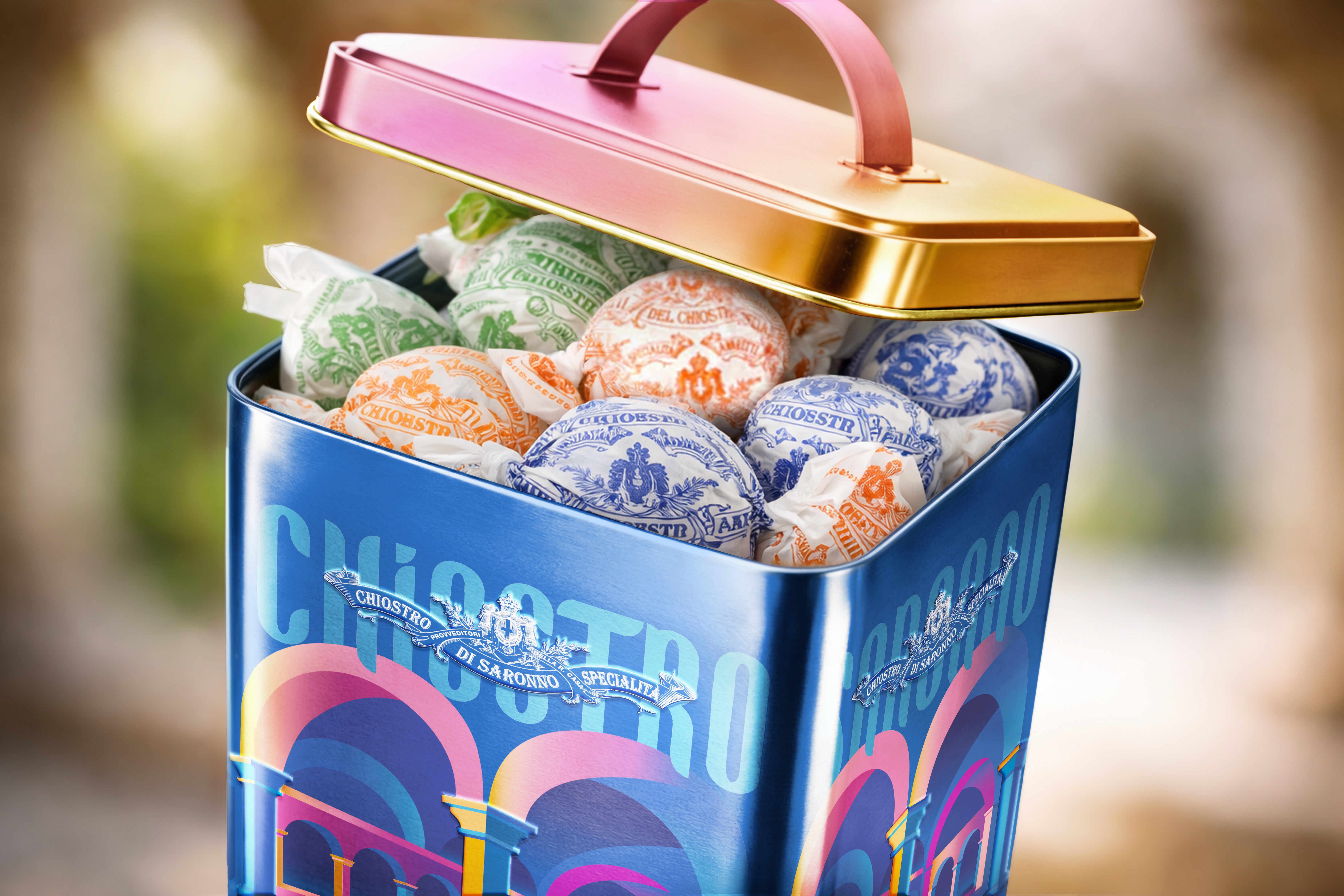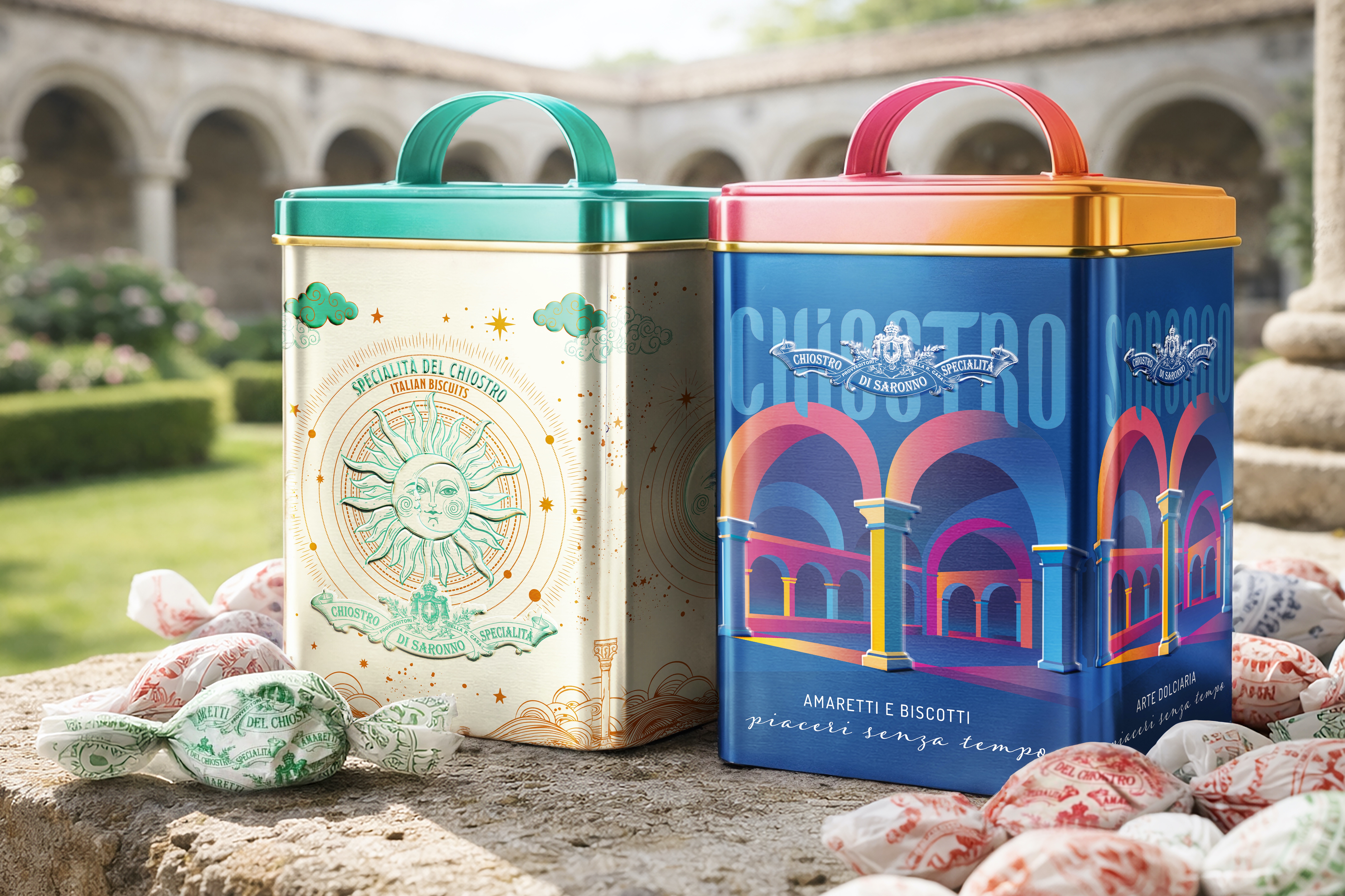 The brief called for the creation of new luxury packaging for the Chiostro di Saronno biscuit and amaretti lines dedicated to special channels — primarily travel retail, duty free, and premium highway food services.