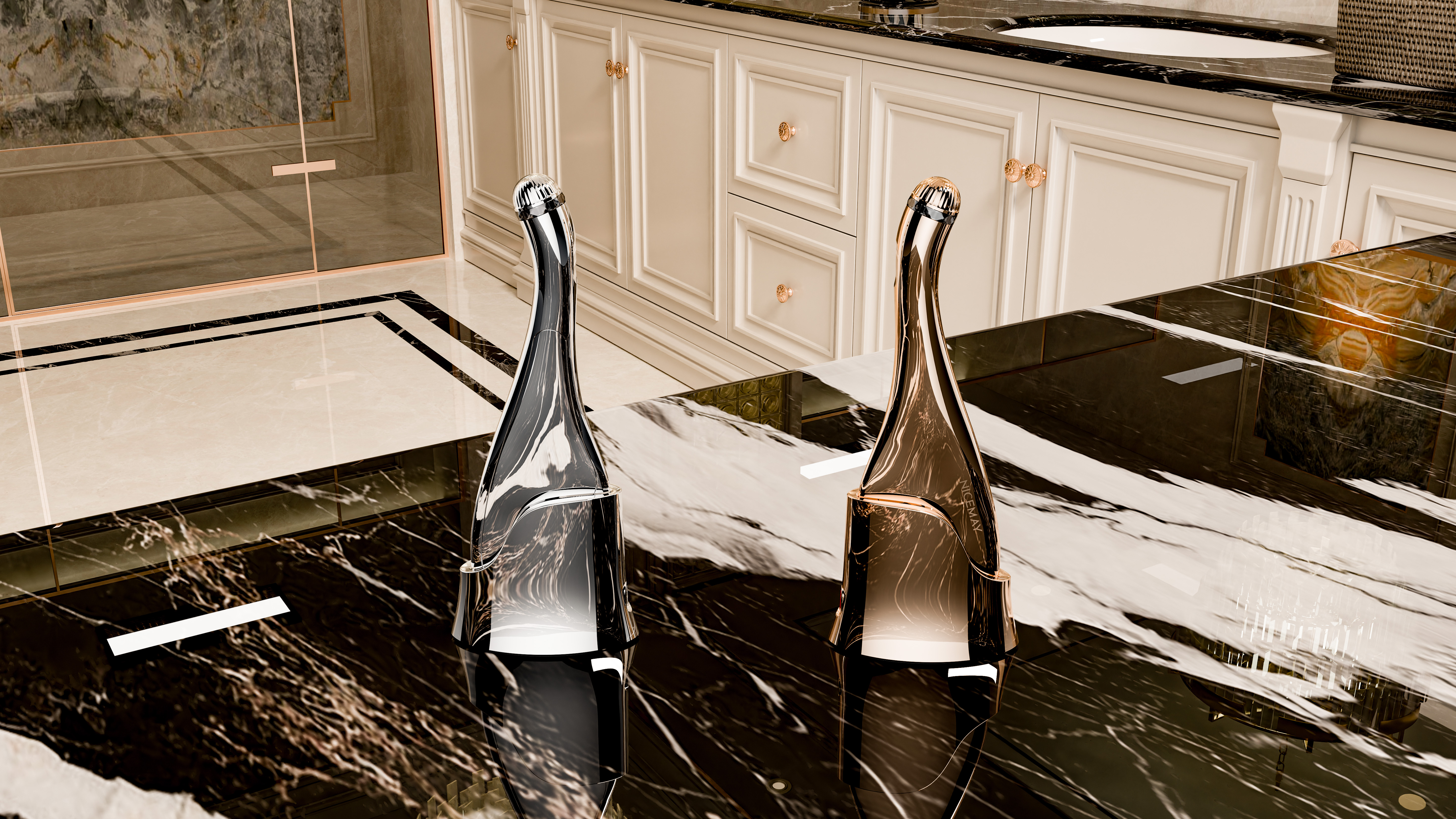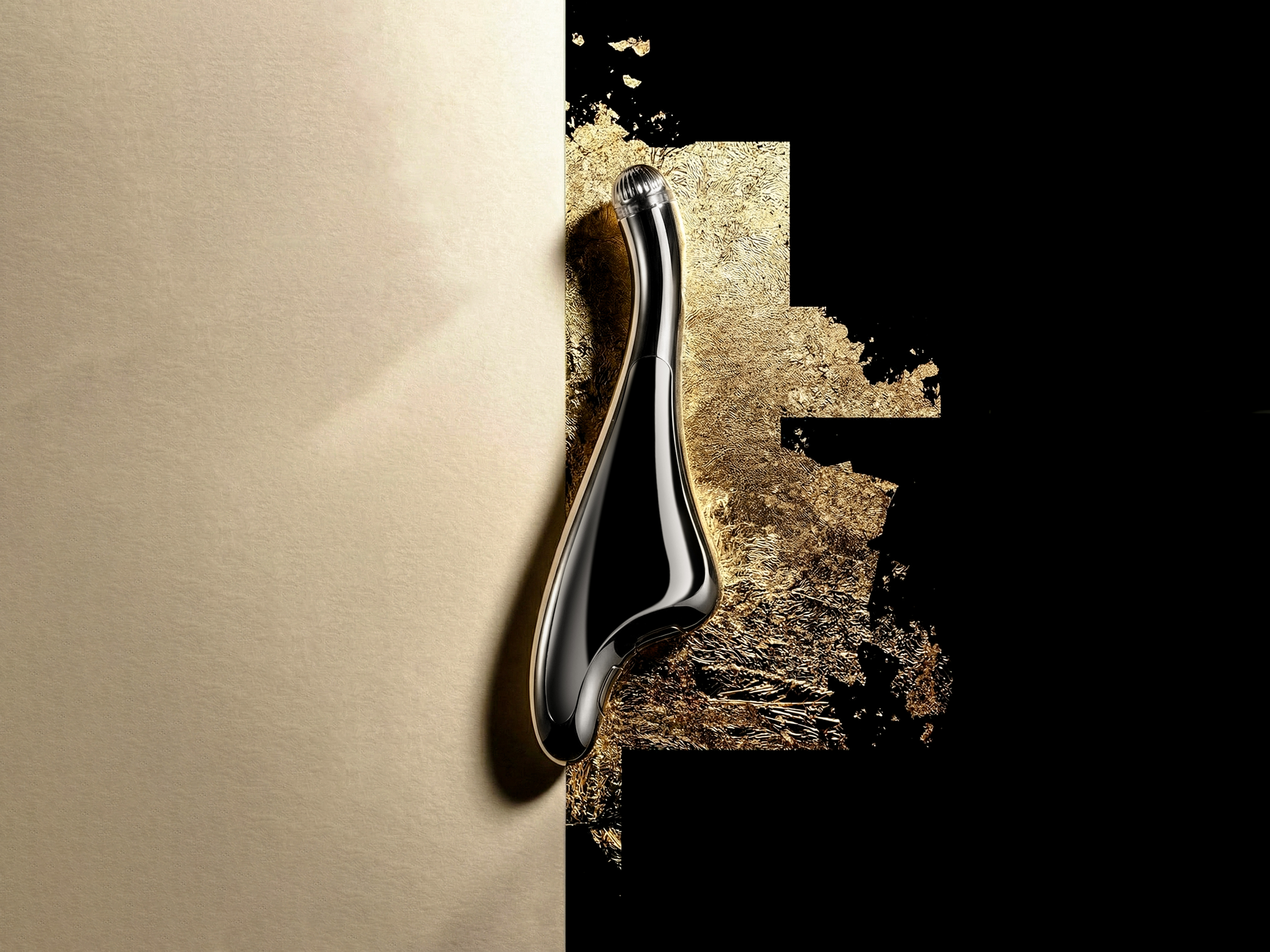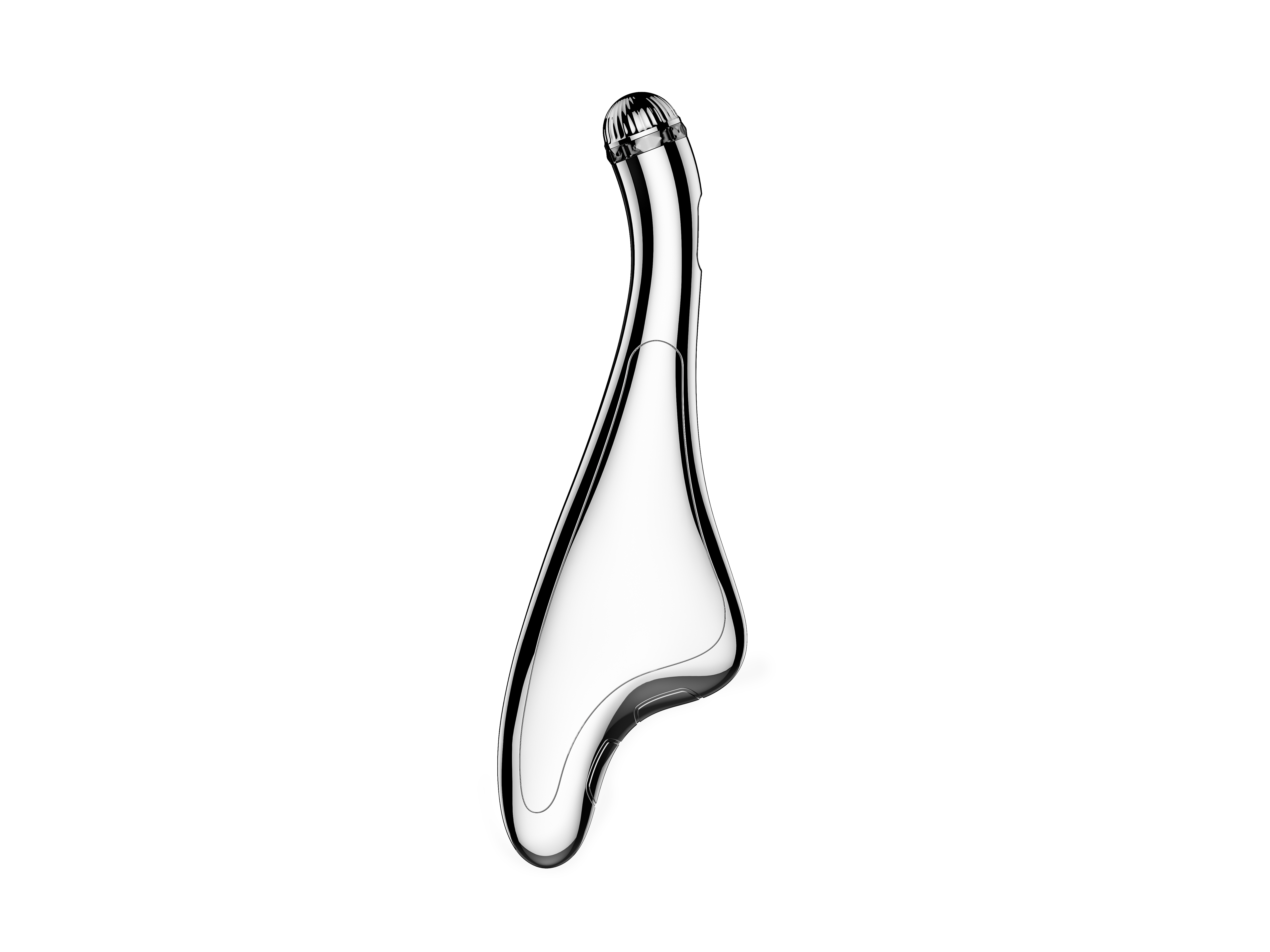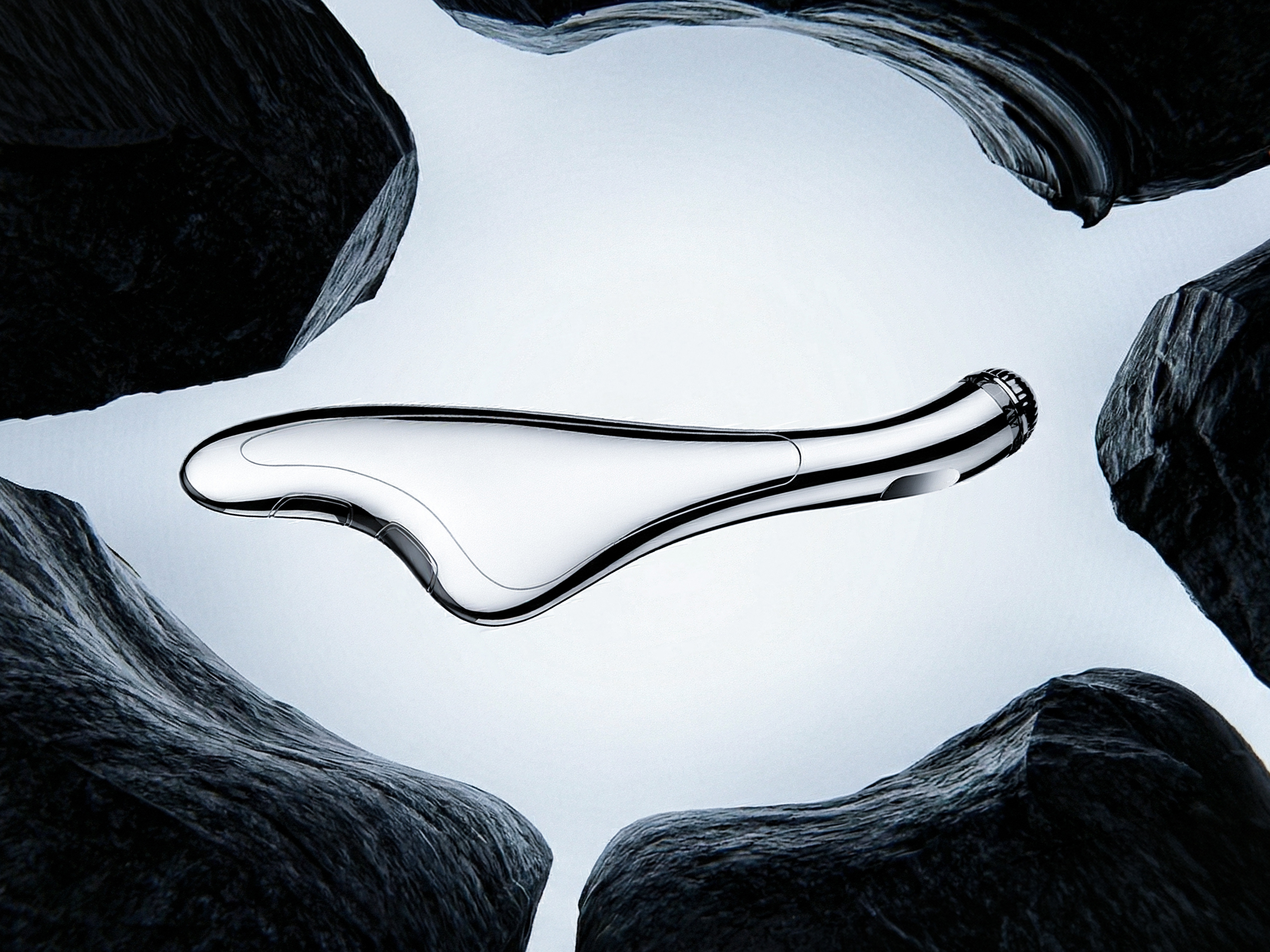 This procedural control is primarily realized through its streamlined, wing-shaped V-contour. The geometry translates primary lifting paths into a physical guide; variations in surface width and continuous curvature create a stable contact band upon skin contact, naturally constraining gliding angles and directions to eliminate manual errors. The body is crafted from electroplated silver zinc alloy, balancing structural rigidity with stable conductivity. A high-polish surface reduces skin friction for a seamless glide, while conductive and insulated zones are clearly separated to concentrate energy at the electrodes. A silicone cushioning layer further stabilizes pressure distribution. This unified aesthetic derives from structural integration rather than decorative layering, featuring a seamless construction that achieves an IPX6 waterproof rating for safe use and effortless cleaning.
