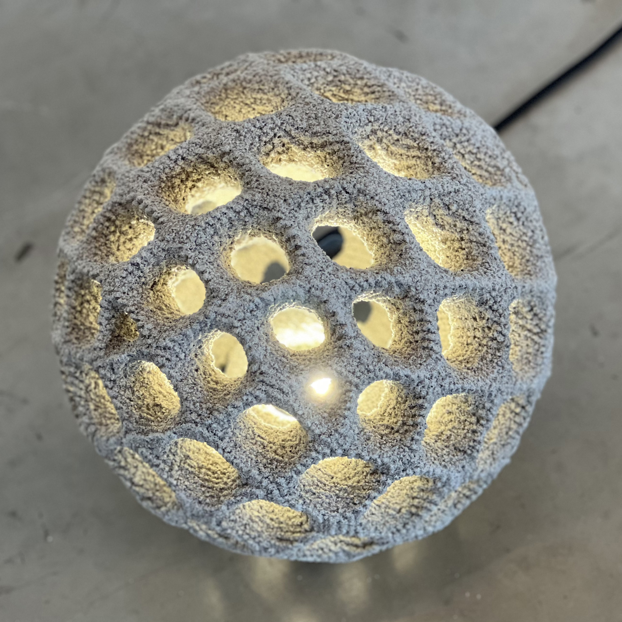 With three available sizes—30 cm, 70 cm, and 100 cm in diameter—the Oberhauserer's Balloon offers versatile applications, from subtle accents to striking light installations. The largest variant, with a 100 cm diameter, represents the largest known 3D-printed lamp made from cement, setting new standards in lighting design.