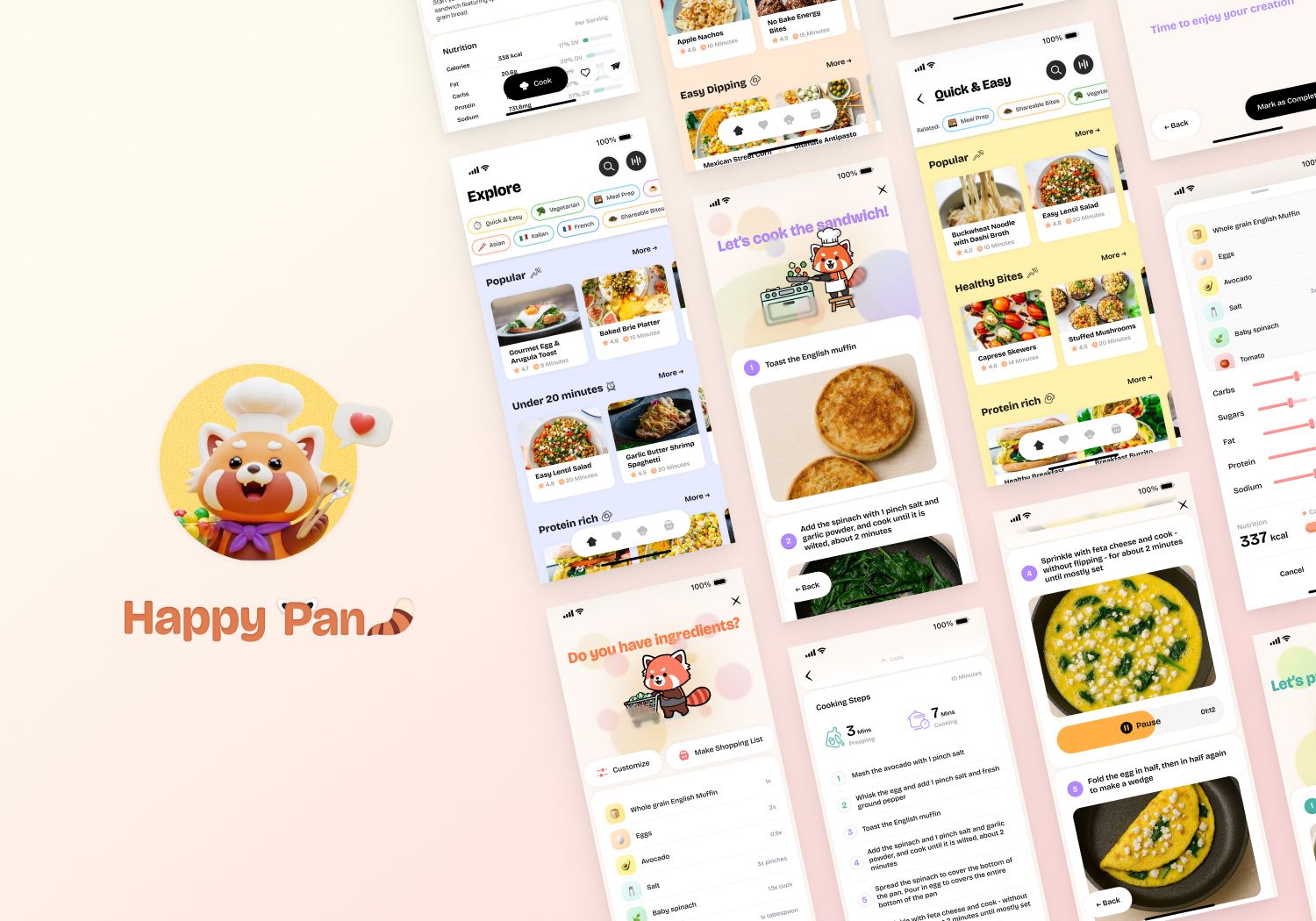 HappyPan is a mobile application designed to make healthy home cooking accessible to busy young professionals who want nutritious meals but often lack the time, experience, or confidence to cook. Traditional recipe platforms rely heavily on long paragraphs of text instructions and rigid ingredient lists, which can be overwhelming for beginners and inefficient for users who prefer quick, visual guidance. HappyPan reimagines the cooking experience through a visual-first, customizable, and intelligent recipe interface tailored to modern browsing habits.