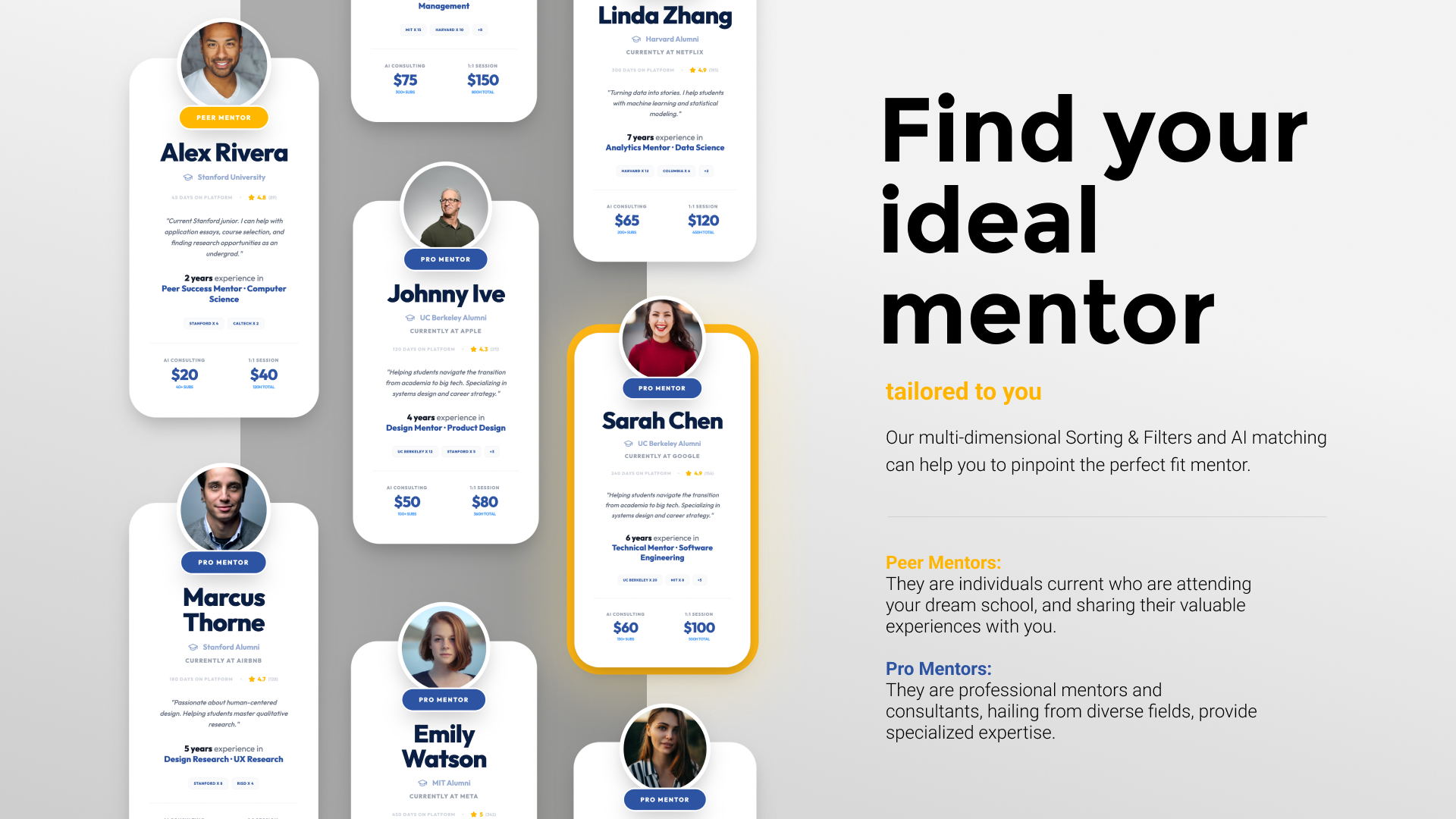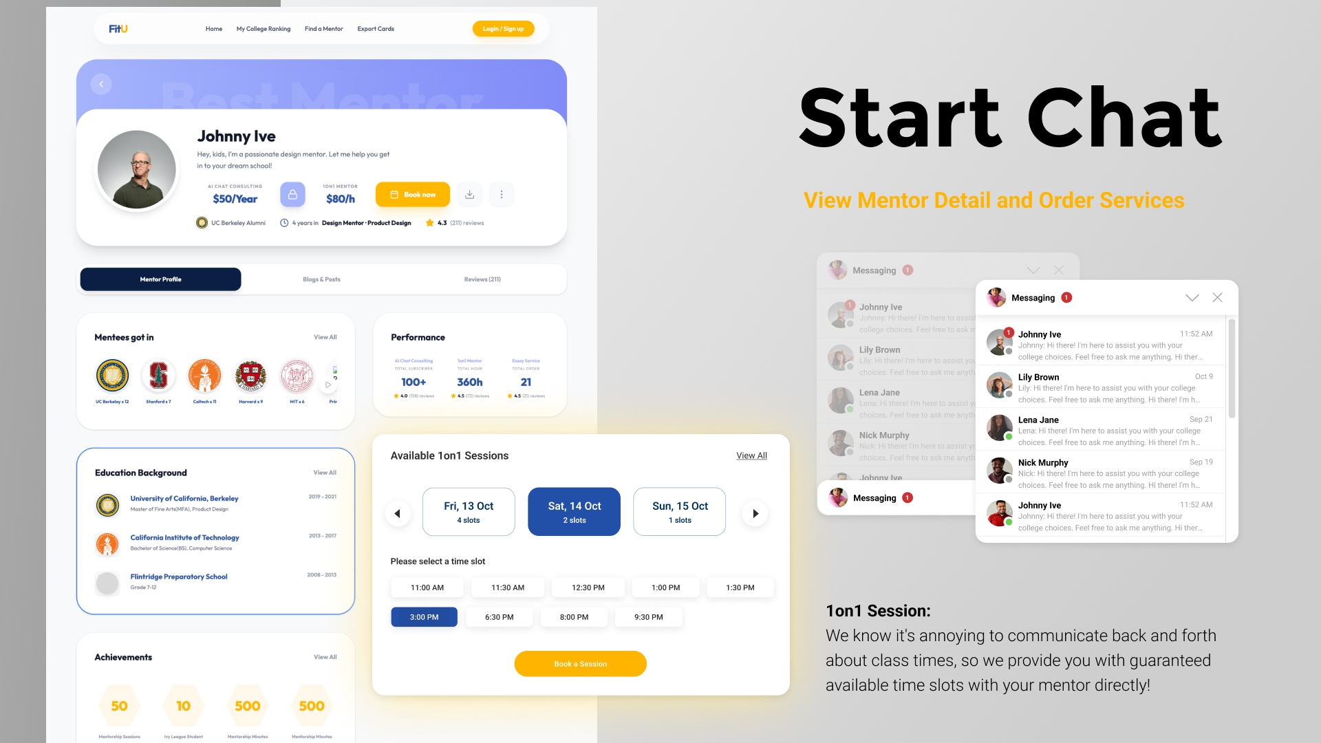 Beyond recommendations, FitU integrates a mentorship network that connects students with relevant advisors. The platform includes both peer mentors—students currently studying at target universities—and professional mentors with admissions and career expertise. Intelligent filters and AI-assisted matching help students find mentors whose experience aligns with their academic goals, enabling personalized guidance throughout the college application journey.