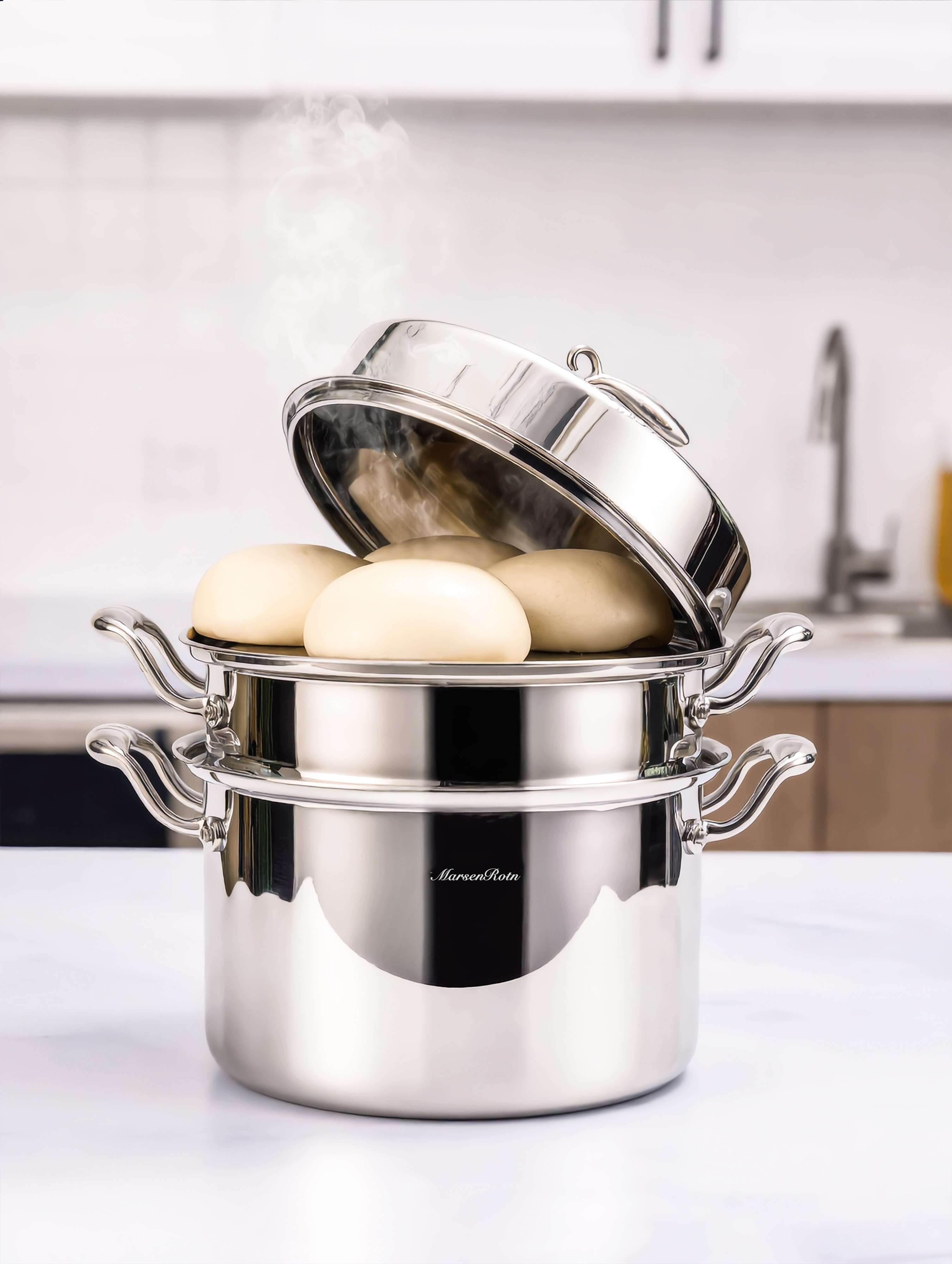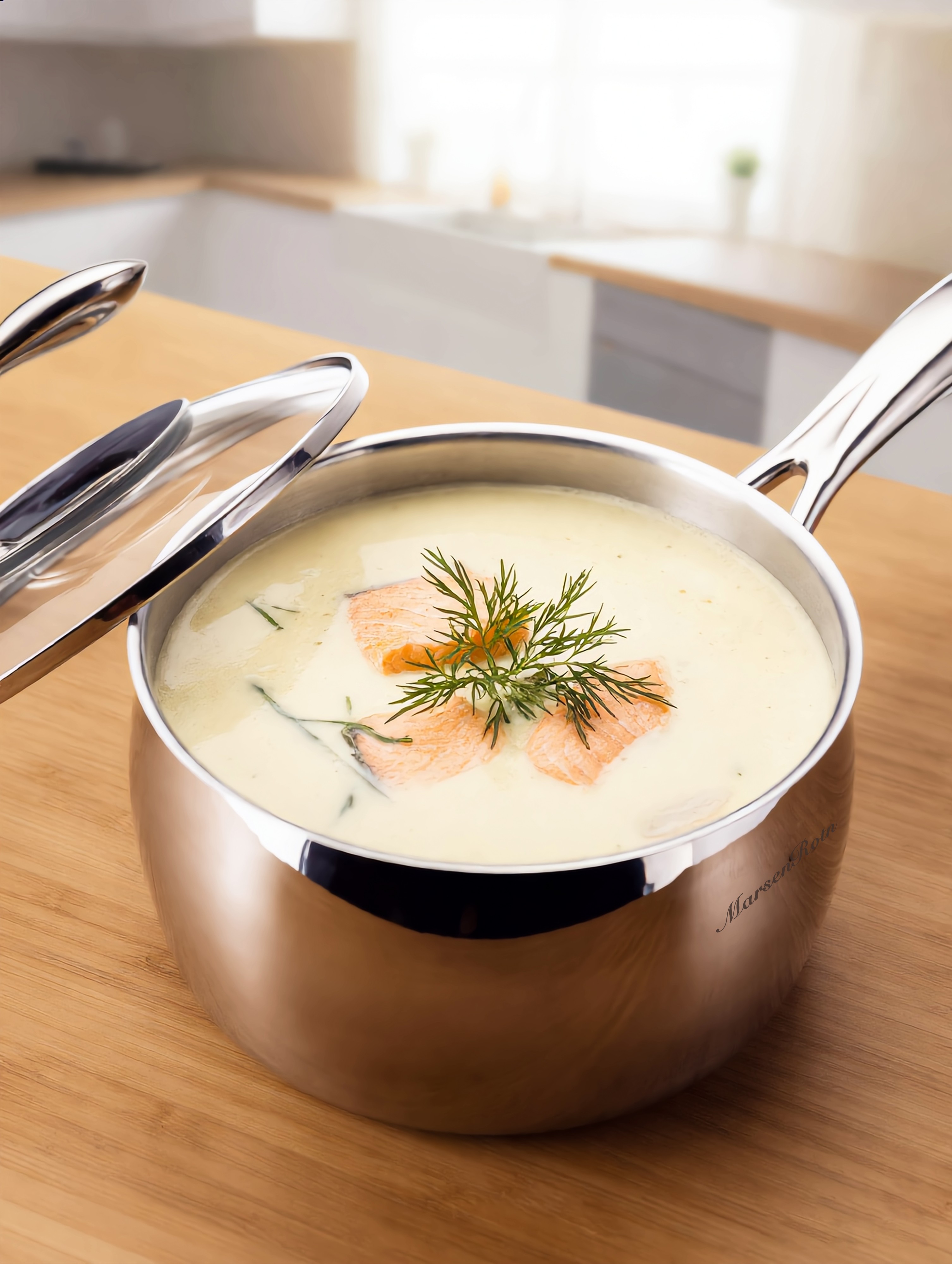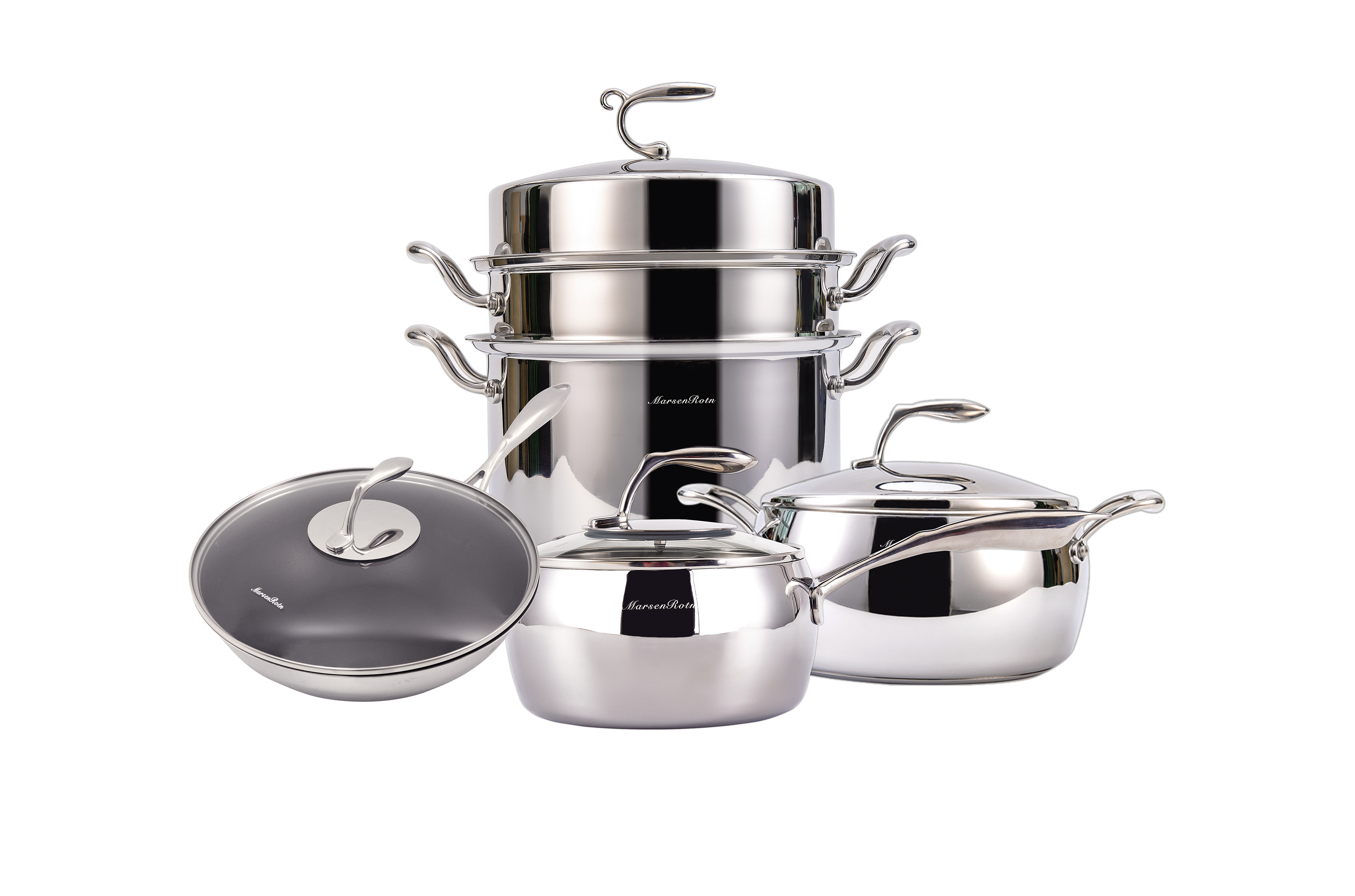 A cohesive visual language unites every piece in this series, featuring a wide-rimmed, low-profile silhouette and a gently arched lid. Through a meticulous mirror-polishing process, each piece achieves a refined, lustrous finish that resists oxidation and simplifies cleaning. Complementing this form is a cold-rolled steel handle shaped like a swan’s neck, creating a subtle textural contrast. Together, these features create a cookware series that perfectly balances elegance with everyday utility.