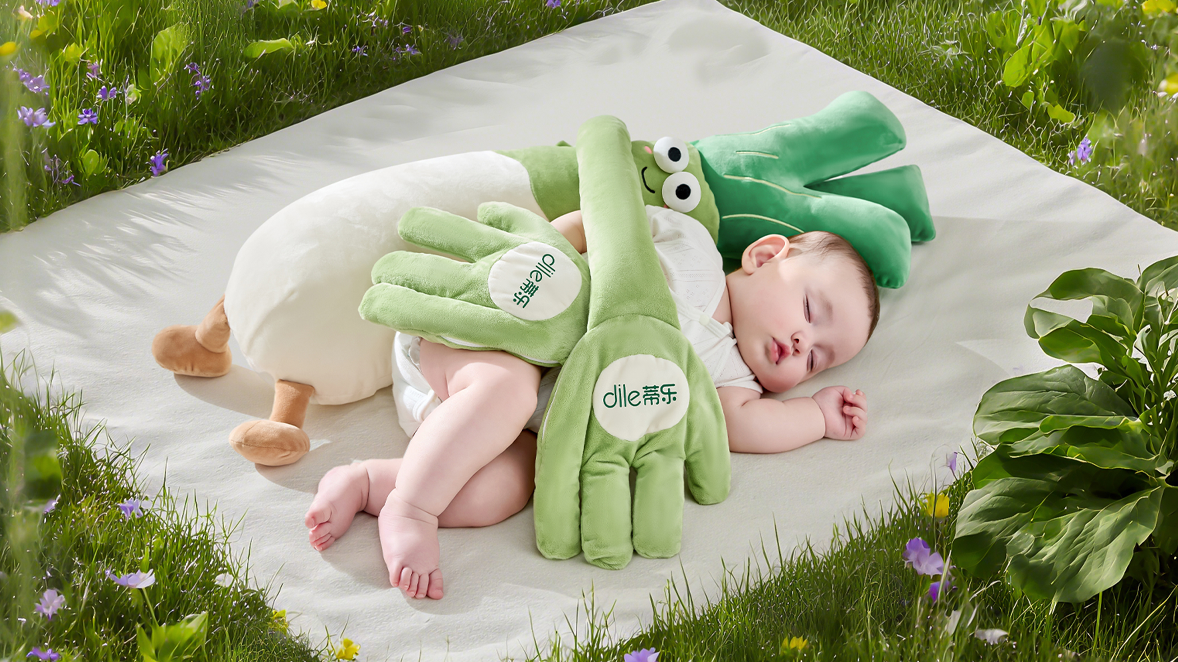 The scallion-inspired design draws from Chinese cultural symbolism, where “scallion” is a homophone for “cleverness,” representing parents’ hopes for their children’s bright future. With its gentle green color and playful form, the pillow becomes not only a functional product but also a comforting companion during early childhood.