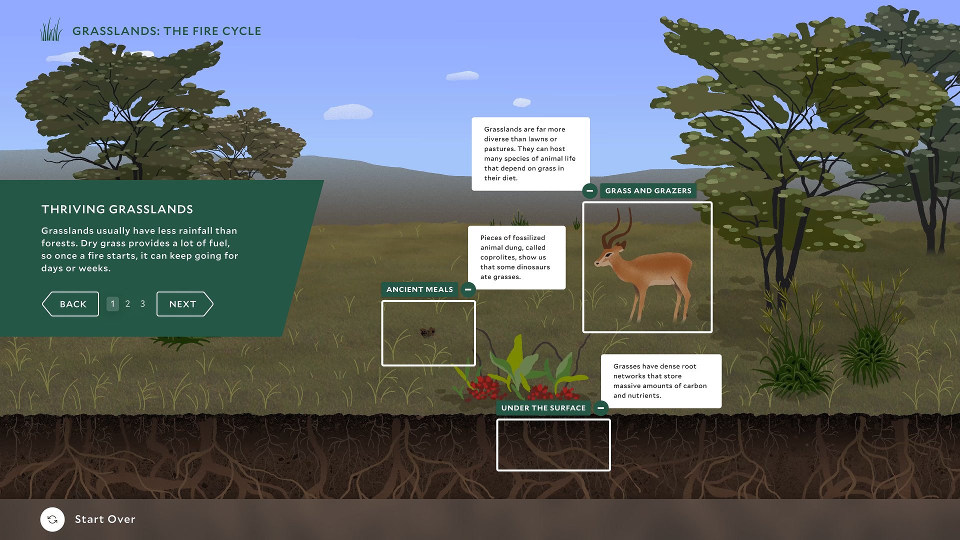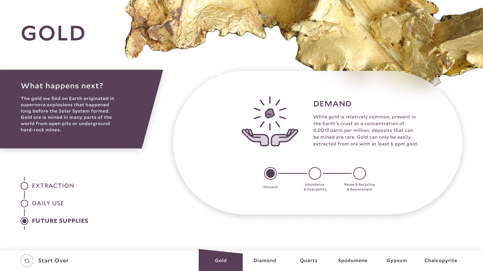 Rather than functioning as standalone screens, the interactives are embedded within the physical exhibition environment. Each installation is tailored to its gallery context, visually aligned with surrounding displays, and structured to complement artifacts without competing for attention. Through a combination of imagery, motion, spatial layout, and layered content, the experience supports both quick browsing and deeper exploration of complex scientific narratives.