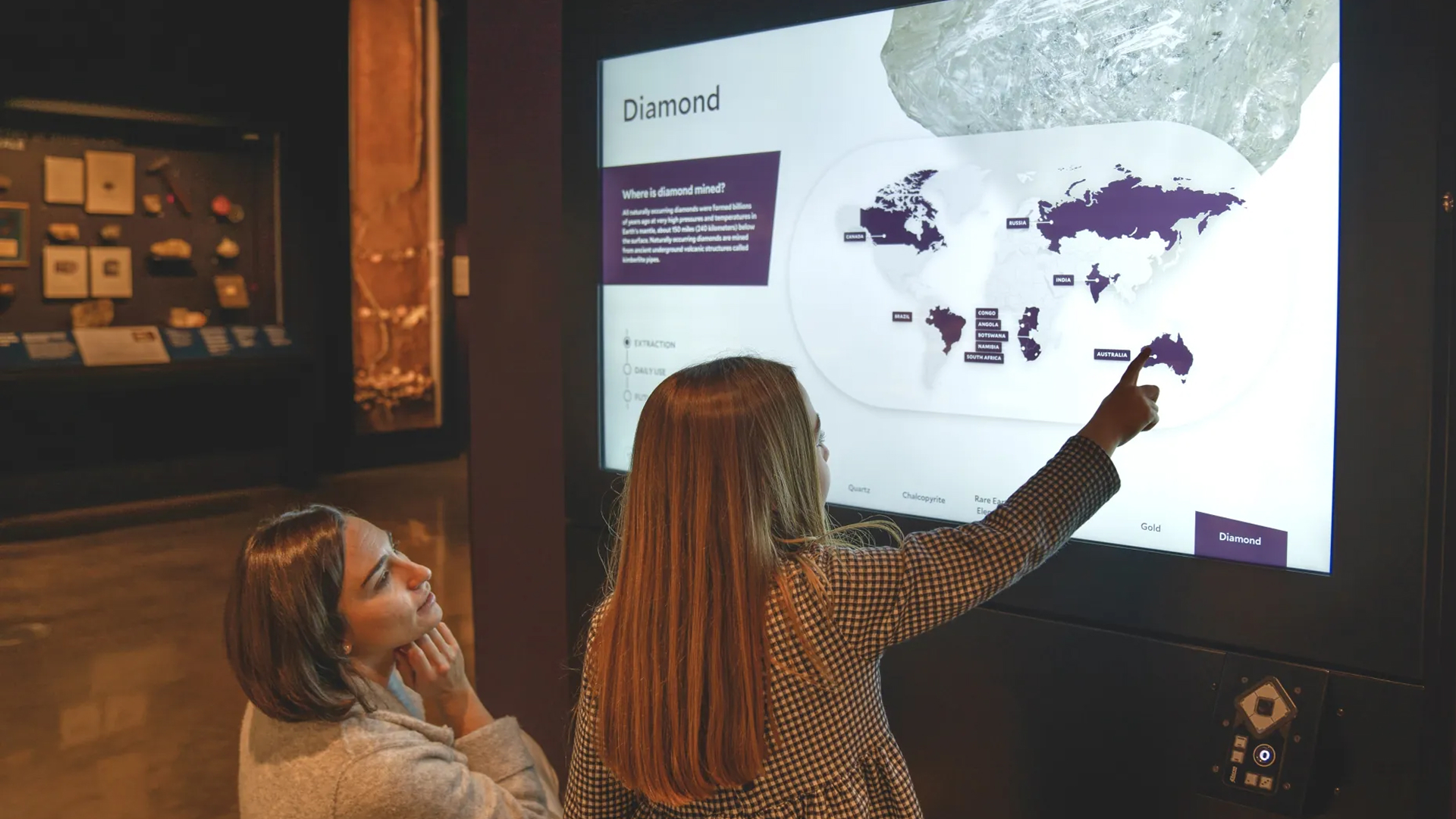 Conceived as part of the museum’s full-scale reopening, the experience extends interpretation beyond traditional labels and static displays. Across 15 strategically placed kiosks, digital media introduces visitors to the stories behind the artifacts—how specimens were discovered, studied, and understood—making visible the scientific processes that connect evidence to knowledge.