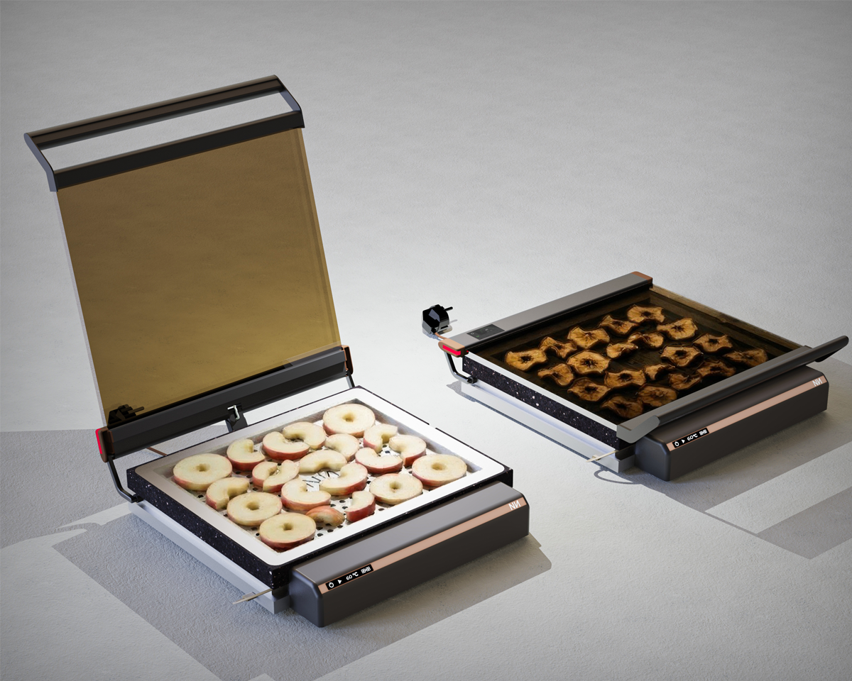 MULTIHEAT is a dual-function kitchen appliance that combines a sandwich toaster and a low-temperature food dehydrator within a single compact device. The project reinterprets a familiar household product as a multifunctional food preparation system, addressing both limited kitchen space and the increasing demand for healthier, homemade snacks.