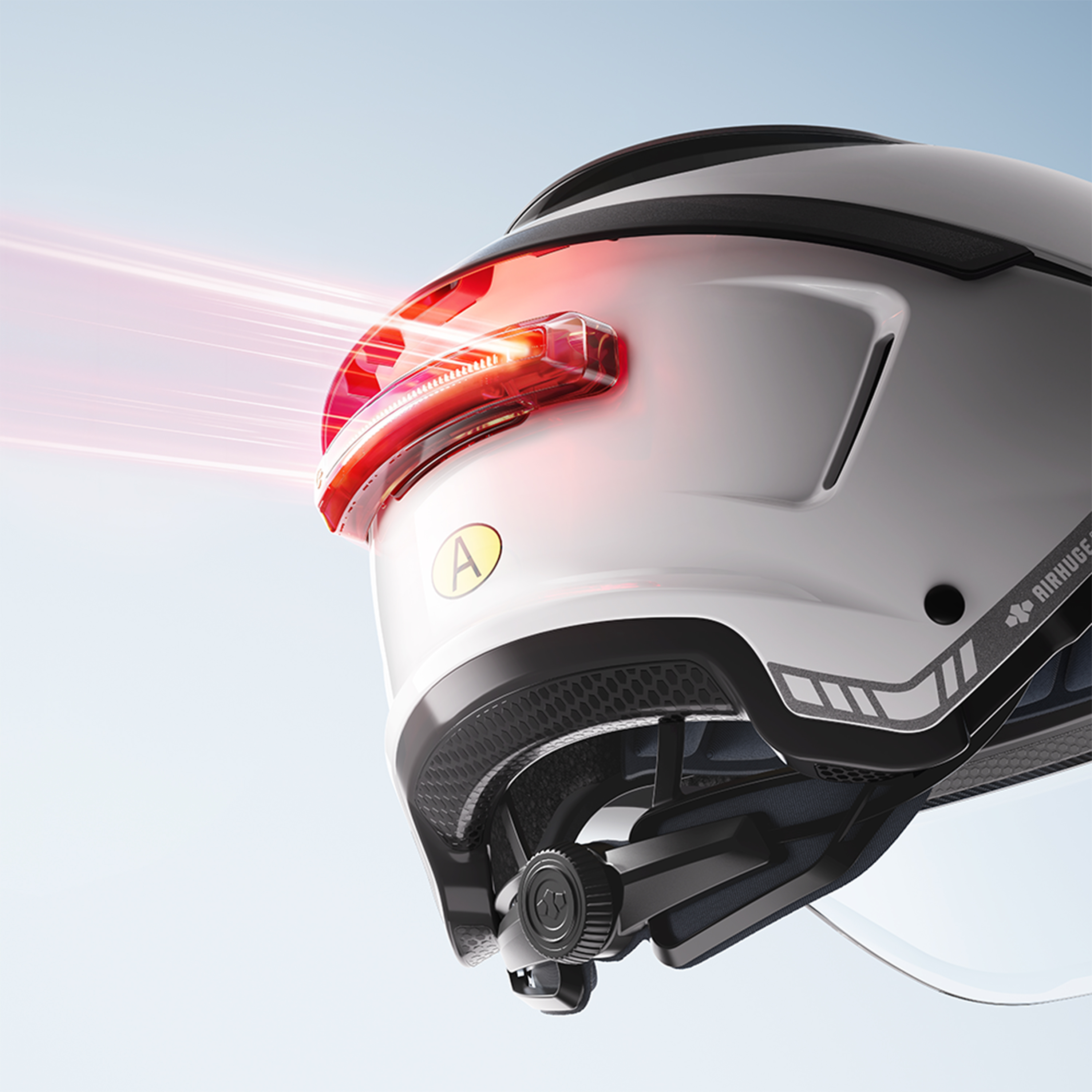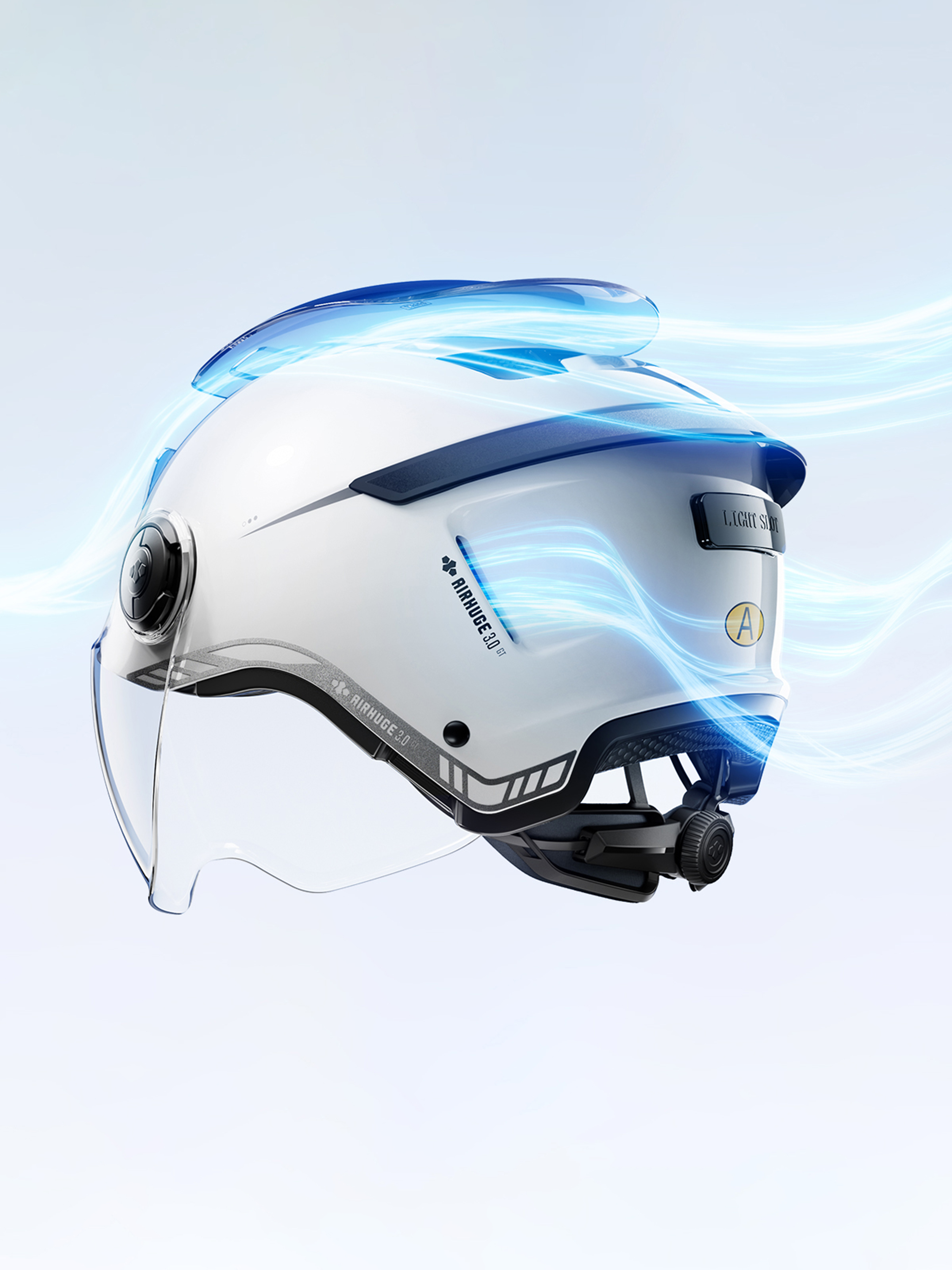 For a better user experience, the helmet adopts the HUG-RING™ system, featuring a 360° rotary design for two-way three-dimensional adjustment to precisely accommodate various head shapes. A deeper shell profile and a dedicated ponytail port perfectly balance stability and encapsulation. Furthermore, elements such as a full-coverage photochromic lens and a detachable high-visibility warning tail light provide all-weather, round-the-clock protection. The product integrates supercar-inspired aesthetics, where sleek surfaces and a swan-tail rear wing not only optimize aerodynamic performance but also transform the helmet into a distinctive, recognizable style statement.