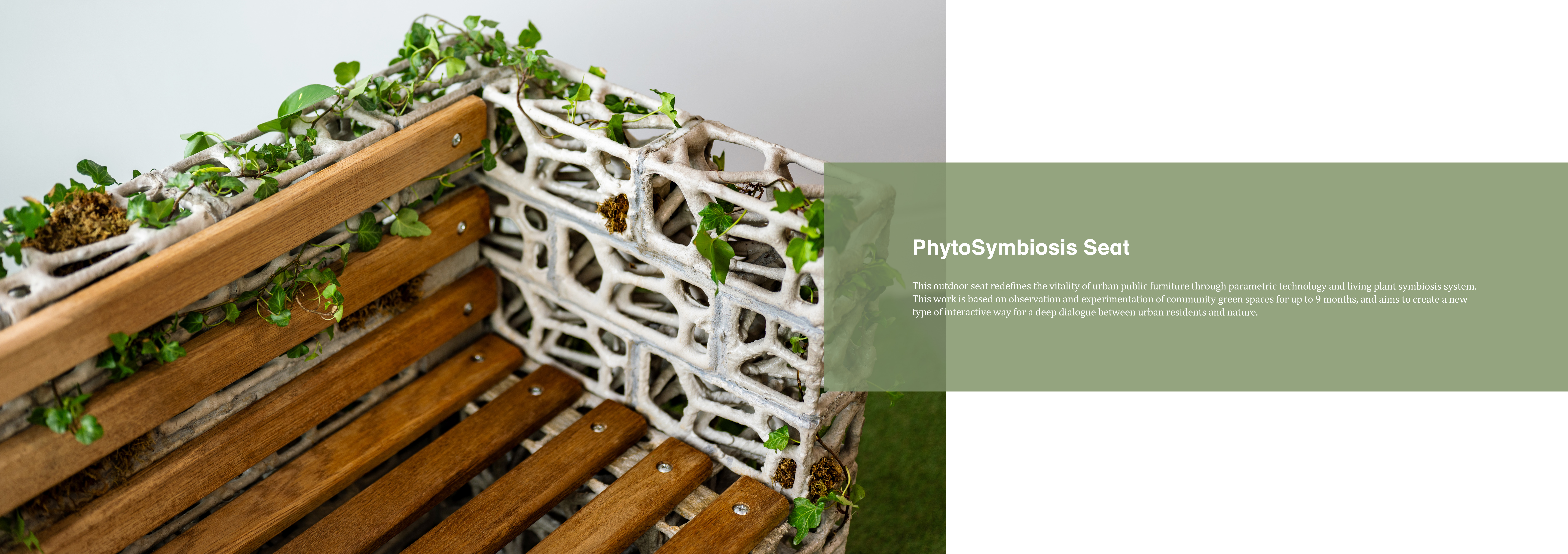 By merging digital fabrication, ecological research, and participatory design, PhytoSymbiosis offers a replicable model for resilient, life-affirming public spaces. It's not just a seat, but a growing ecological organ in city – it renders the random beauty of life with algorithmic precision, giving the infrastructure the ability to evolve itself and to interact with urban residents.