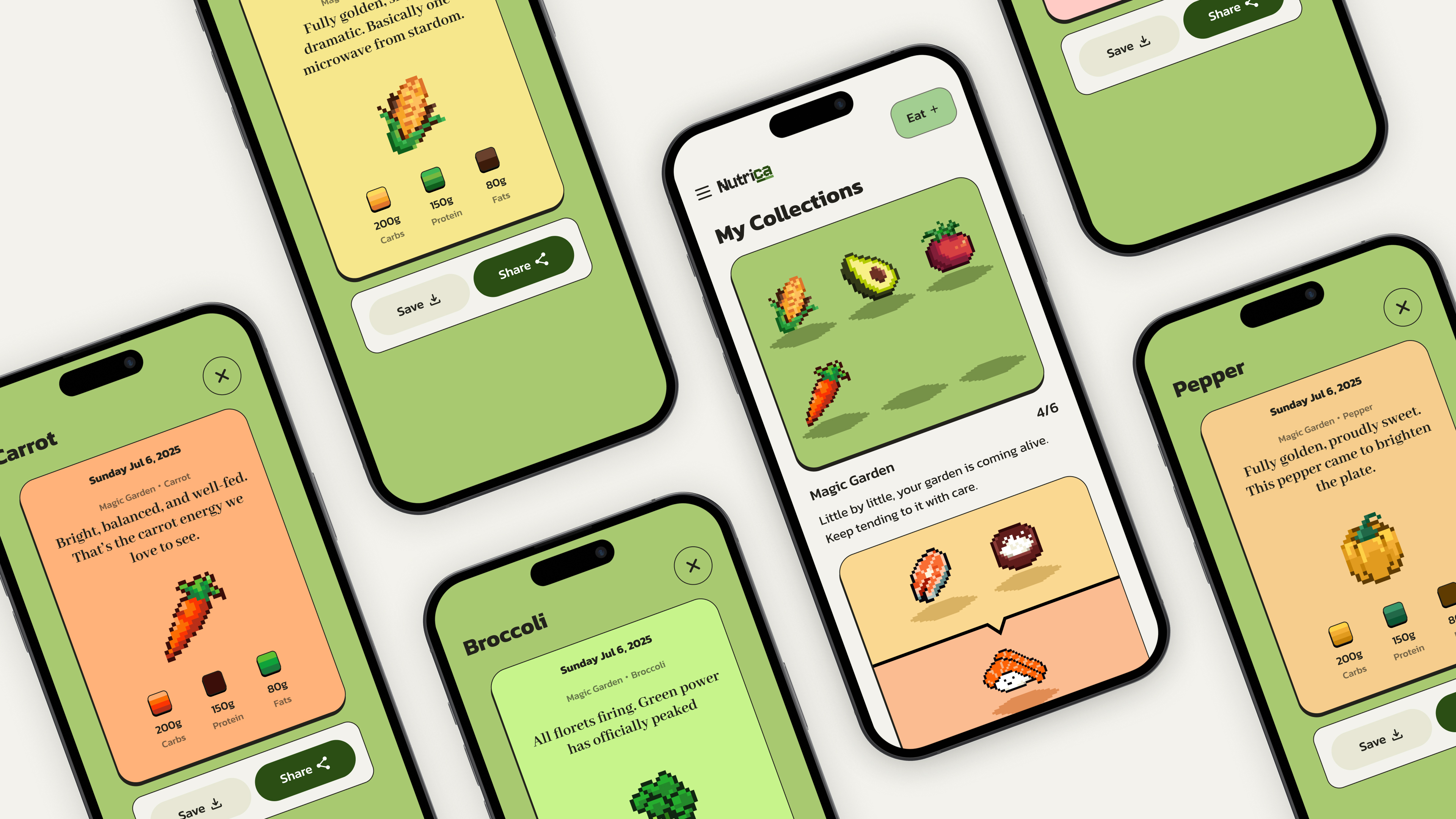 By combining data visualization with playful narrative design, the product transforms a functional tracking tool into a meaningful daily ritual. It encourages users to view nutrition awareness as an act of self-care rather than self-control, helping them build a healthier and more sustainable relationship with food.