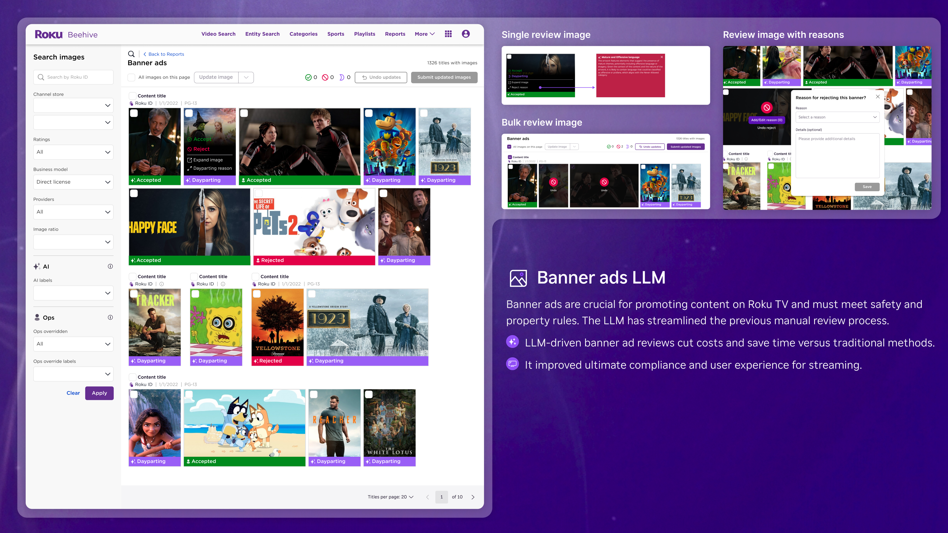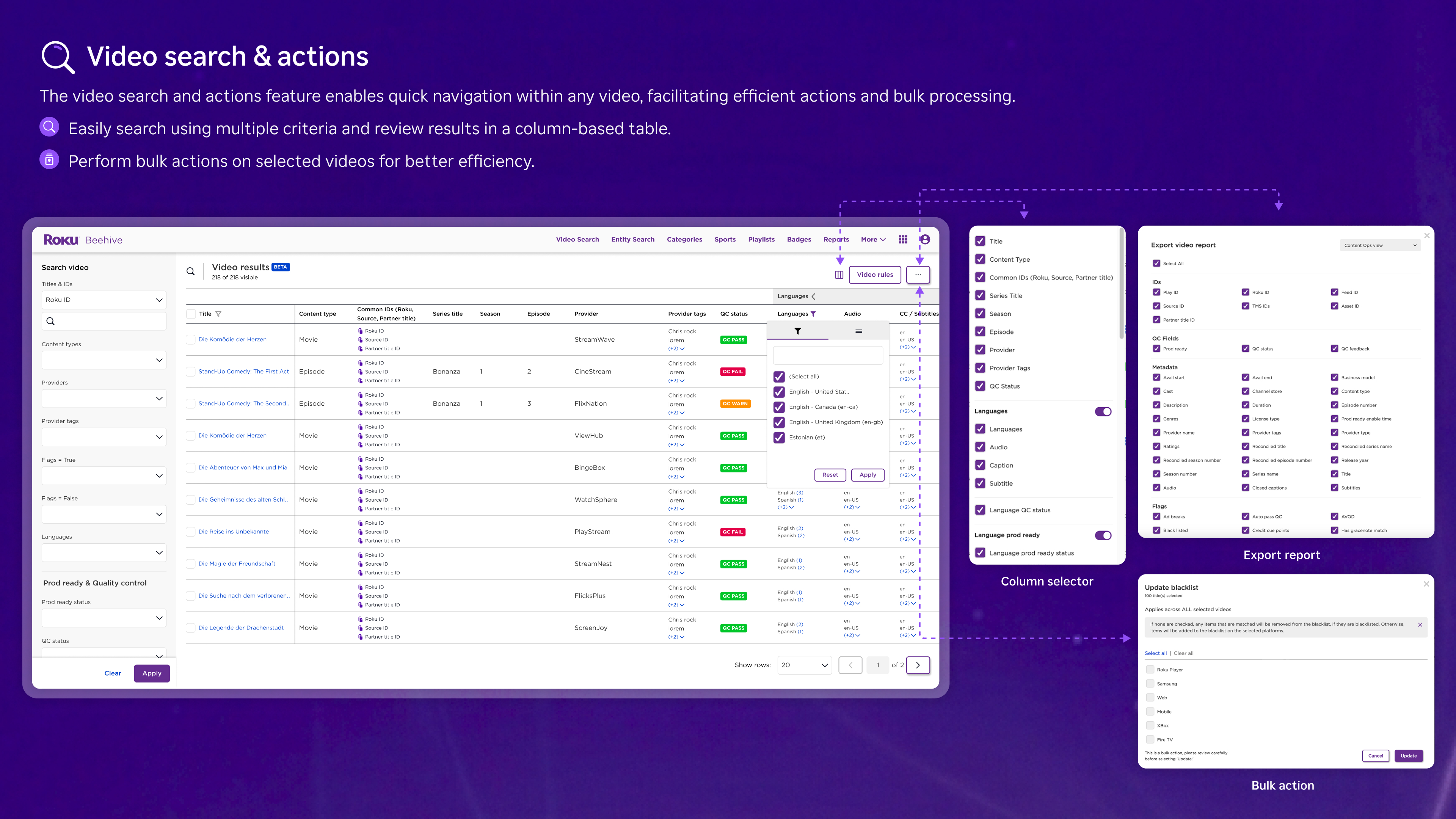 Beehive is the sophisticated command center for Roku’s global content operations, engineered to manage a massive library of over 1.1 million assets. The project’s core challenge was to design a unified platform capable of handling an immense spectrum of media—from live sports and blockbuster films to dynamic advertising—while maintaining the highest standards for metadata accuracy and speed-to-market.