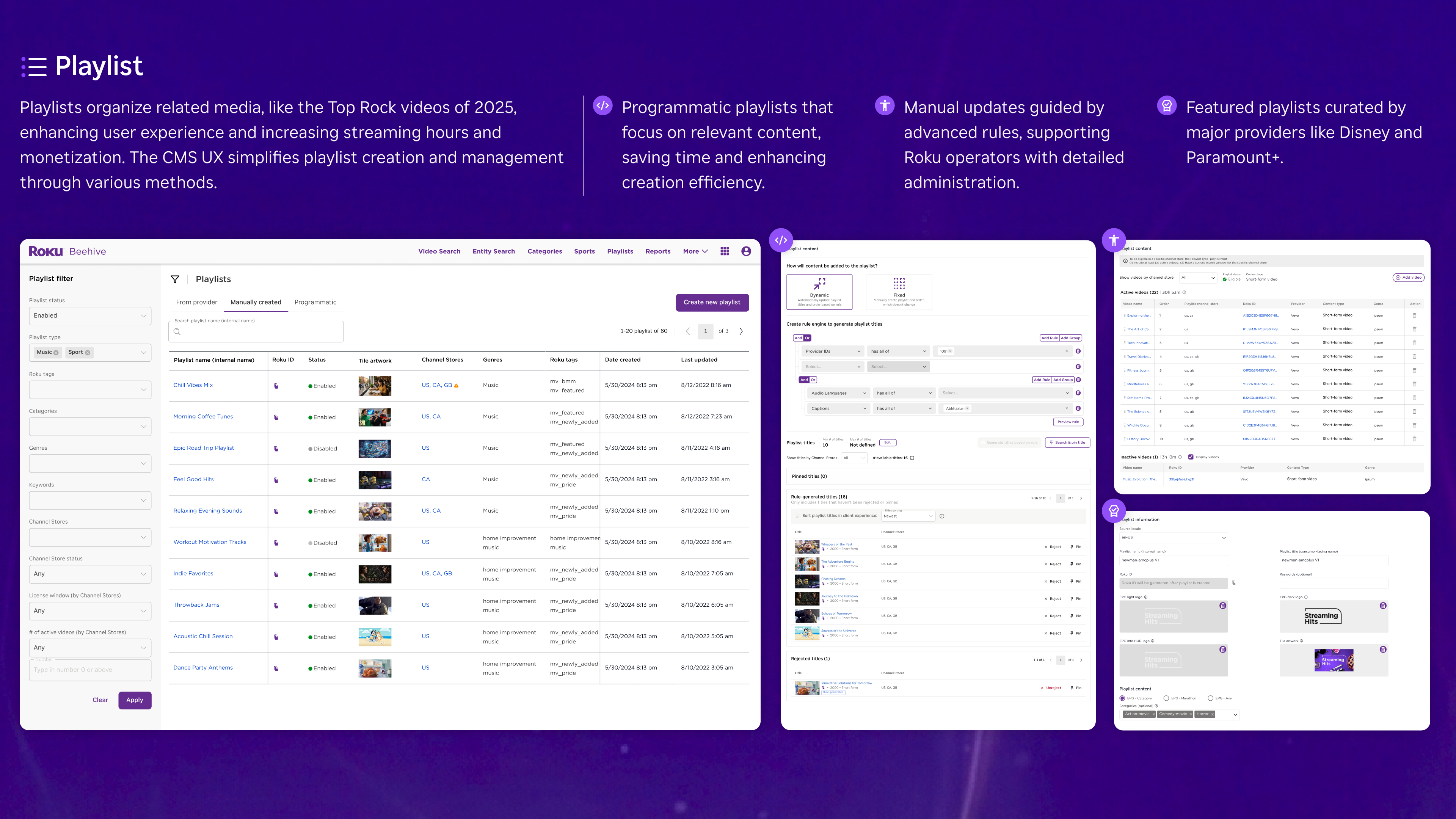 The design of Beehive prioritizes the bridge between backend complexity and seamless output. We developed a high-performance interface that empowers teams to curate and merchandise content with precision, ensuring that Roku remains a premier destination for global partners like Disney+ and Paramount+. By creating a streamlined workspace, the design enables these high-stakes collaborations to flourish, delivering localized and high-quality experiences to millions of viewers.