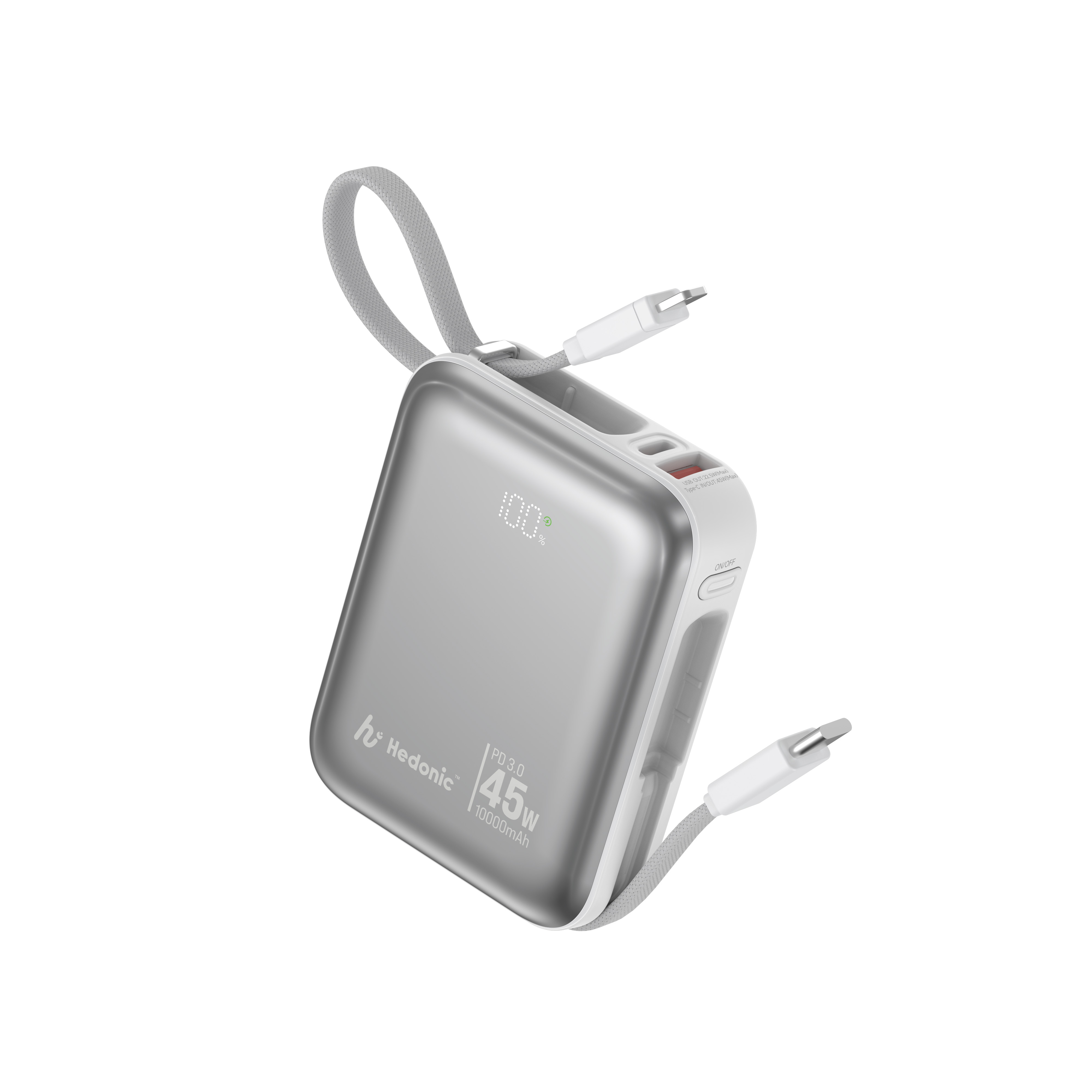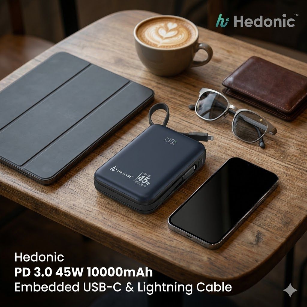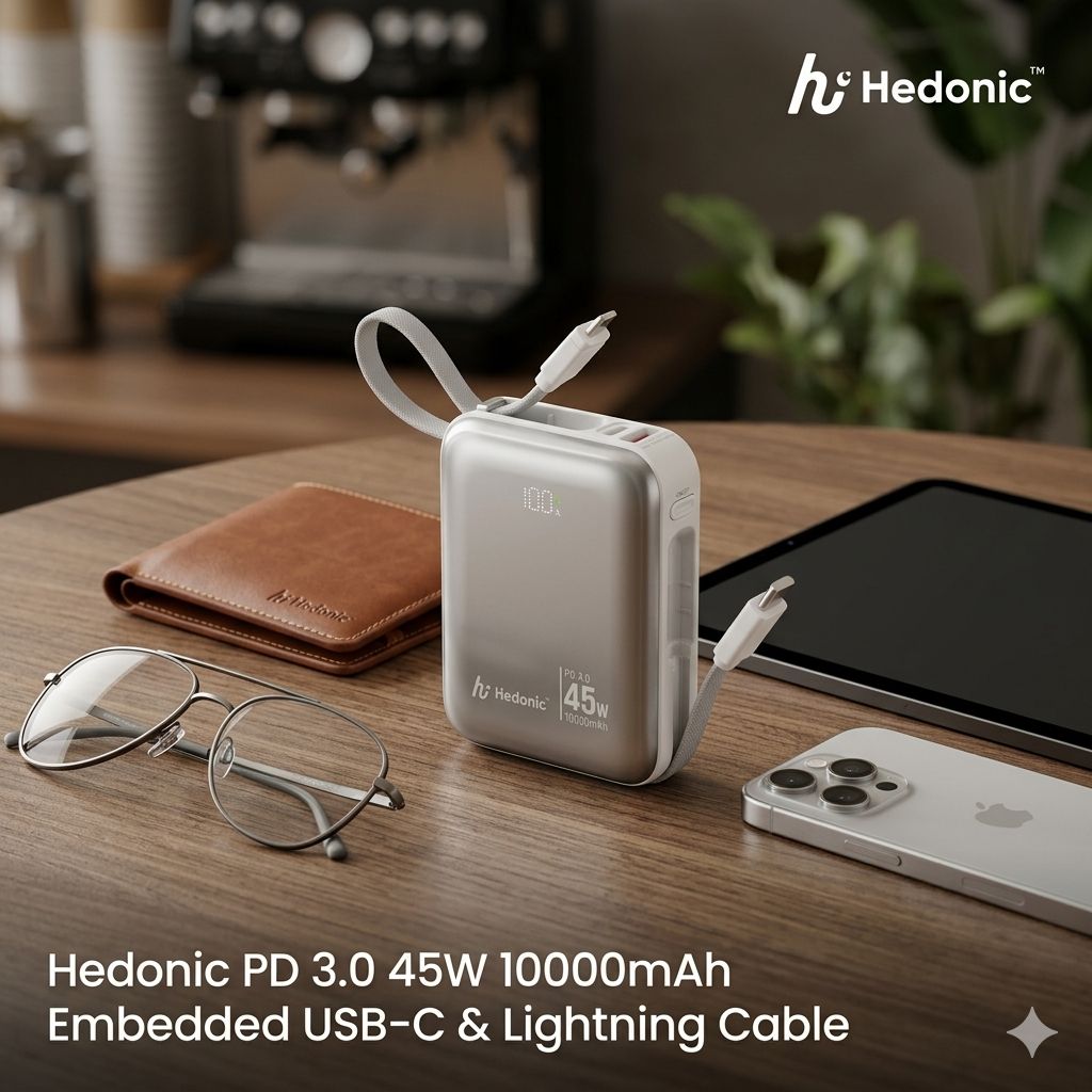 The Solution: Hedonic integrates a dual-ecosystem (USB-C & Lightning) into a sleek 198g chassis. It’s not just a battery; it’s a liberation from cluttered bags. With PD 3.0 45W bi-directional charging, it treats a 10,000mAh capacity with the speed of a wall outlet, bridging the gap between portability and professional-grade performance.
