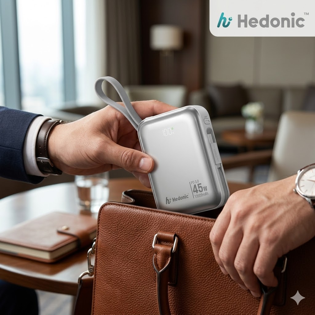 The aesthetic reflects the "Hedonic" ethos—the pursuit of pleasure through simplicity. With its ergonomic grip and premium matte finish, it is designed to be a sophisticated companion to high-end hardware. By marrying universal compatibility with extreme portability, Hedonic removes the mental load of power management. We didn't just design a battery; we designed a gateway to digital independence, allowing creators and professionals to stay focused on their journey, not their battery percentage.