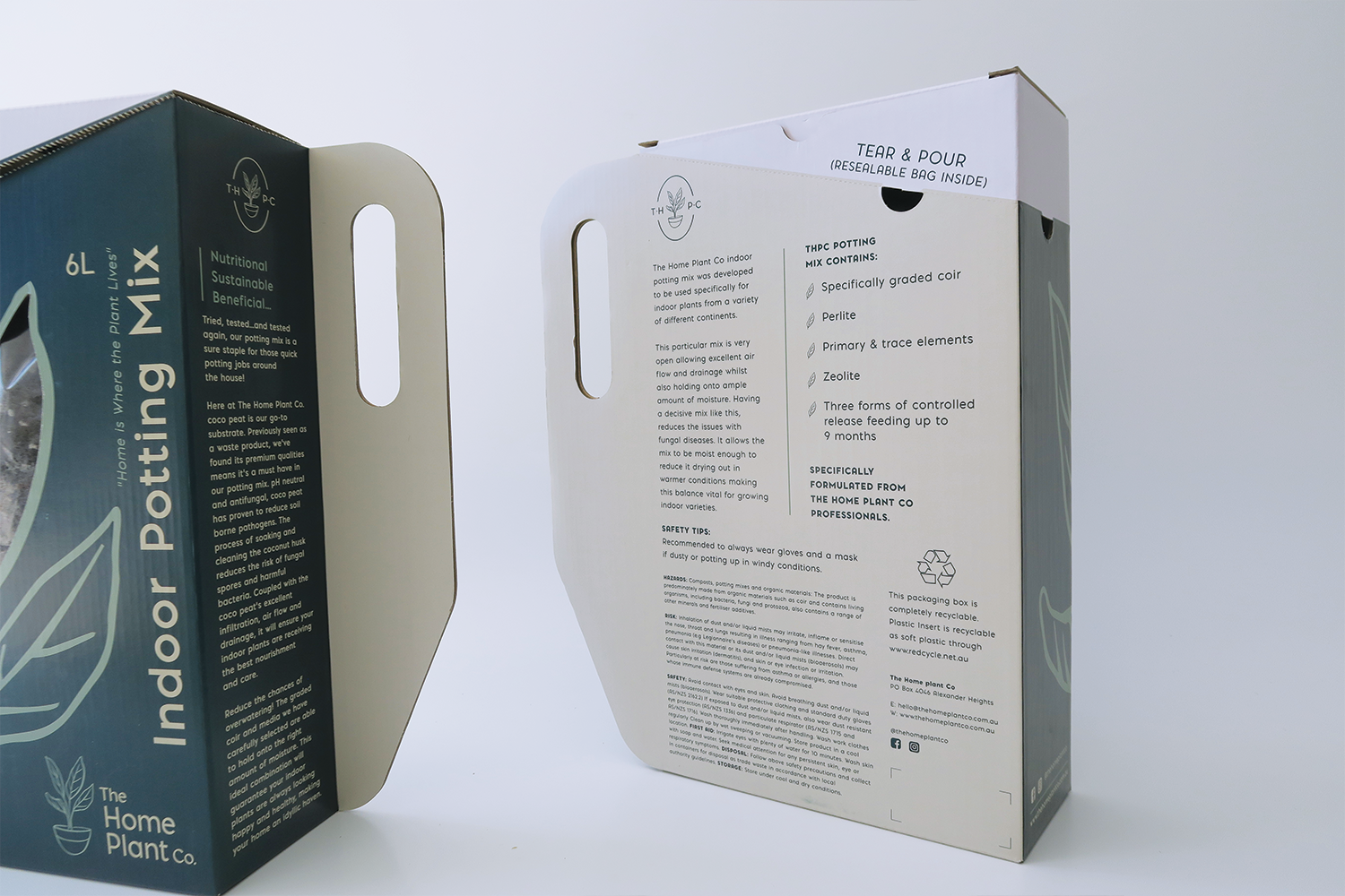 The Home Plant Co now offers customers, an all in one retail presentation, carry pack, dispenser and storage pack. It’s printed in three spot colours and is recyclable as cardboard with the resealable bag being recyclable as soft plastic.