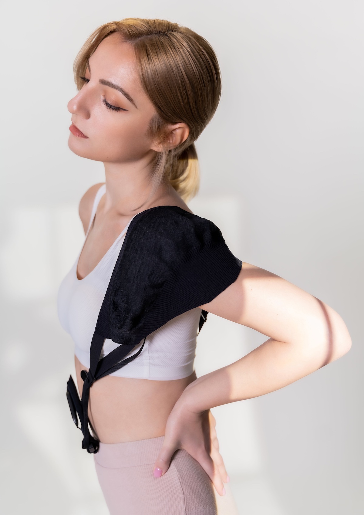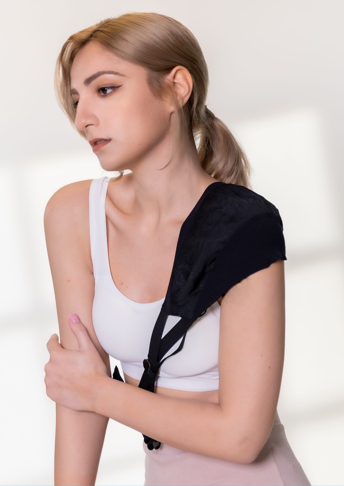 To warm the ball-and-socket joint in an efficient way, we use the first-of-its-kind smart textile to create the 3-dimensional shoulder cap seamlessly, weighing only 88g with 3mm thickness. It feels like a second skin laying on your joint. With the suspender design, you can enjoy the ultimate warmth while moving around without slipping down. Once it is plugged with the slim power bank, the WarmerShoulder warms up without commuting the softness, stretchability nor breathability. It is your effortless heat therapy on-the-go and the warmth facilitates stretching of the soft tissues, muscles, connective tissue, and adhesions.
