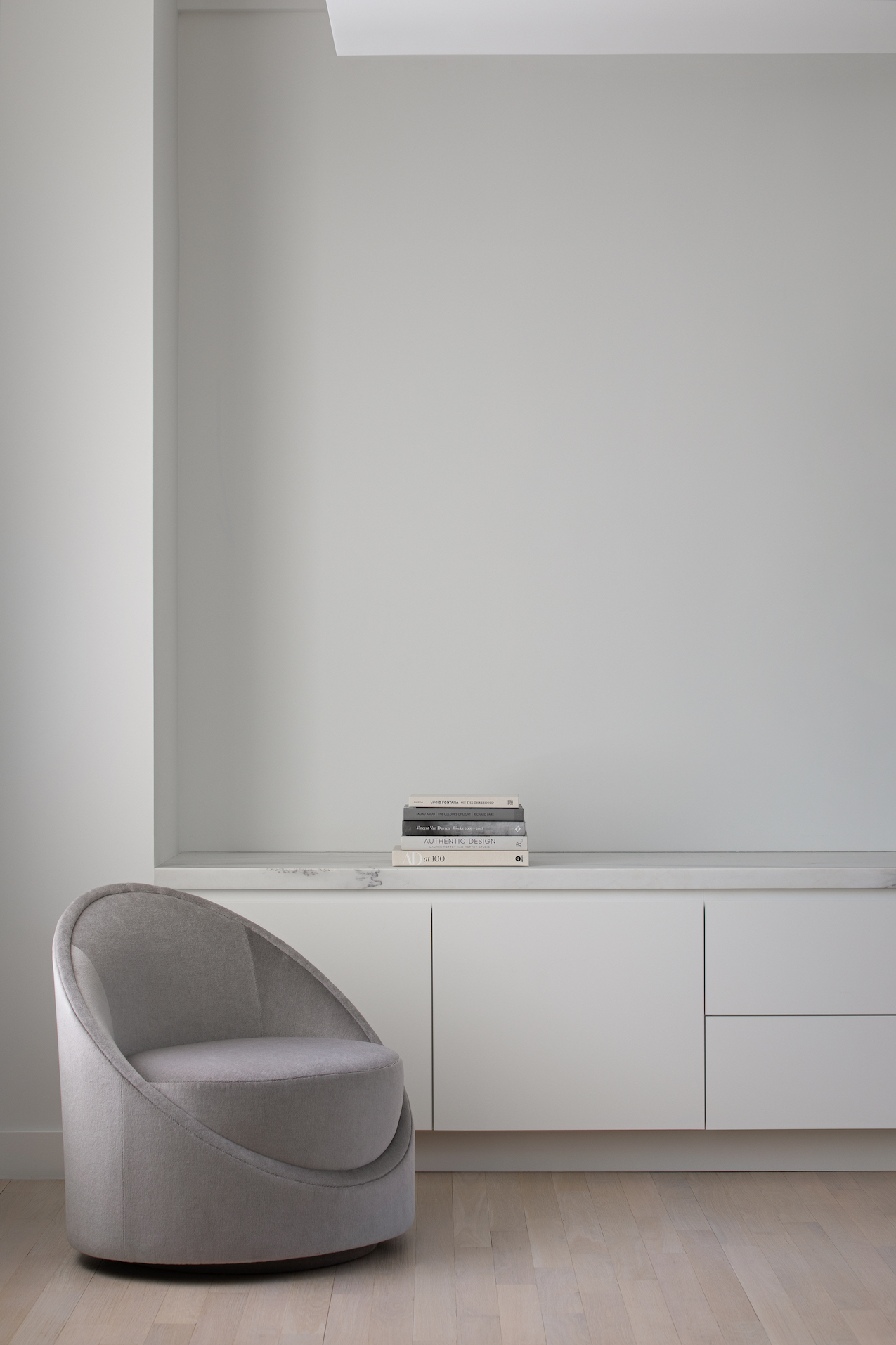 The pitch is designed to be comfortable while also supporting one’s back should they decide to work a bit from the chair. The dimensions (31” wide x 29” deep x 30” high) were carefully studied so that the chair would appear substantial and hold its own as an accent chair, but not take up as much room as most chairs of this type.