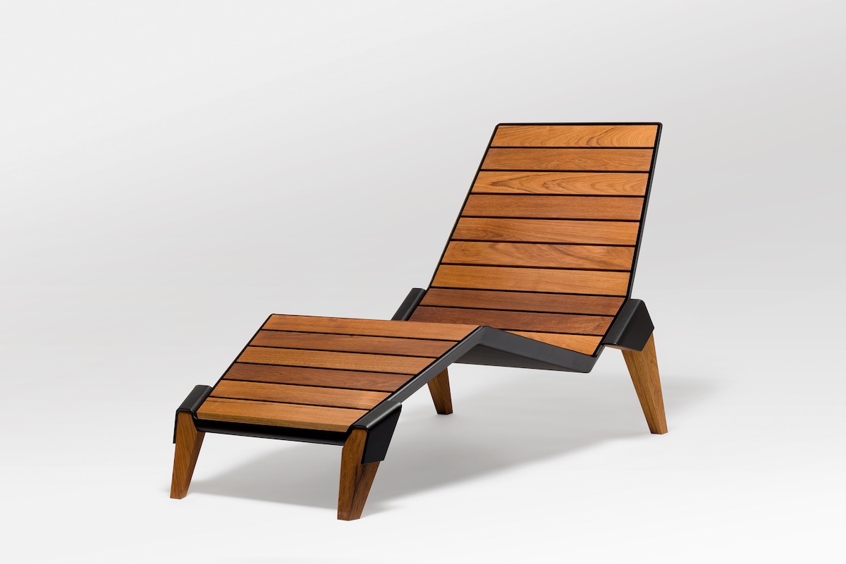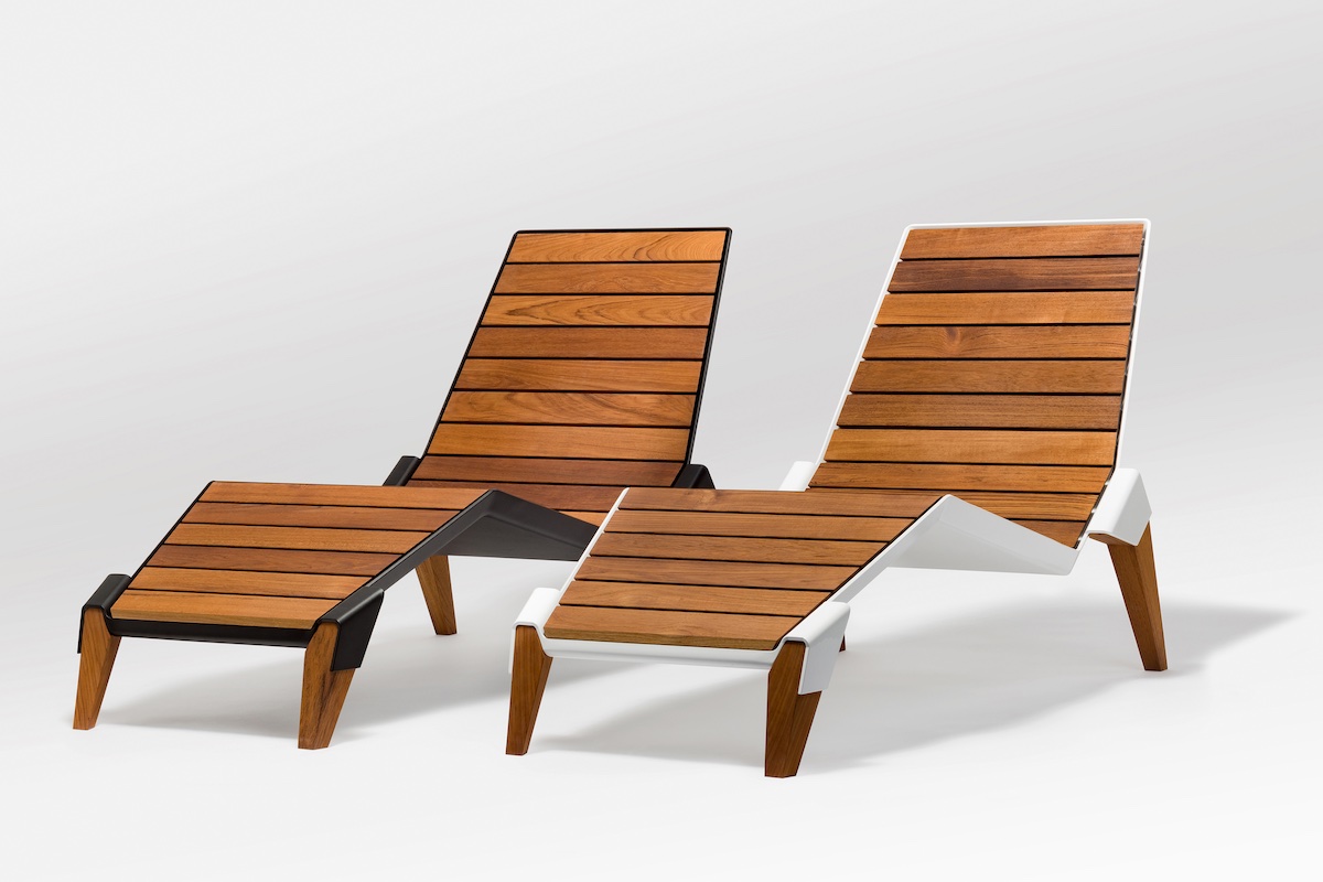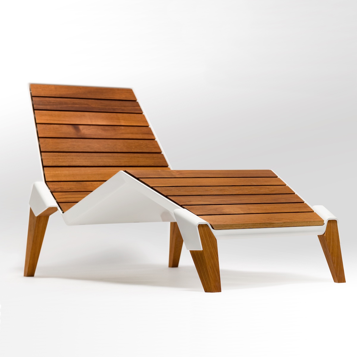 The Arms Lounger was inspired by watching people relaxing on the beach. The angled back legs relate to a human form reminiscent of a person sitting on the ground leaning back with their weight on their arms. The mood at the beach is energetic yet relaxed and social and the form of the Arms Lounger reflects those characteristics.