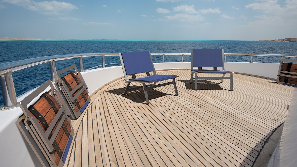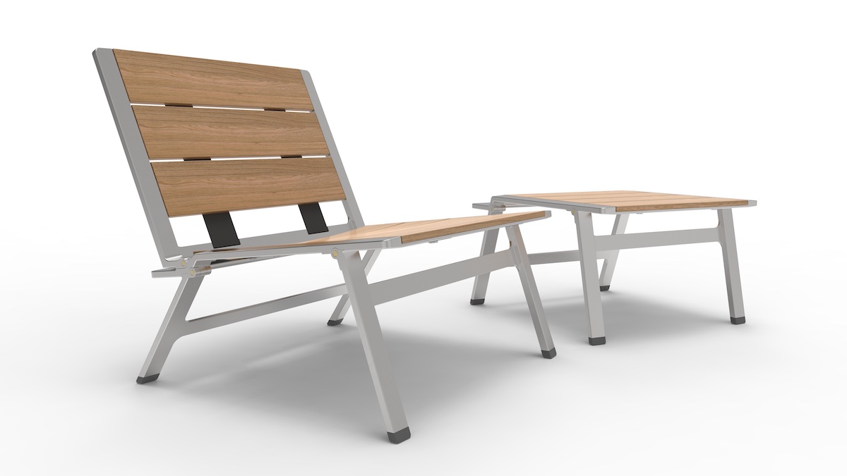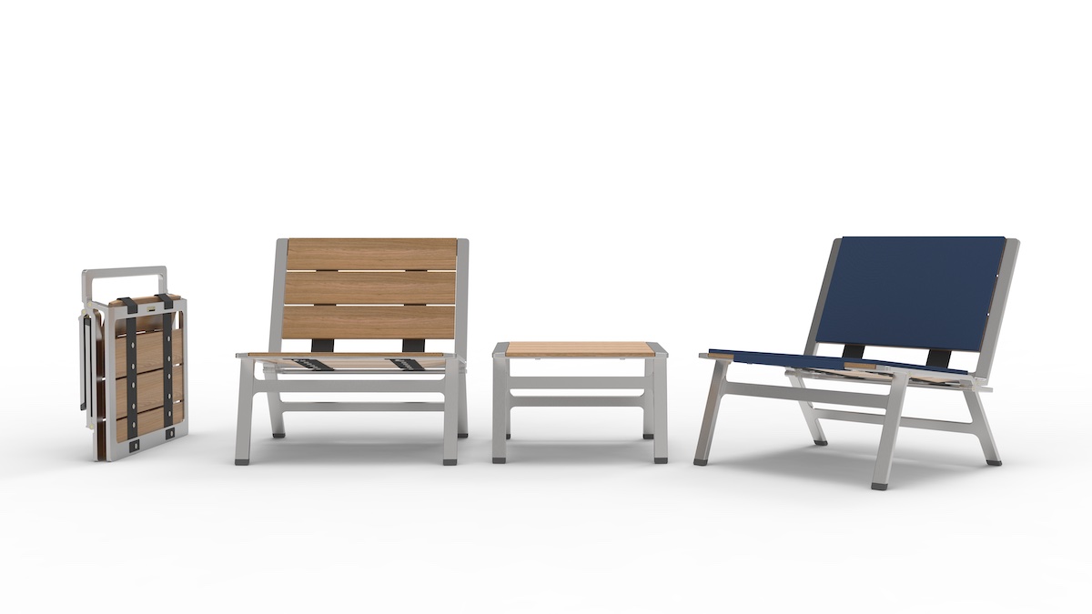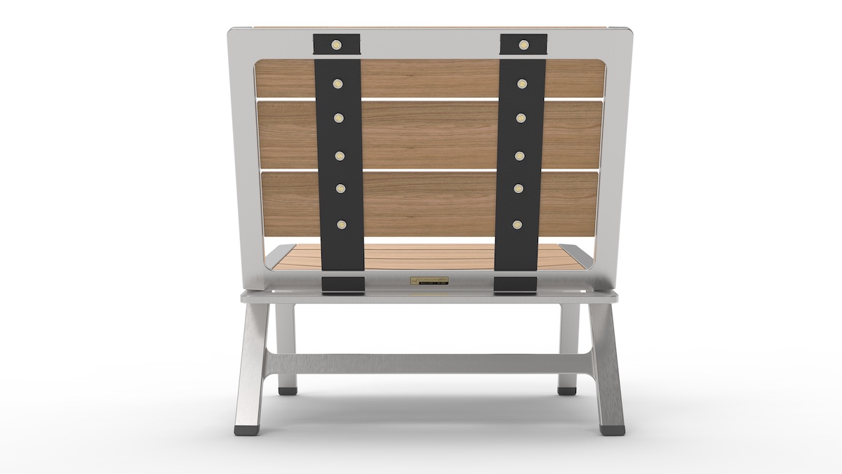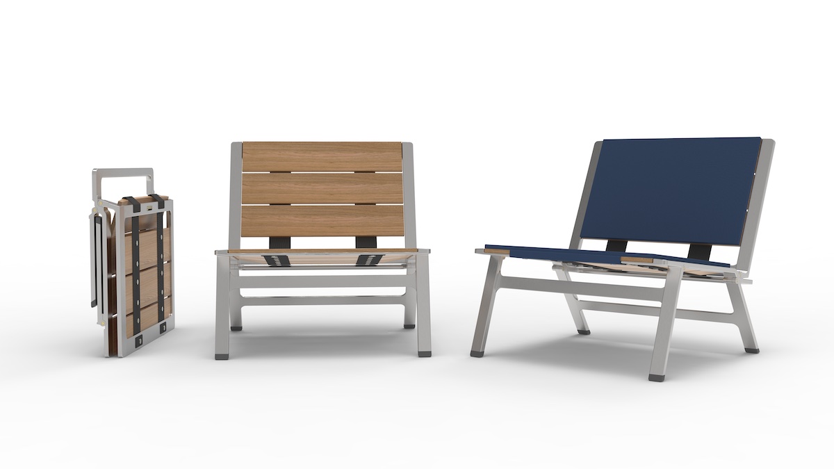 Born of the need for quality compact furniture on yachts, the Decker folding yacht chair easily folds from a lounge chair to a compact form factor that is easy to transport and stow. The teak seating surface is supported by webbing to add flex and comfort in the thin seat surface. Materials common in yachts such as stainless steel, brass and teak are used in the Decker chair to withstand harsh elements. An optional pad snaps into place and stows within the chair when folded. When folded, the Decker chair is only 4 inches thick and has an integrated handle.