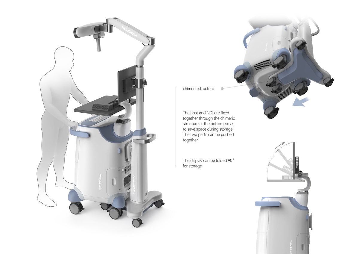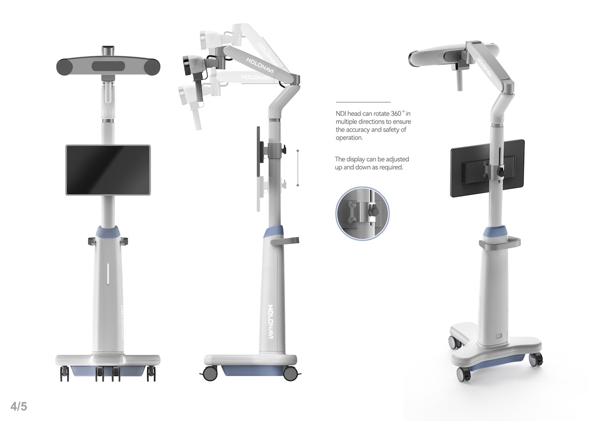 This is a new technology that uses NDI's infrared device to assist doctors in spinal puncture surgery. It can enable doctors to find the correct position more accurately, improve the success rate of surgery and reduce the risk of surgery. And it is a complete and newly designed equipment. It has a unique design in terms of man-machine size, use and storage convenience, and solves the storage problem caused by too many wires of the equipment.