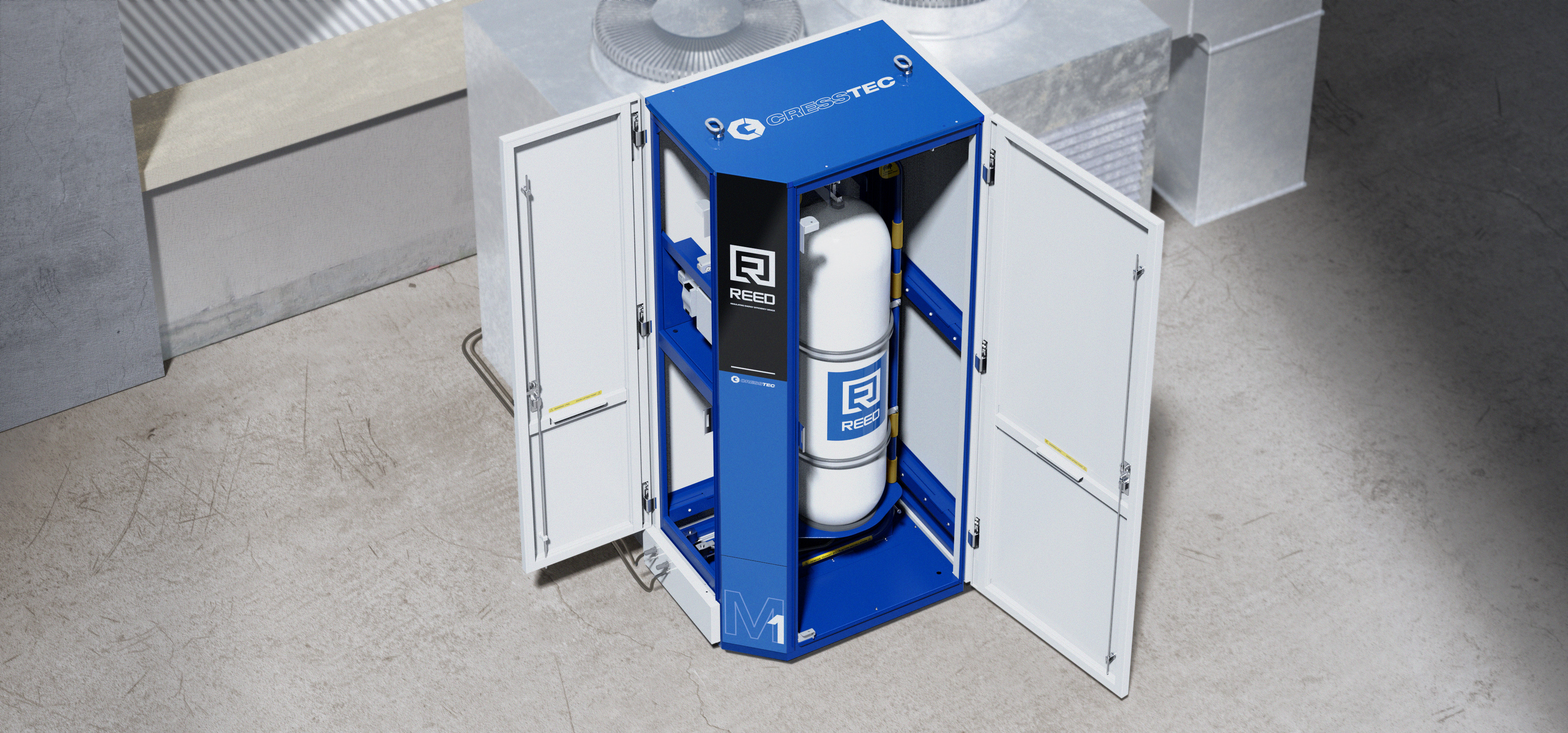 REED is a sub system which for the first time opens the refrigerant circuit to allow for dynamic refrigerant optimisation and is also able to store refrigerant as energy (high-pressure liquid refrigerant). REED adjusts the amount of refrigerant charge in the system to perfectly match the load and environmental requirements, whilst storing any removed refrigerant as high-pressure liquid energy, meaning that when it is returned to the system the compressor does not have to recreate this work (energy).