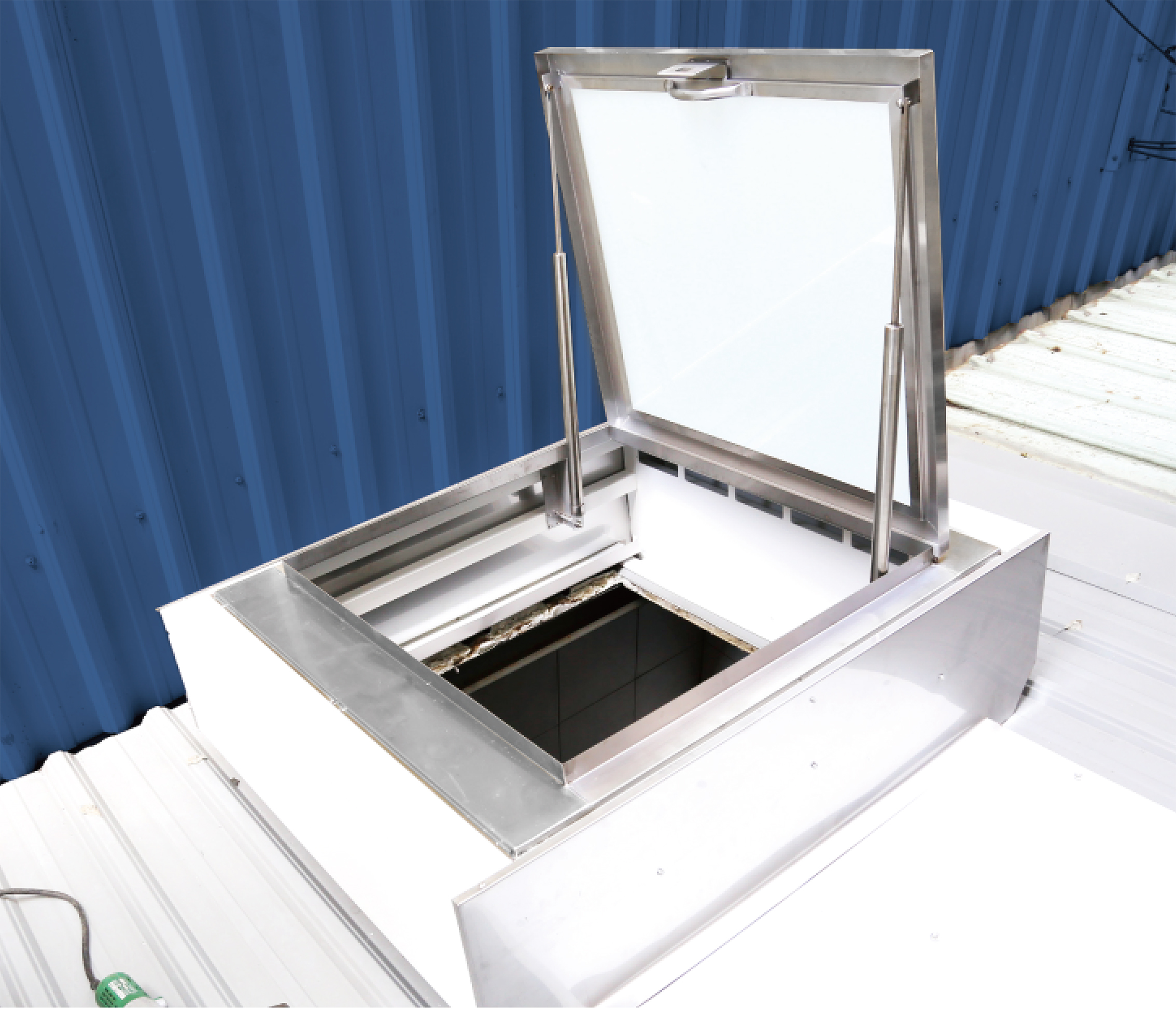 For the manhole on the roof, there is Skylight Manhole Vent. It integrates three features – natural sunlight, ventilation, and a manhole cover. First, when it is closed, natural sunlight still can permeate the building effectively. Without using electric lamps that increase energy bills, people could enjoy the sunshine indoors. Second, as it is closed, the heat can be exhausted by two exhaust tubes on both sides. It increases productivity at work and boosts your metabolism by improving air circulation in buildings and decreasing high indoor heat. The third highlight is its patented leak-proof design. When closed, it provides a comfortable and dry indoor environment and avoids water leaks. Fourth, it is condensation-proof. It removes permanent condensation by providing a ventilation system. Fifth, you can open it easily and safely. It is also more labor-saving and safer than a traditional stainless manhole cover. Sixth, multiple units could be conjugated into as many as you want due to the modularized design. It can also be conjugated with Skylight Vent. Seventh, it reduces the pitter-patter of rain due to its aluminum and glass surface, producing less noise than a traditional stainless one. To sum up, Skylight Manhole Vent takes advantage of limited space to provide natural sunlight, ventilation, and a manhole functioning as an ingress and egress. People can embrace the sunlight and fresh air indoors and enjoy a healthy house.