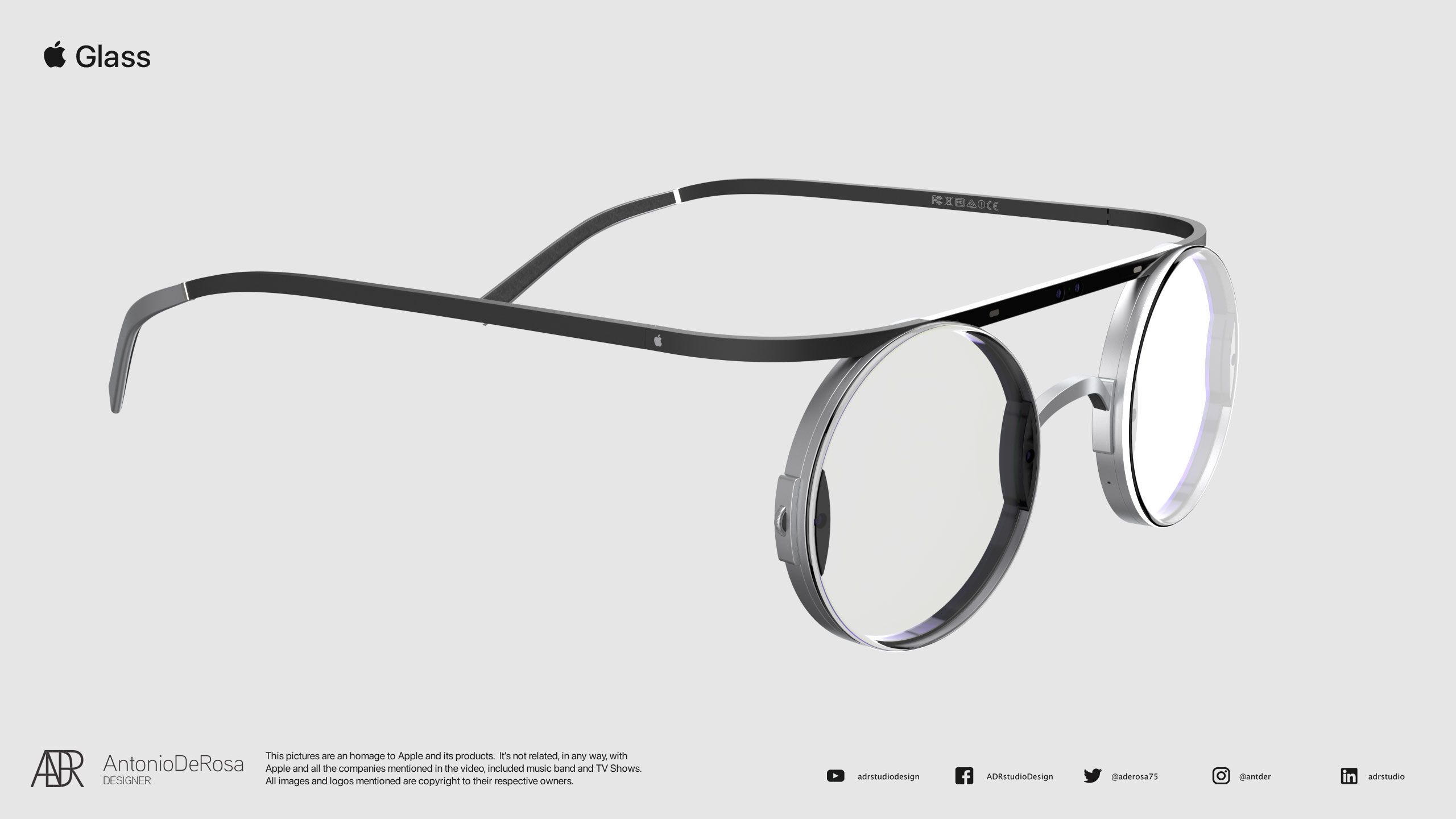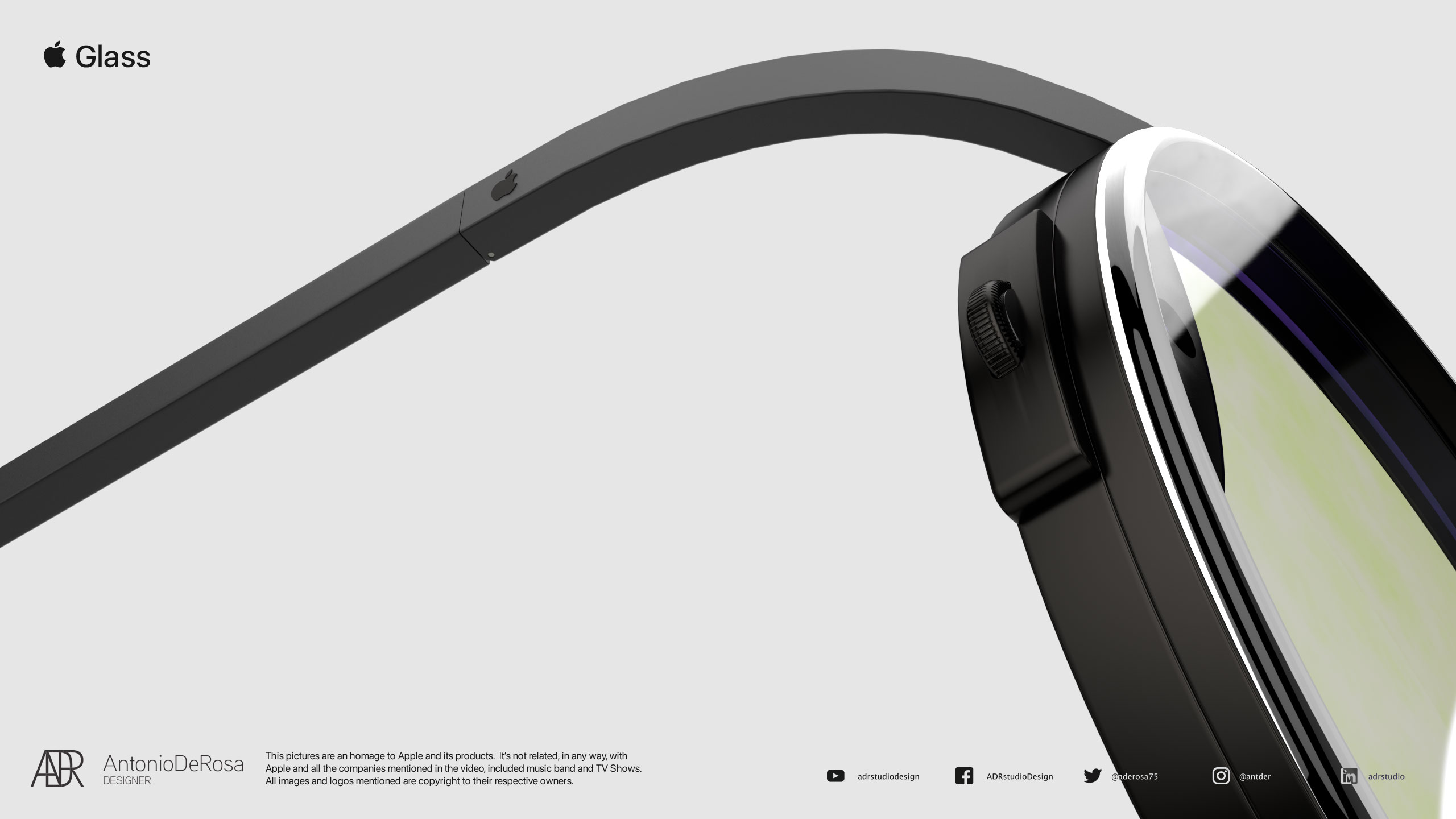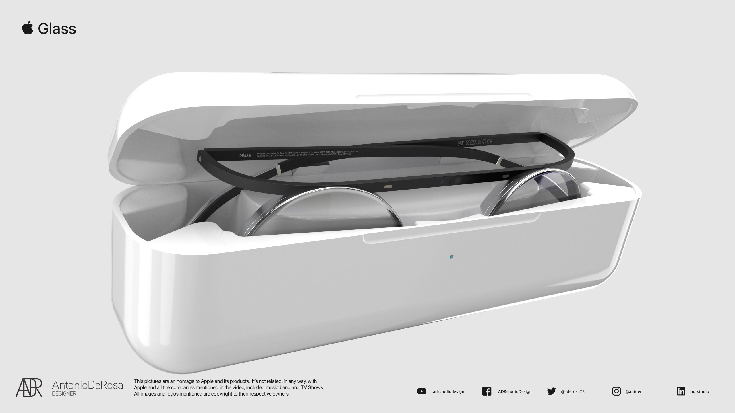 This concept is an homage to the Lunor Classic PP wore by Steve Jobs. The Apple Glass has six cameras, eye tracking, hand and gesture recognition, food and calories detection, and charger “AirPod” style. Just a concept!
